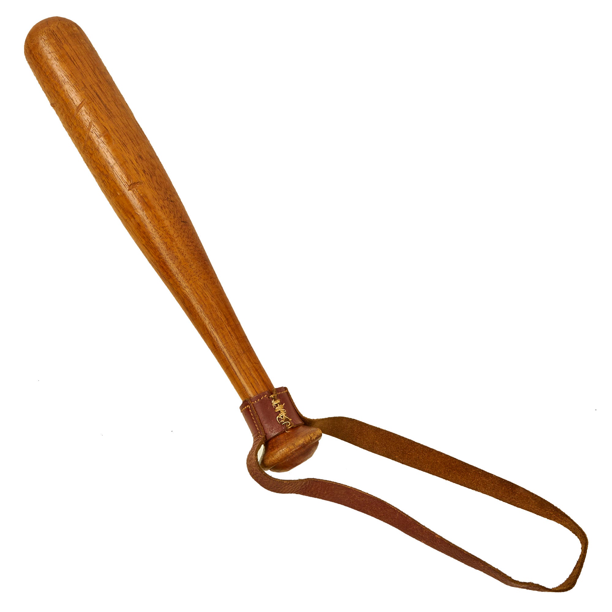 Original Item: Only One Available. This is an excellent example of a lightly used law enforcement baton. It features a lovely, soft leather thong used to better secure the weapon to the users hand. It measures approximately 12 inches in total length and is presented without any extensive damage.