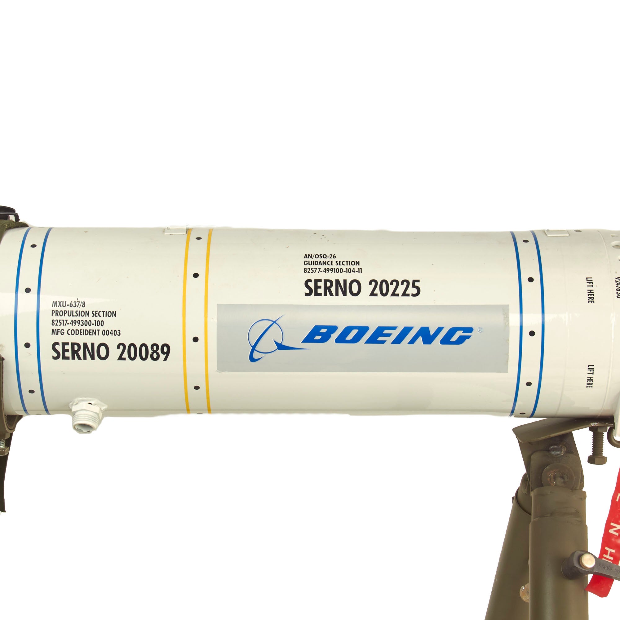 Original Item: Only One Available. Developed approximately 20 years ago this is a totally inert (hollow) 7 foot long "Little Joe" guided missile manufactured by The Boeing Company. We were told that it was manufactured as a "trade show" sample, and a custom mount "sled" was built for display. The mount is included with the purchase of the missile. Overall condition is excellent. The missile is marked as follows: