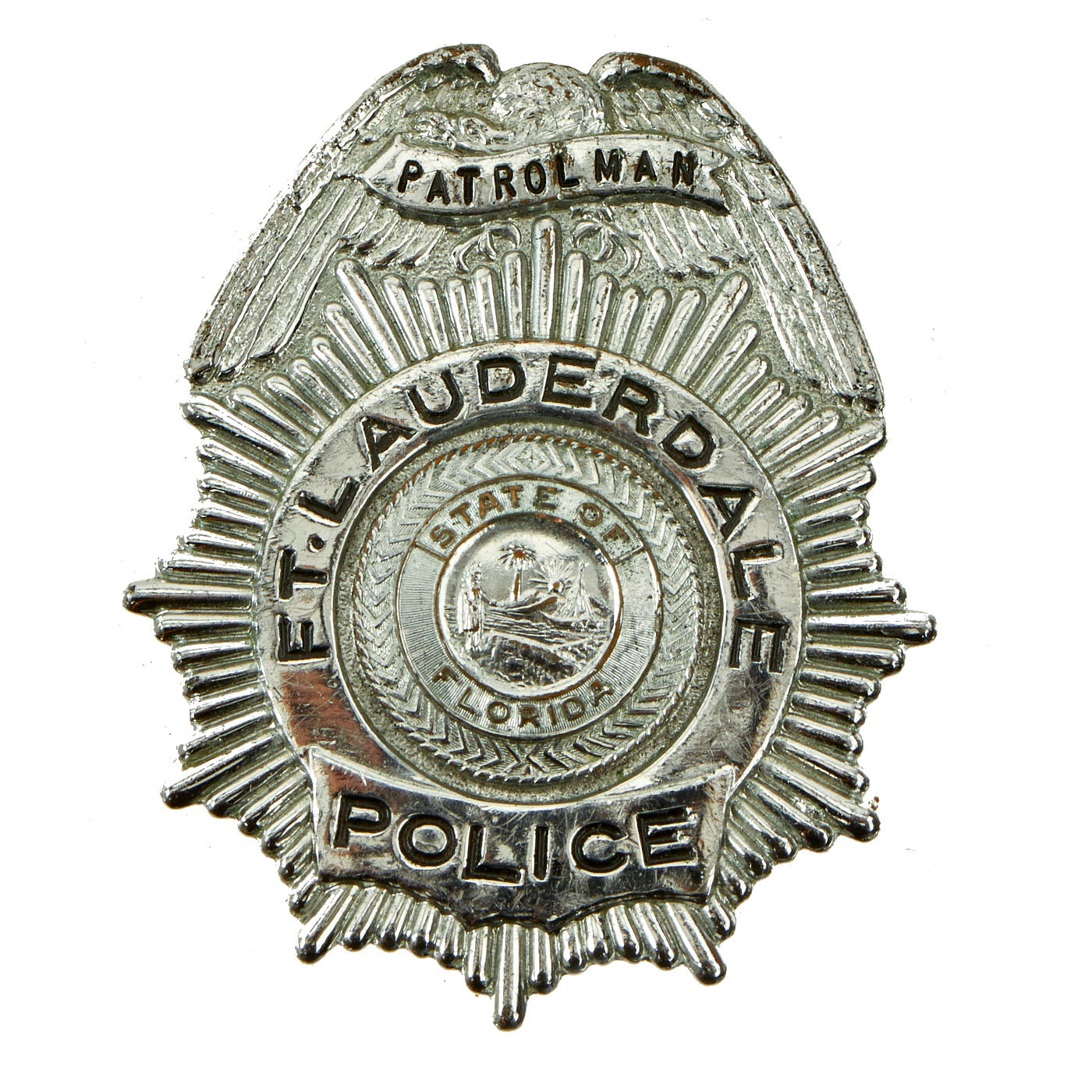 - Ft. Lauderdale, Florida Police Patrolman Cap Badge: On March 27, 1911, the pioneer village of Fort Lauderdale, Dade County, with a population of about 250 people, was incorporated as a town. One of the first appointments made by the newly formed council in 1911 was that of Kossie A. Goodbread as first City Marshall at a salary of $40.00 per month and $1.00 for each arrest. Goodbread had been a deputy sheriff of Dade County, covering that portion of Dade from Hallandale to the Caloosahatchee River, which was the Palm Beach County line prior to being appointed as City Marshal. His enforcement equipment was a hand billy, a gun and a padlock. The padlock was to lock boxcars which were utilized as the jail for county prisoners until he could use the one telephone in town at the railway station to call Sheriff Dan Hardee in Miami to come and get the prisoner.