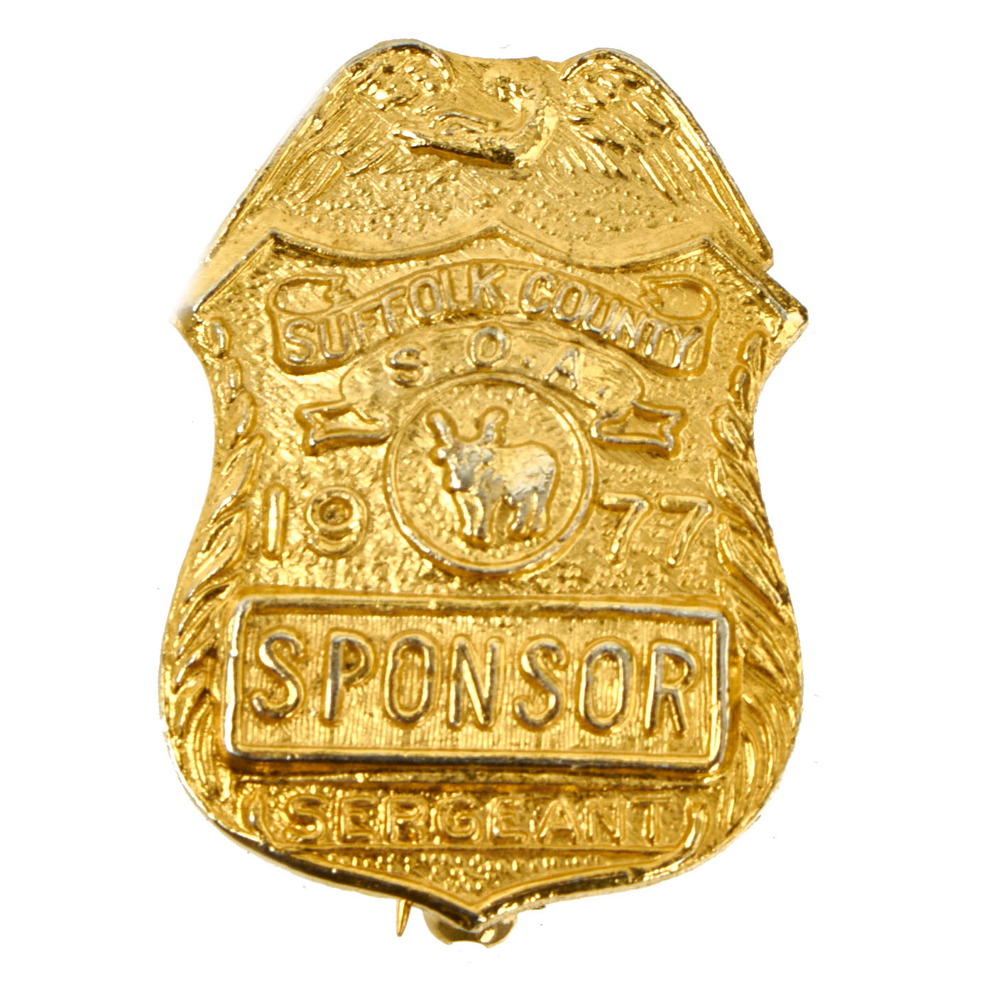 - Suffolk County Sergeant’s Superior Officer’s Association Sponsor Lapel Badge: The Superior Officers Law Enforcement Association is a fraternal beneficiary Association acting as the exclusive majority representative in negotiating for improved wages, hours, working conditions, welfare and job security as well as for all other aspects of collective bargaining, in and on behalf of its members. The Association's mission is the mutual protection and benefit of all its members.