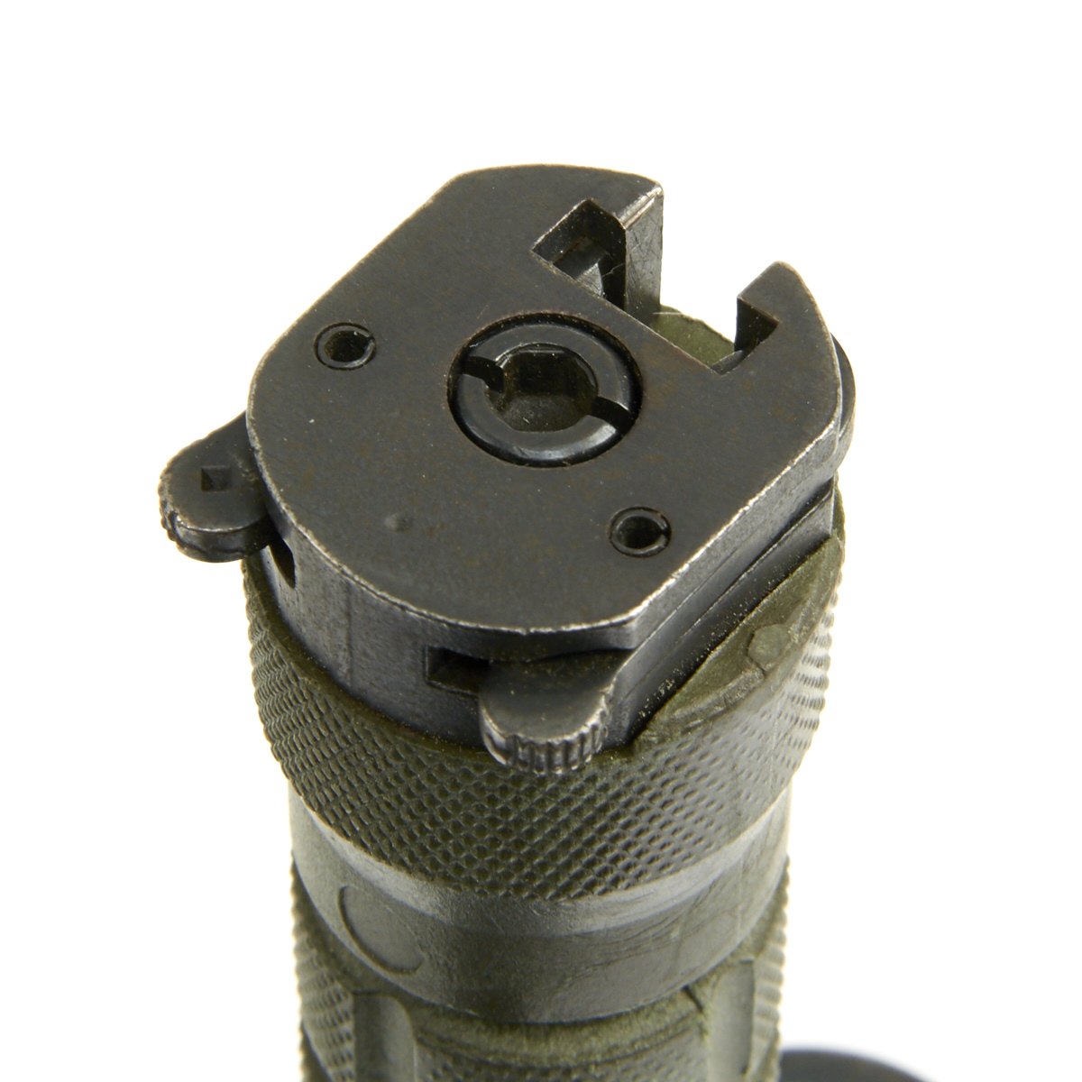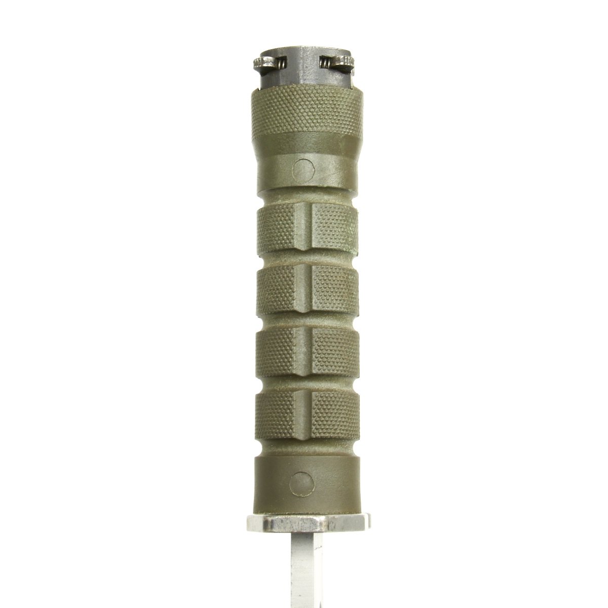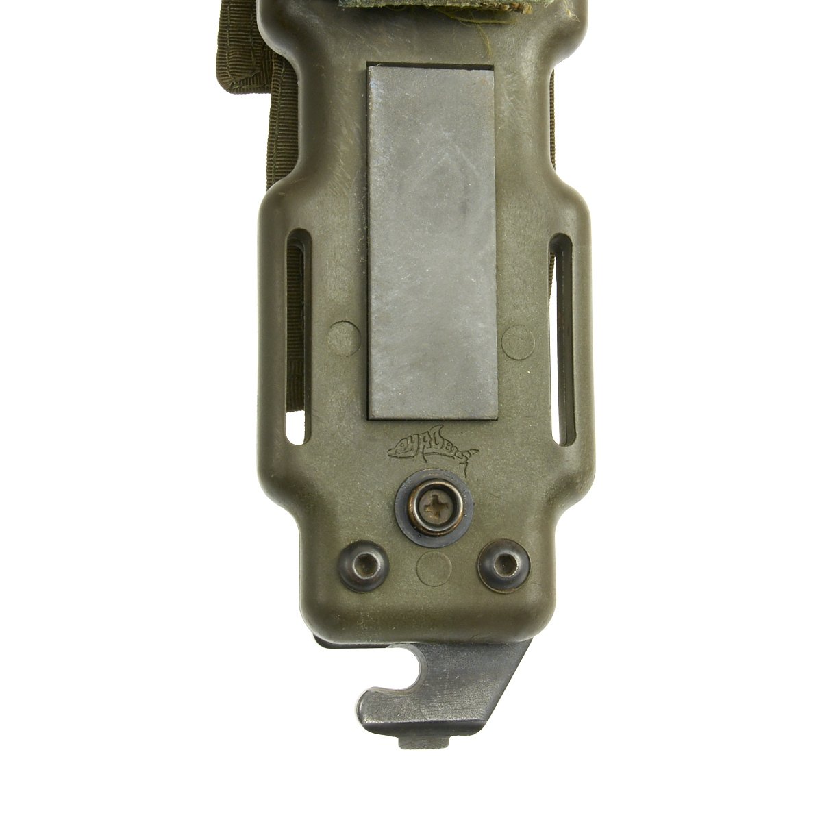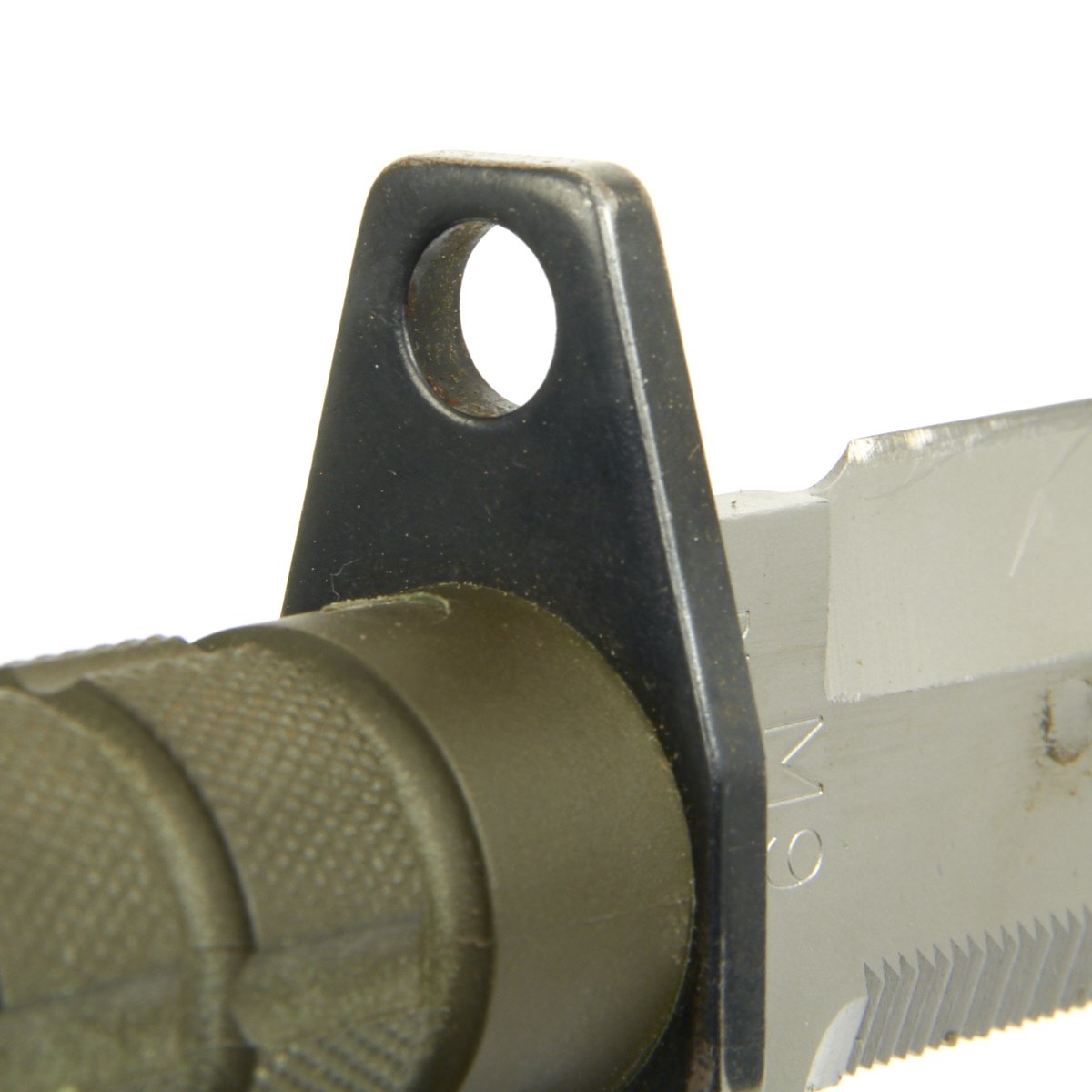 This is a genuine USGI Government issue M9 Bayonet manufactured under first Government contract by Phrobis. It is offered in excellent condition. Features include saw tooth milled spine, molded thermoplastic nylon grip and incorporated set of wire cutters formed by the knife and scabbard combined. Don't purchase a Knock-off or other manufacturer cheaper 1095 carbon steel options, this original M9 features maintenance-free 420 stainless steel blade which is far less prone to rust.