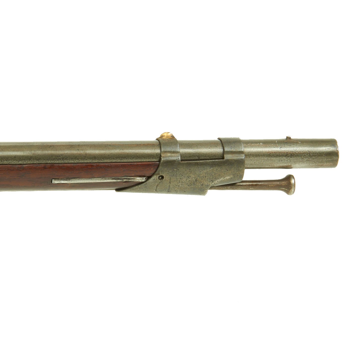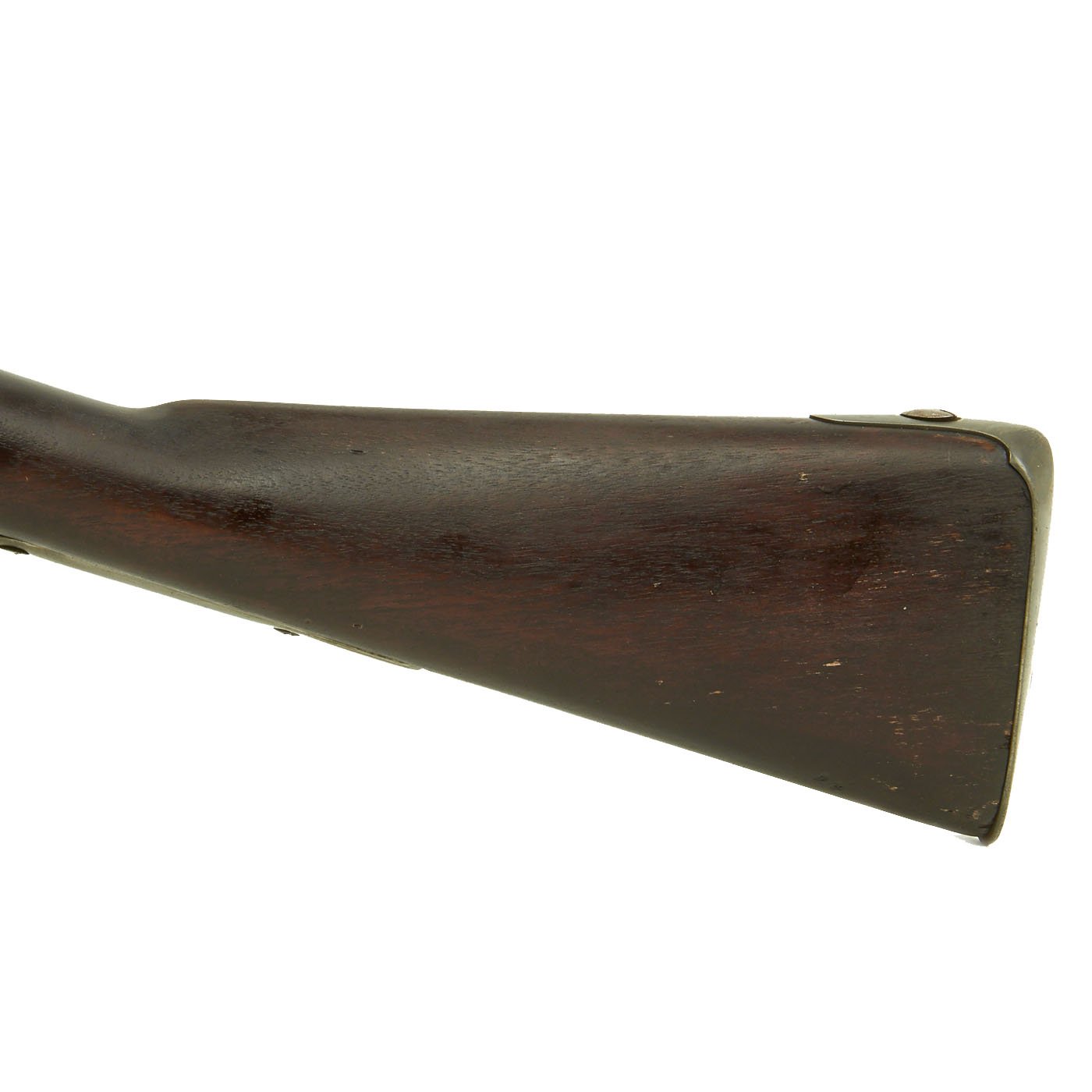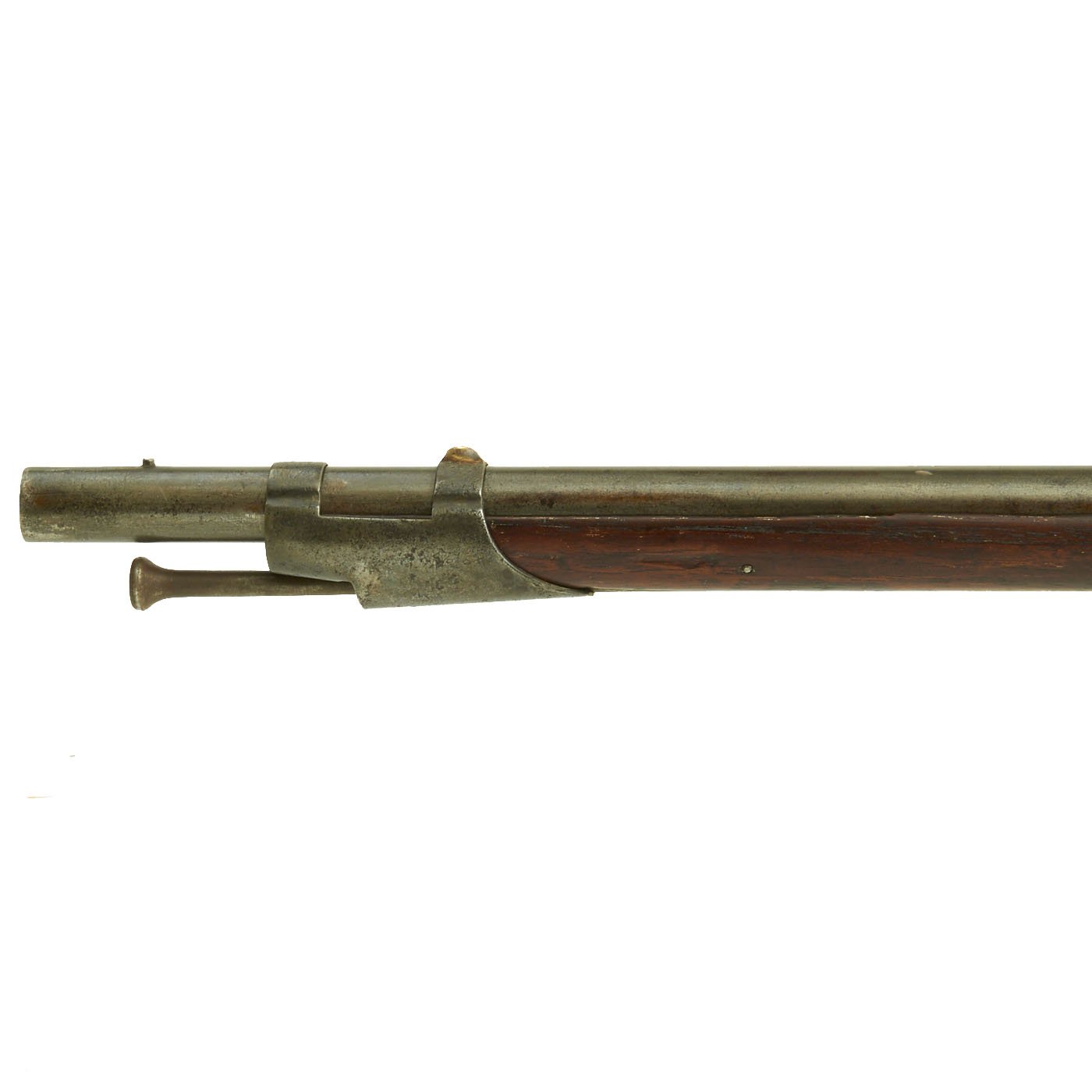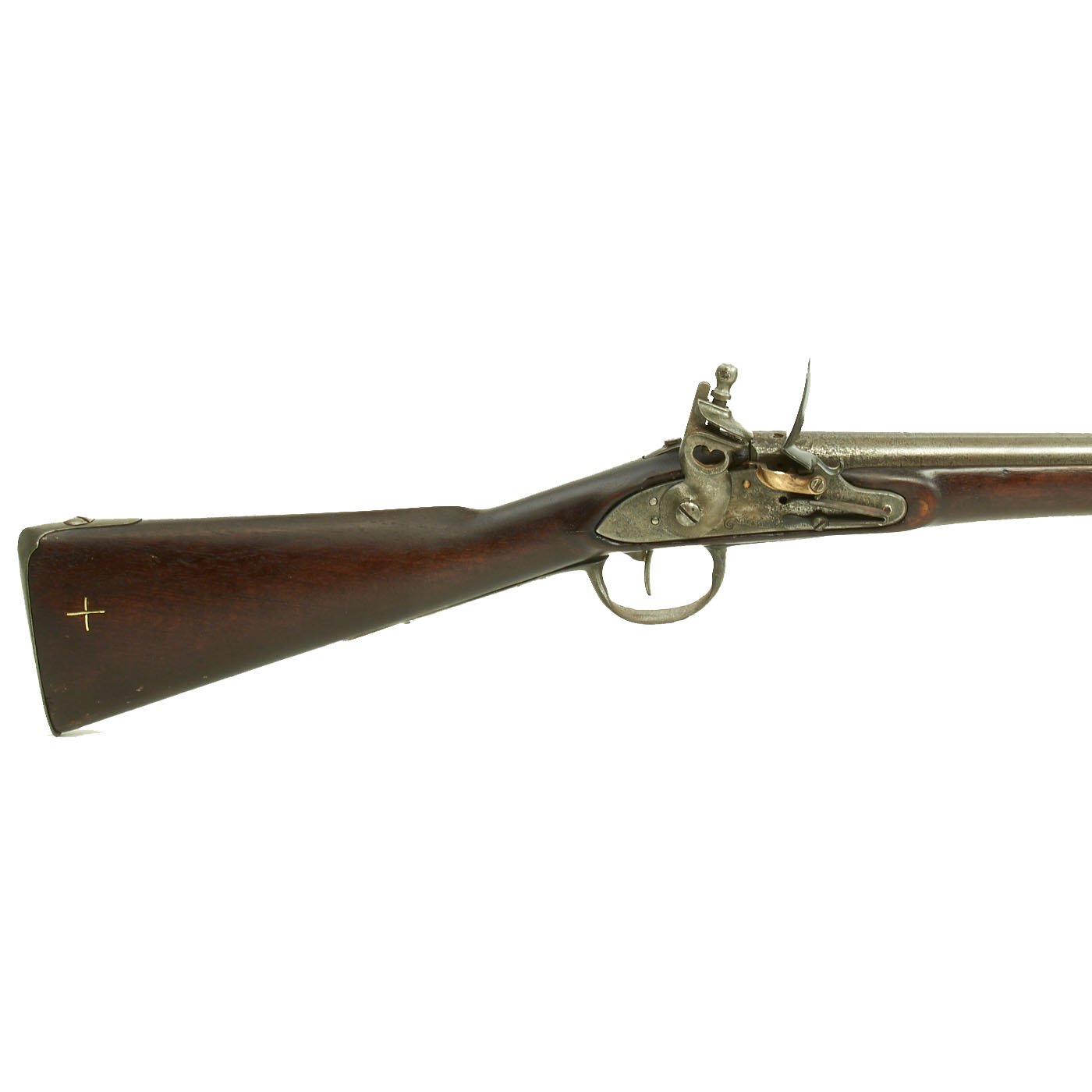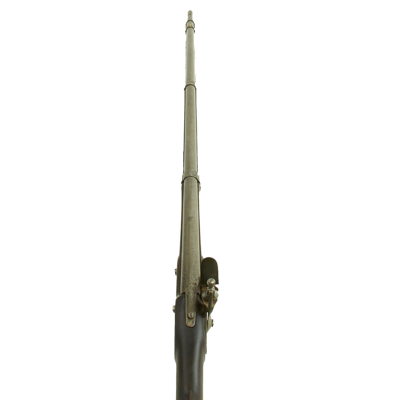 An extremely rare Musket from this 1812 Contract in fine condition, iron mounts and a very nice wood stock. It has a nice inlaid brass "+" on the right side of stock, and it comes complete with the original ramrod. The barrel breech area only has minor powder burn, and the original P proof mark is still visible, as well as an SNY marking. This may mean that it was dispersed to the New York militia or guard after it was obsolete, probably in the 1830s-40s.
