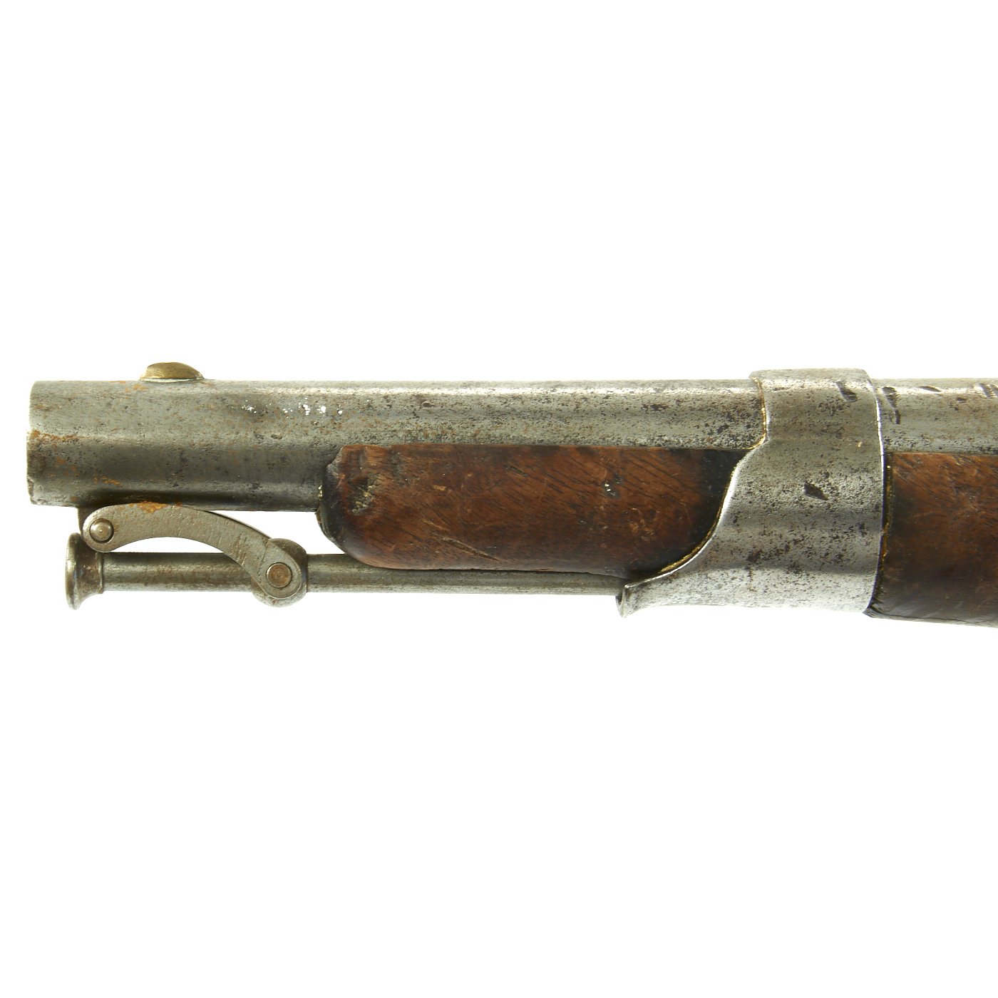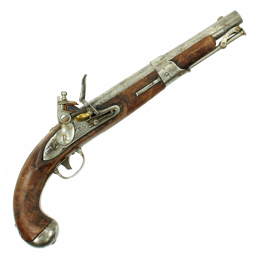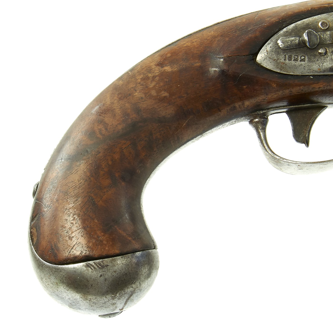 Original Item: Only One Available. This is a totally correct U.S. M-1819 Flintlock pistol made by Simeon North in Middletown, Connecticut, still in the original flintlock configuration. North had a 53 year relationship with the U.S. War Department, and the contract for the Model 1819 pistols was one of the last contracts North had for martial pistols from the U.S. Government. The model 1819 has a longer barrel than the previous model 1816, and features a "captured" ramrod which cannot be easily lost, as well as a half-cock safety on the lock. Many of these pistols were converted to percussion later in the 19th century, but this one escaped such treatment.