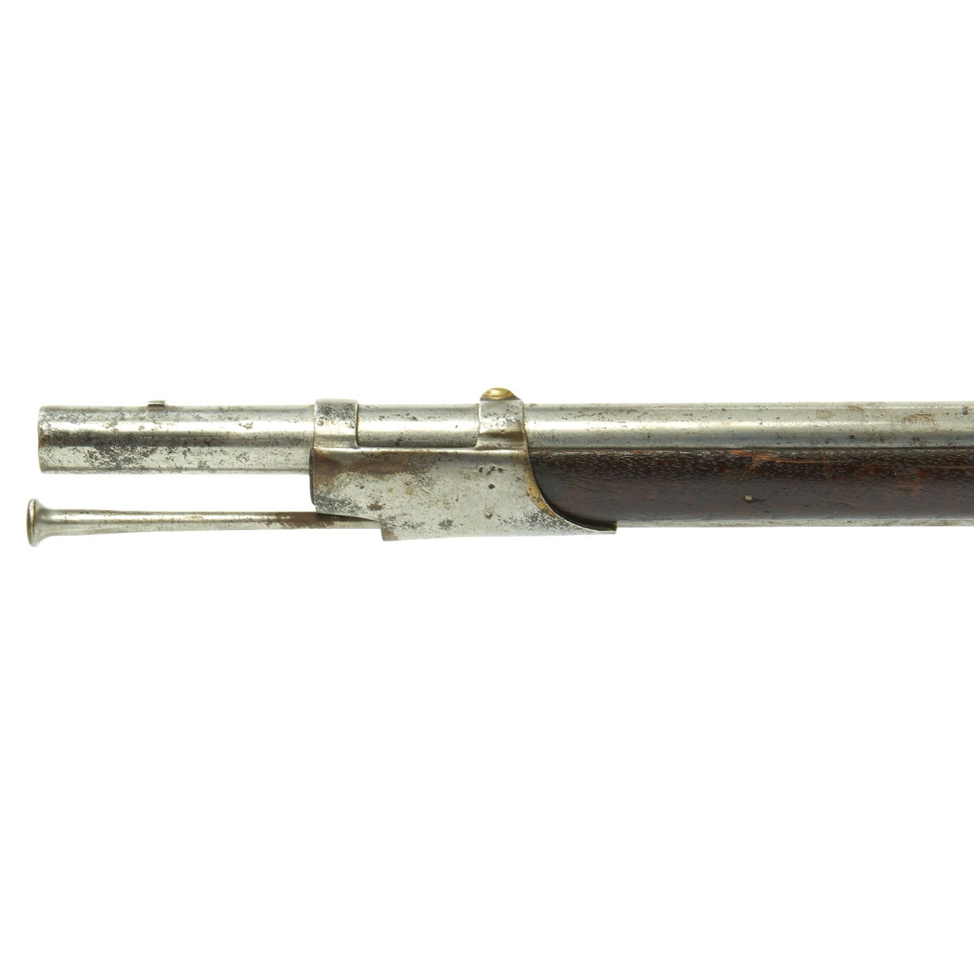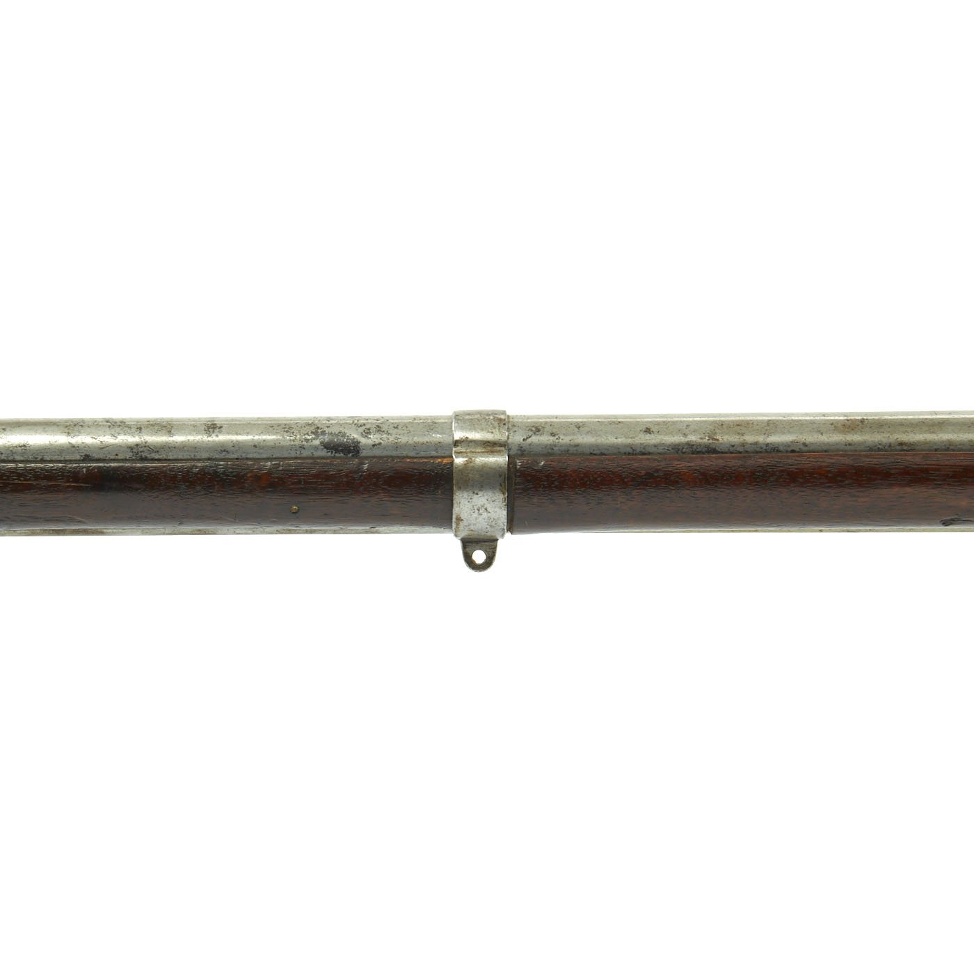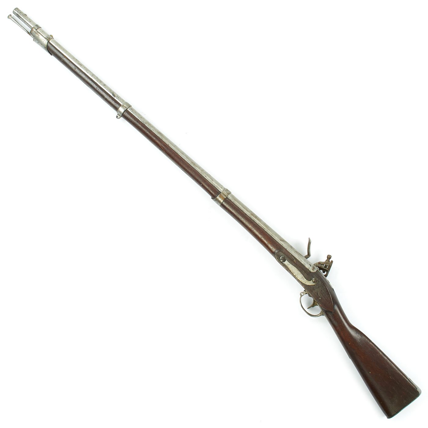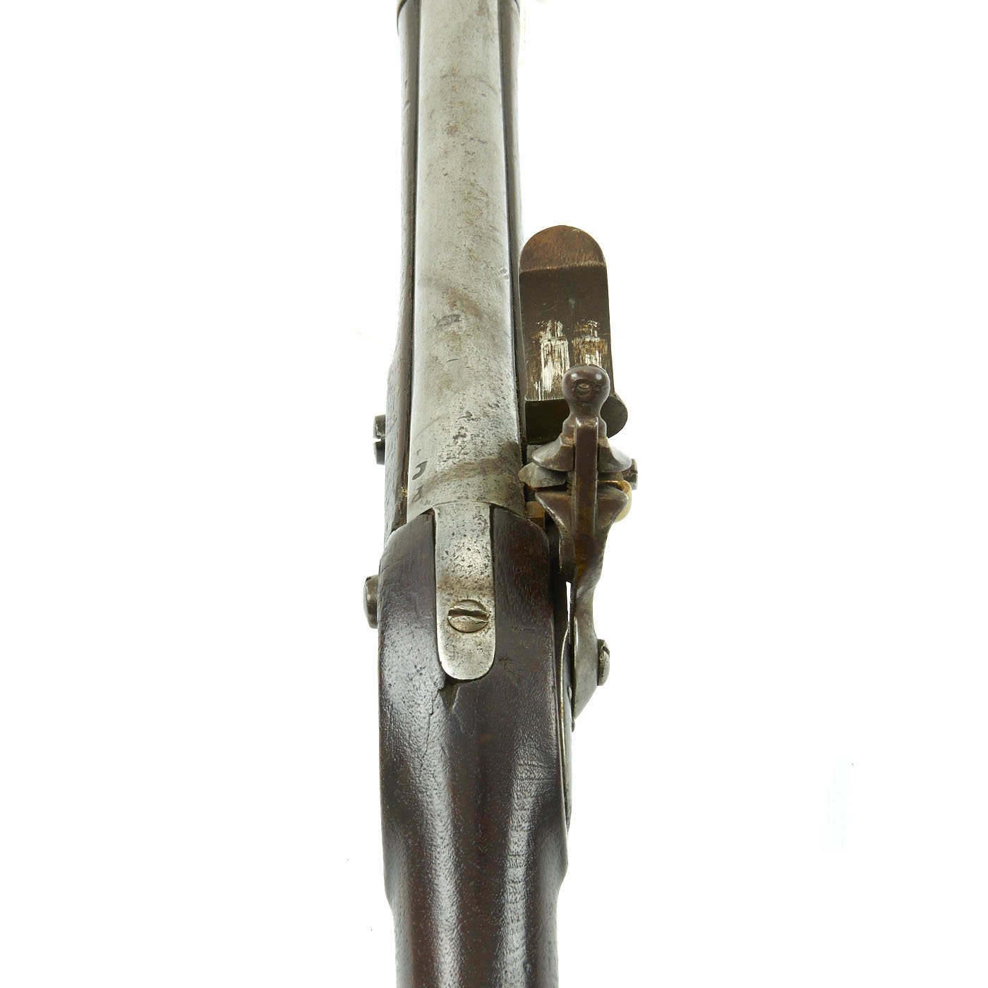 This example has been fully cleaned and put into excellent display condition. The lock is fully functional, and holds correctly at half-cock, firing at full cock. The metalwork has a really nice patina, and the wood stock is in great shape with a very nice color, though it does have the expected wear, dents, and scratches from being almost 200 years old. The muzzle of the barrel is in good shape, though we have not cleaned the bore, so it is somewhat dirty. Also, both the front and rear sling swivel were were removed at some point.