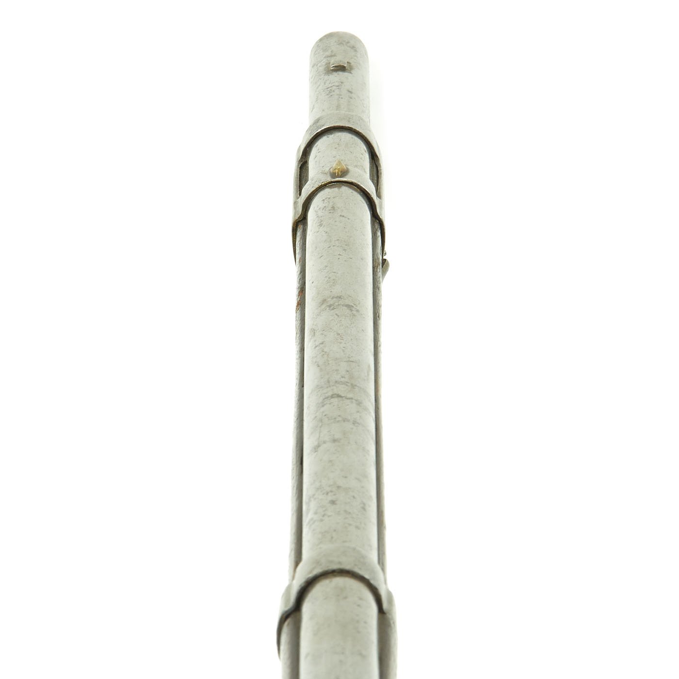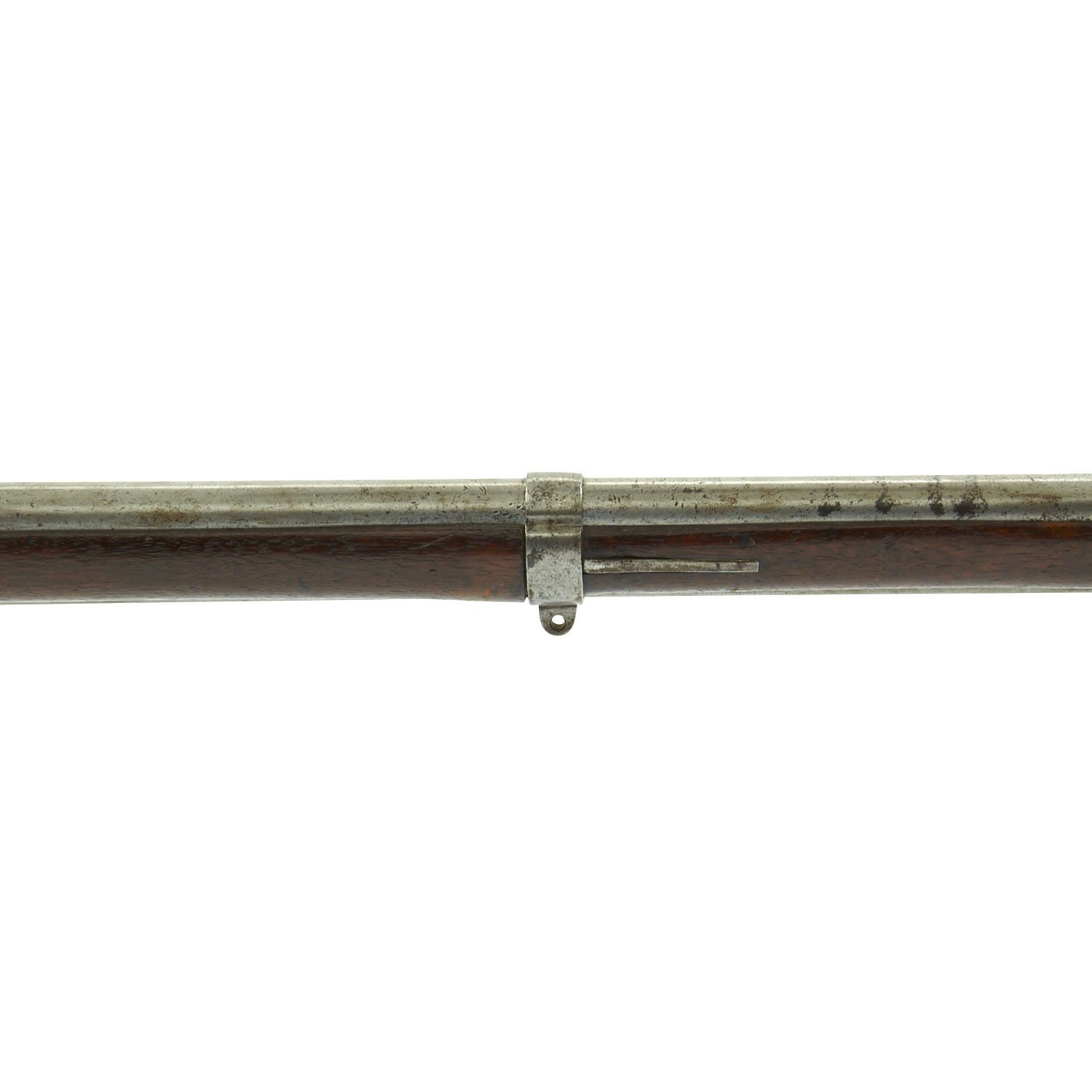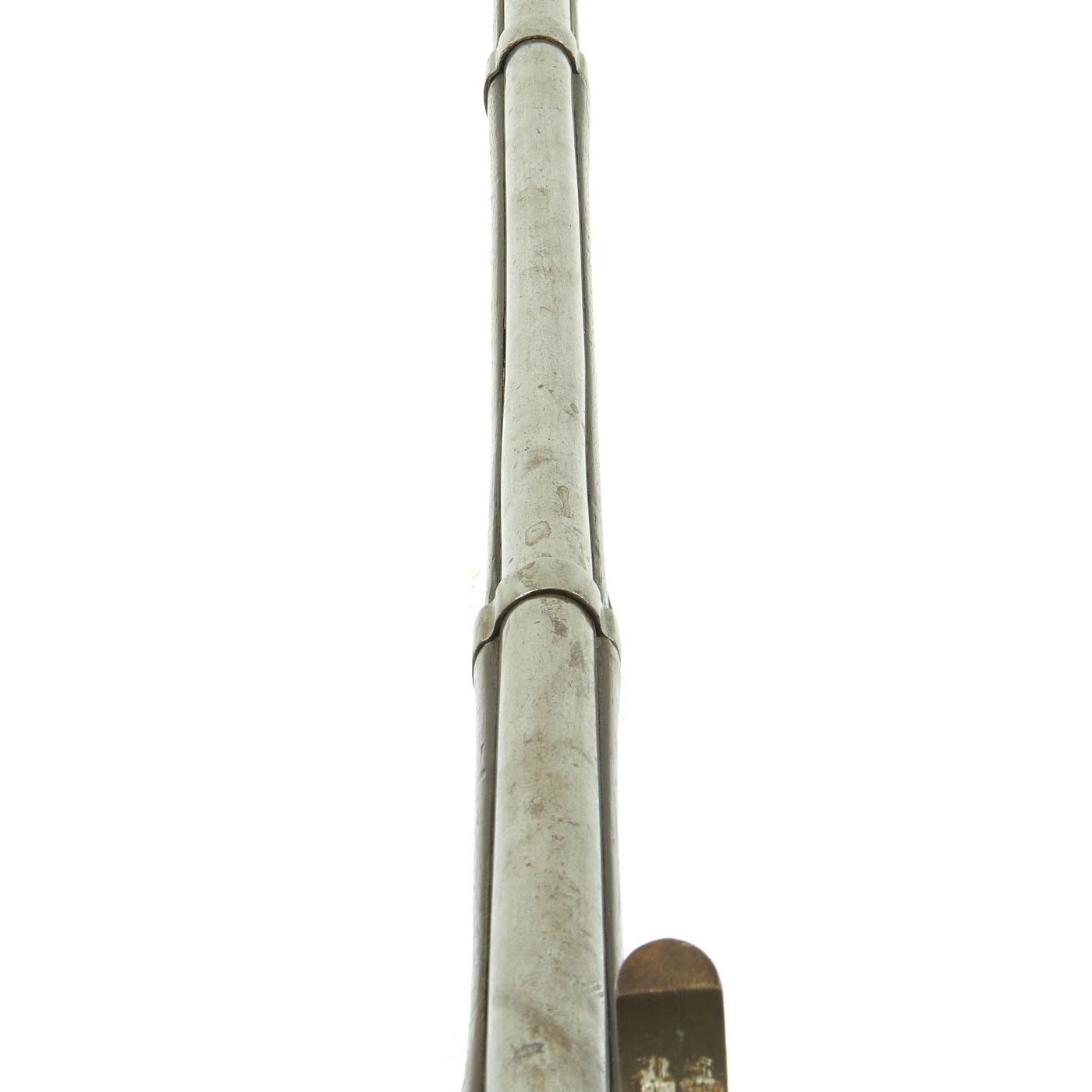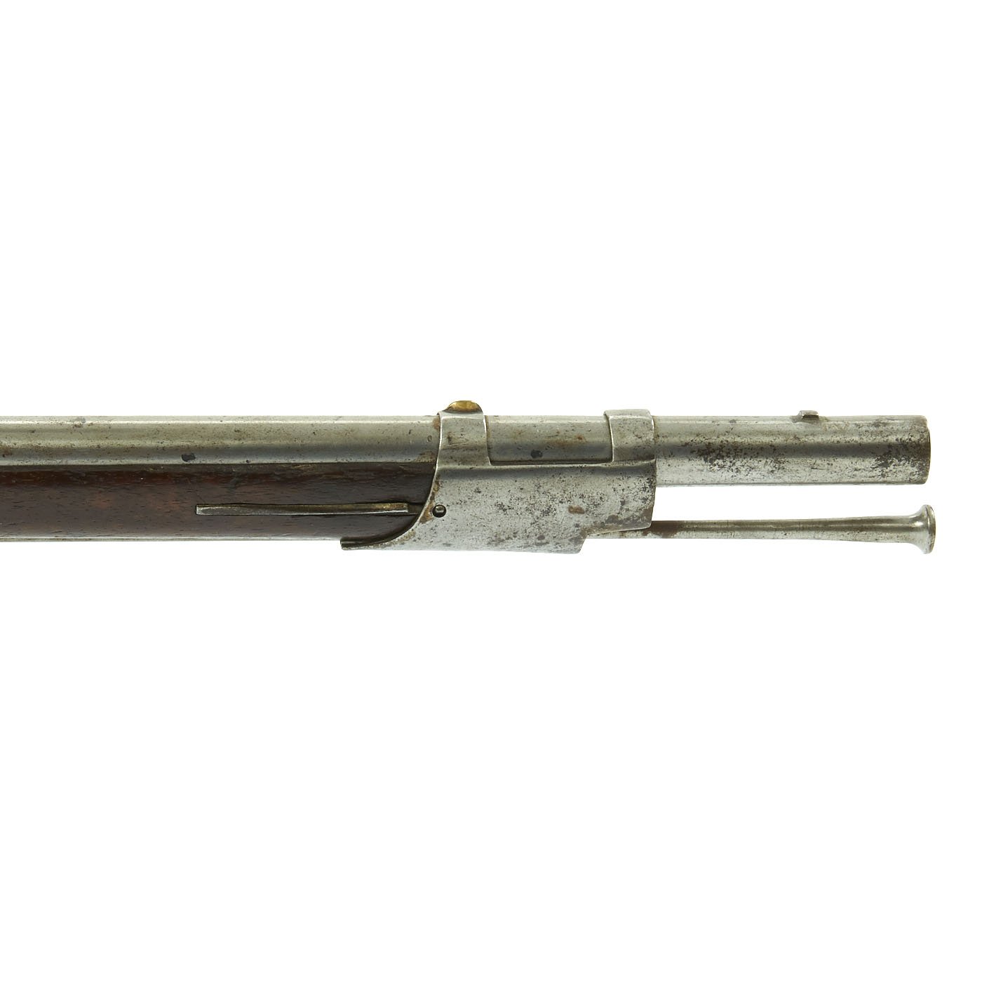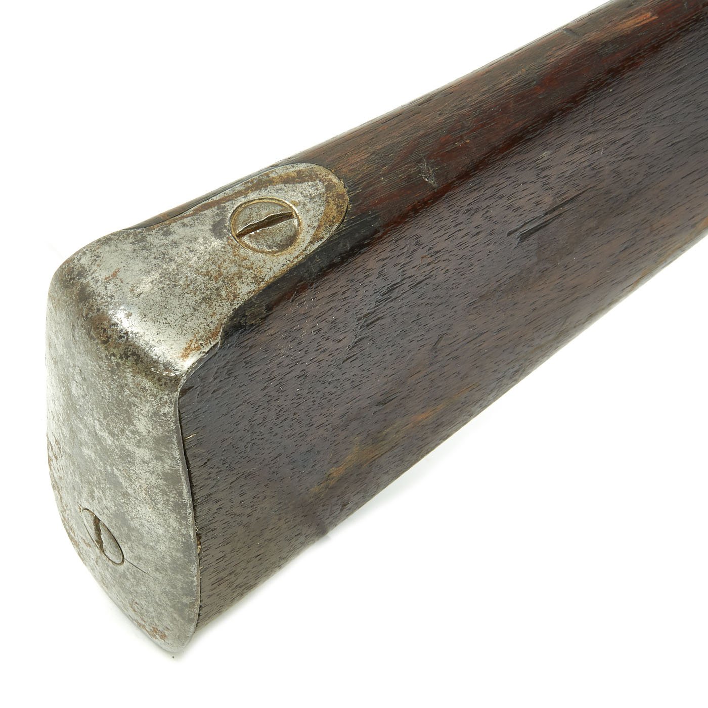 This example has been fully cleaned and put into excellent display condition. The lock is fully functional, and holds correctly at half-cock, firing at full cock. The metalwork has a really nice patina, and the wood stock is in great shape with a very nice color, though it does have the expected wear, dents, and scratches from being almost 200 years old. The muzzle of the barrel is in good shape, though we have not cleaned the bore, so it is somewhat dirty. Also, both the front and rear sling swivel were were removed at some point.