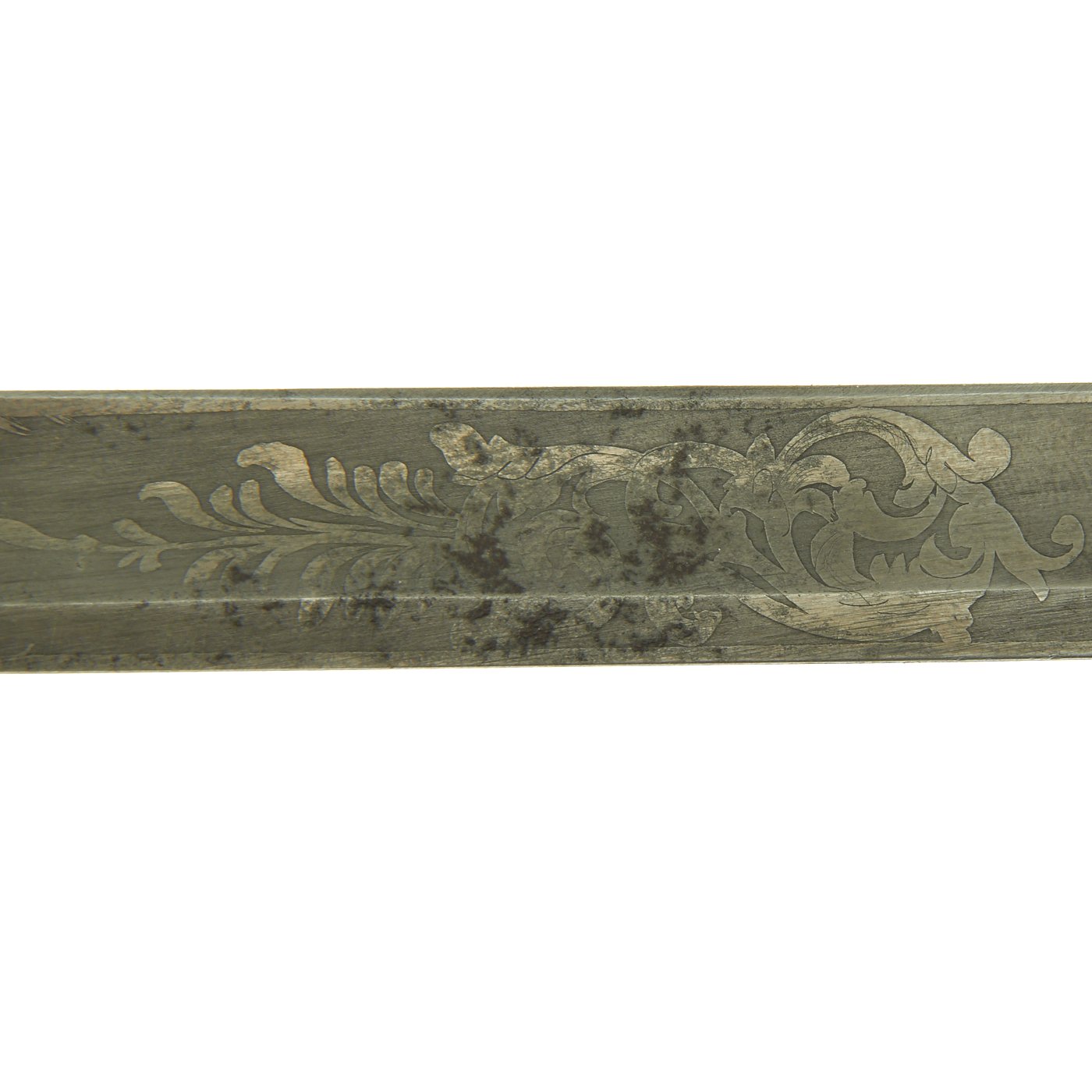 This smart sword comes together with its original brass mounted leather scabbard with two hanging rings. Hard to find in this condition especially being complete with its original Scabbard.