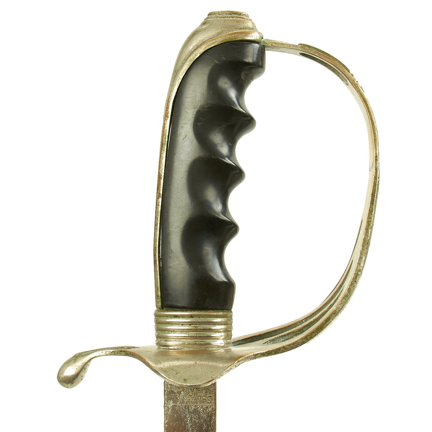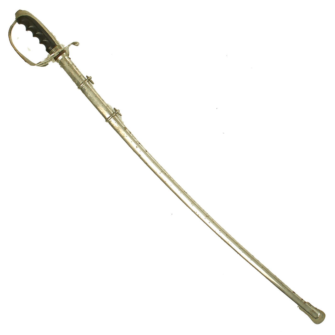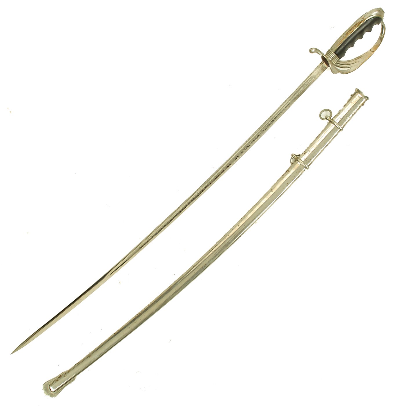 Original Item: Only One Available. The Model 1902 Army Officers' Saber is the current sword used by officers of the United States Army. The official nomenclature for the current regulation U.S. Army saber is “saber for all officers, Model 1902”. It was adopted on July 17, 1902 by authority of General Order No. 81. The M1902 saber was authorized for all officers, both infantry and cavalry, with the exception of Chaplains. The lightly curved blade measures between 30-34 inches long with weights initially specified by the U.S. Army to be between 20.2 and 22.8 ounces (573 to 647 grams) and a point of balance of 3.25 inches from the hilt as specified for infantry sabers.