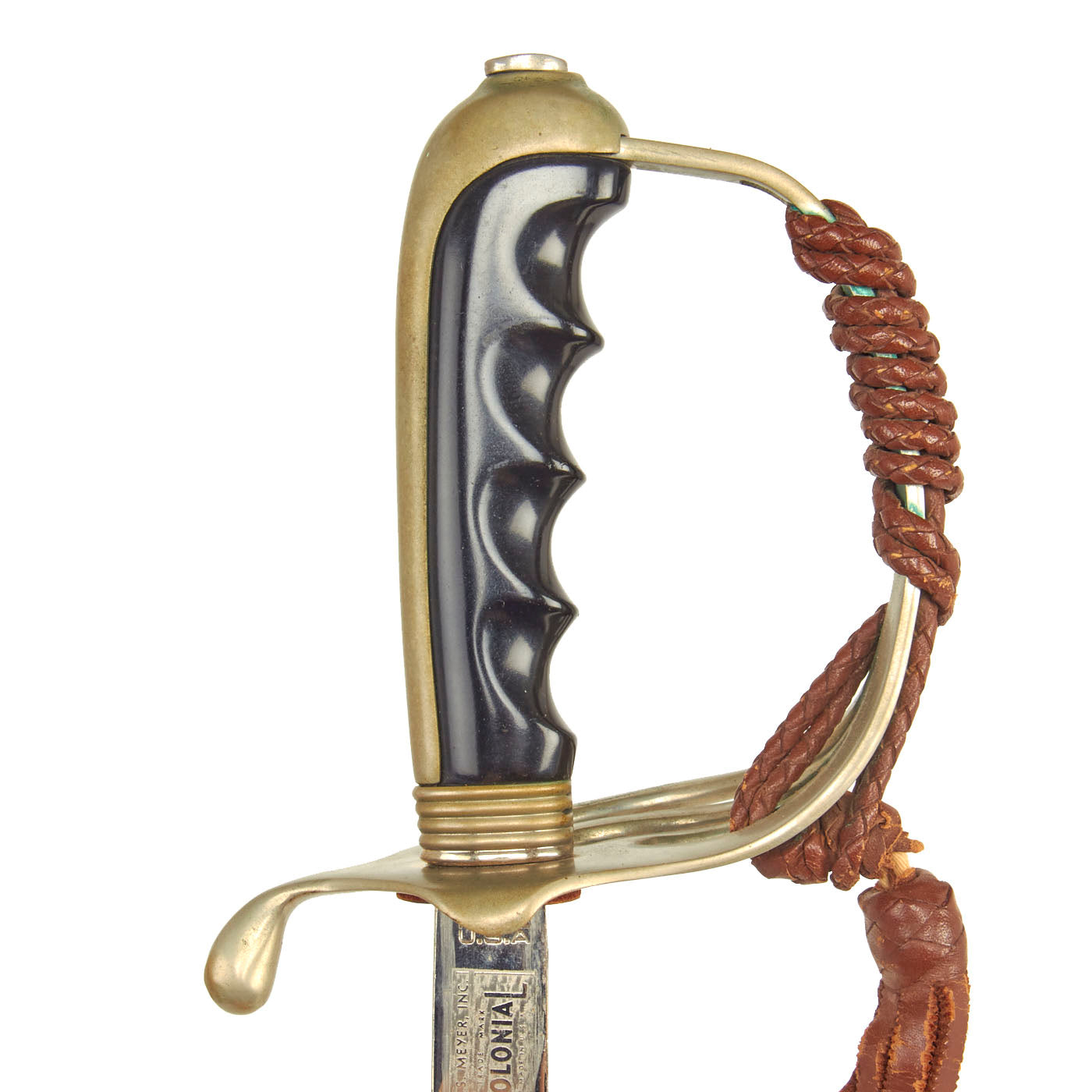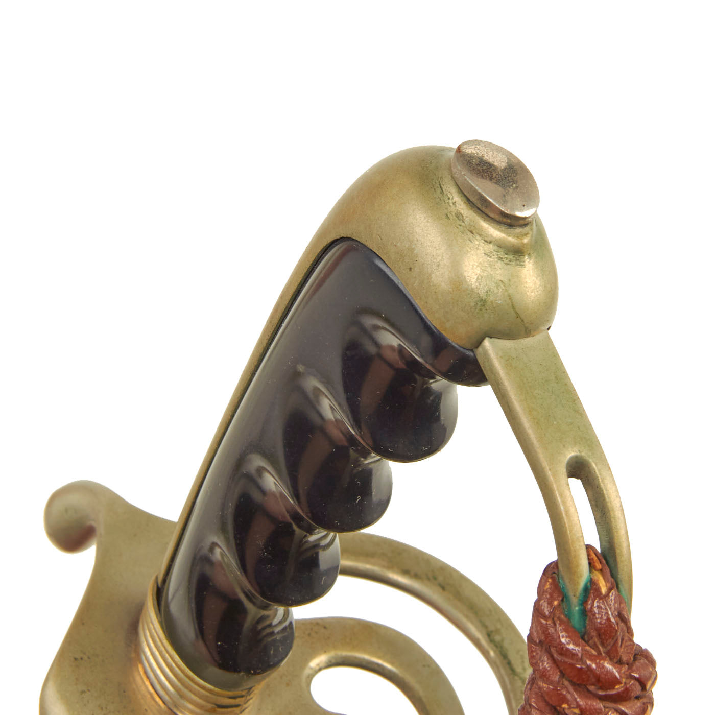 Original Item: Only One Available. The Model 1902 Army Officers' Saber is the current sword used by officers of the United States Army. The official nomenclature for the current U.S. Army saber is “saber for all officers, Model 1902”. It was adopted on July 17, 1902 by authority of General Order No. 81. The M1902 saber was authorized for all officers, both infantry and cavalry, with the exception of Chaplains. The lightly curved blade measures between 30-34 inches long with weights initially specified by the U.S. Army to be between 20.2 and 22.8 ounces (573 to 647 grams) and a point of balance of 3.25 inches from the hilt as specified for infantry sabers.