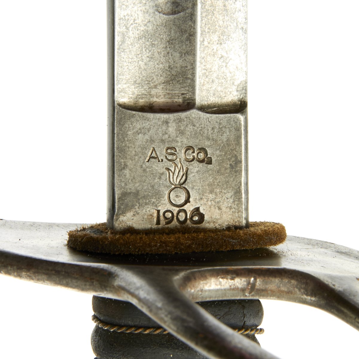 A. S. Co. is the abbreviation for Ames Sword Company of Chicopee, Massachusetts, one of the largest independent producers of swords for the U.S. Military since the Civil War. They had made large numbers of the model 1860 Cavalry Saber. The reverse ricasso is marked U.S / J.H.C., for the inspector at Ames at that time. We unfortunately have not been able to determine this person's name.
