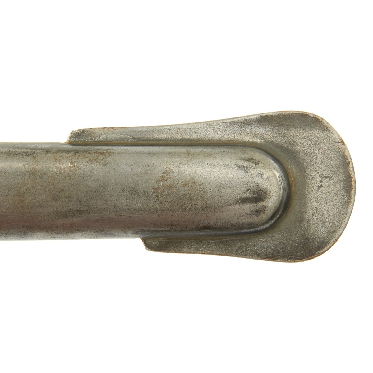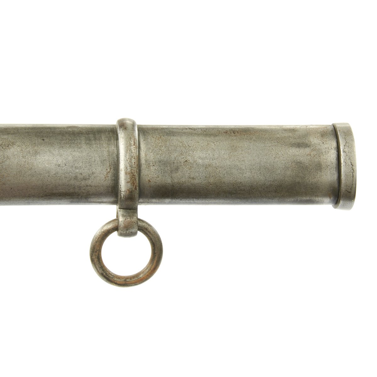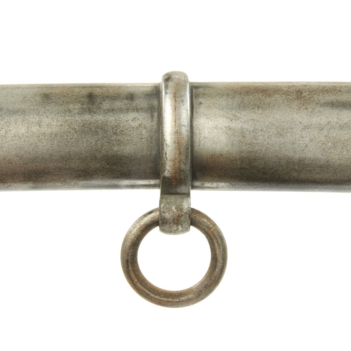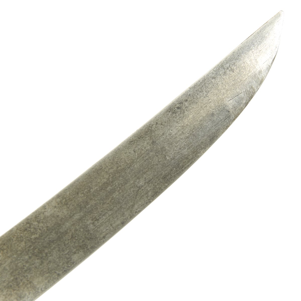 The blade on this example is in very good condition, with a nice patina, with no edge nicks or other damage from use, just staining from age and cleaning. These blades were seldom used in combat, and were almost ceremonial, even right after they were approved. There are some areas of staining and light peppering, but nothing major. The hilt has a nice browned patina, with no pitting or major rust issues.