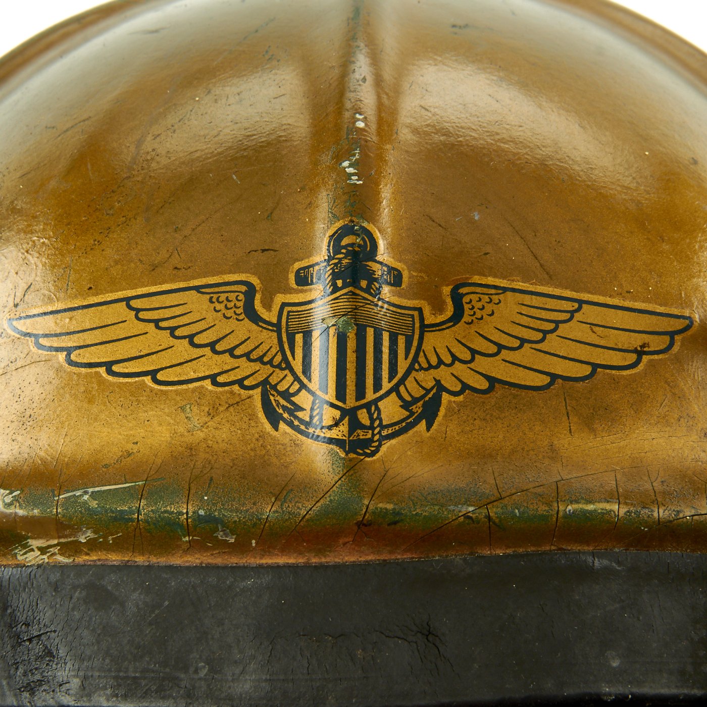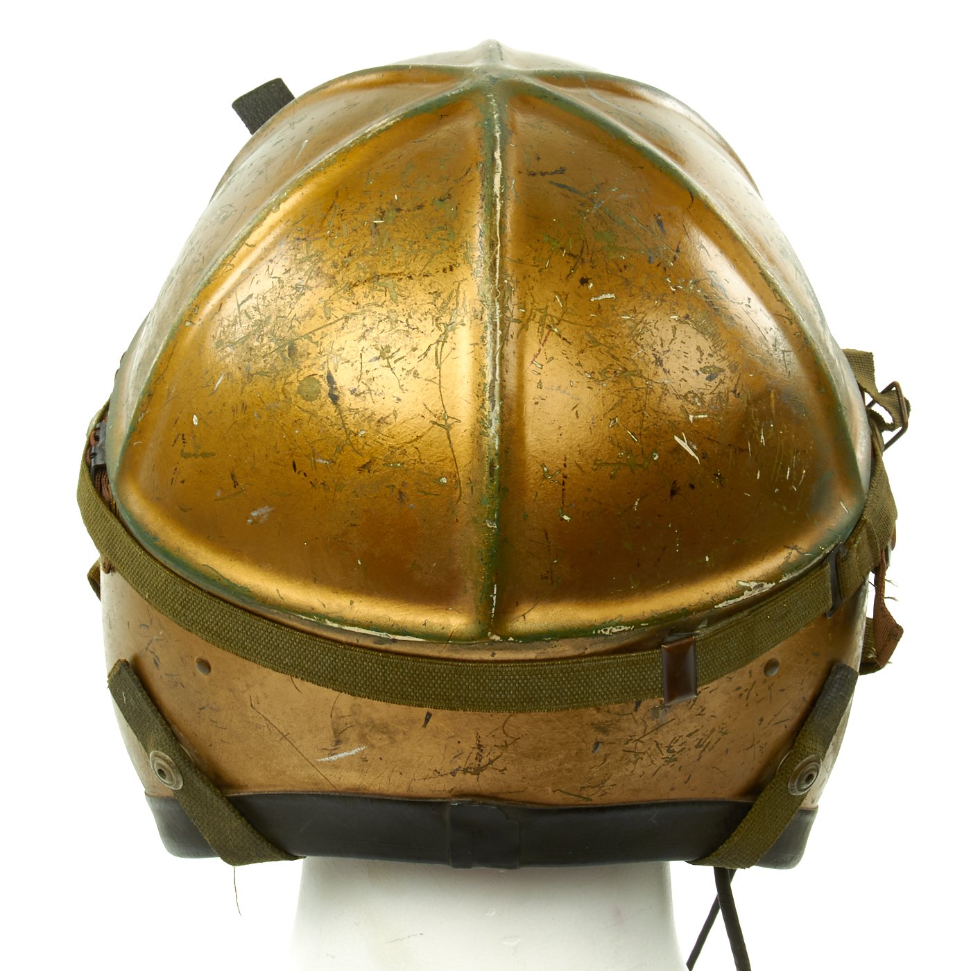 • Original Items: Only One Available. This is a very good condition 1956-1964 USN size medium Gentex H-4 helmet that comes complete with internal cloth helmet which contains the ear phones, boom mic, and special Polaroid B-8 googles. Helmet features original gold paint and USN / USMC Aviator wings to front. All parts are in very good condition. This is an incredibly rare set.