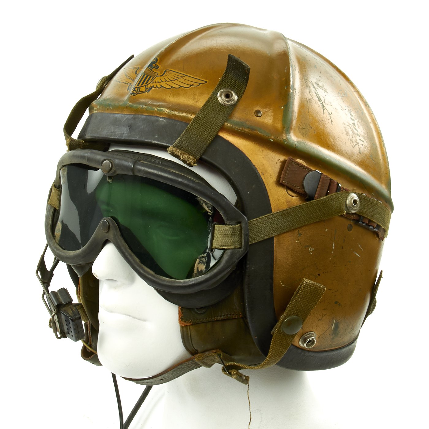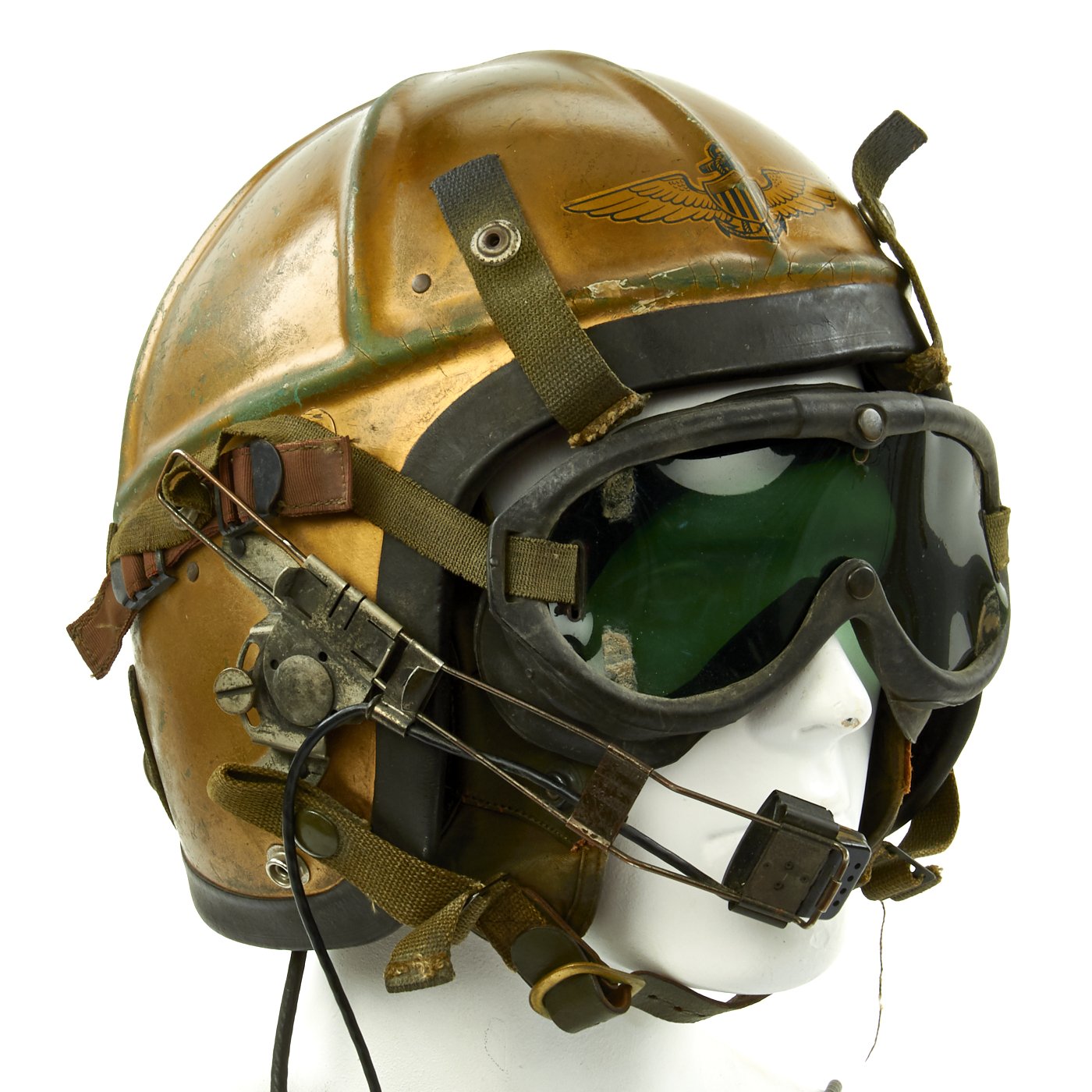 Original U.S. Navy 1950s Gentex H-4 Flight Helmet with Cloth Helmet, Boom Mic and Googles