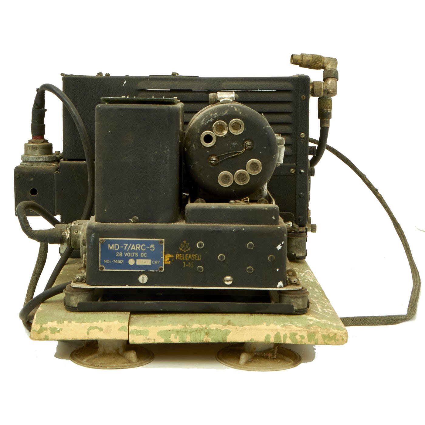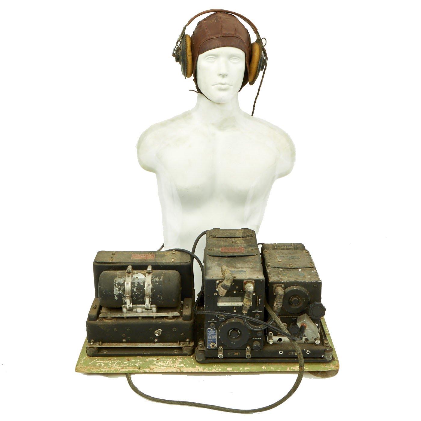 Original Item: Only One Available. WWII US Navy Aircraft Radio, as used in all varieties of US Navy Aircraft during WWII. This is a ready to display unit, perfect for the aviation collector! Comes with a replica Leather Flight Helmet and ANB-H-1 Headset. Components are profusely marked.