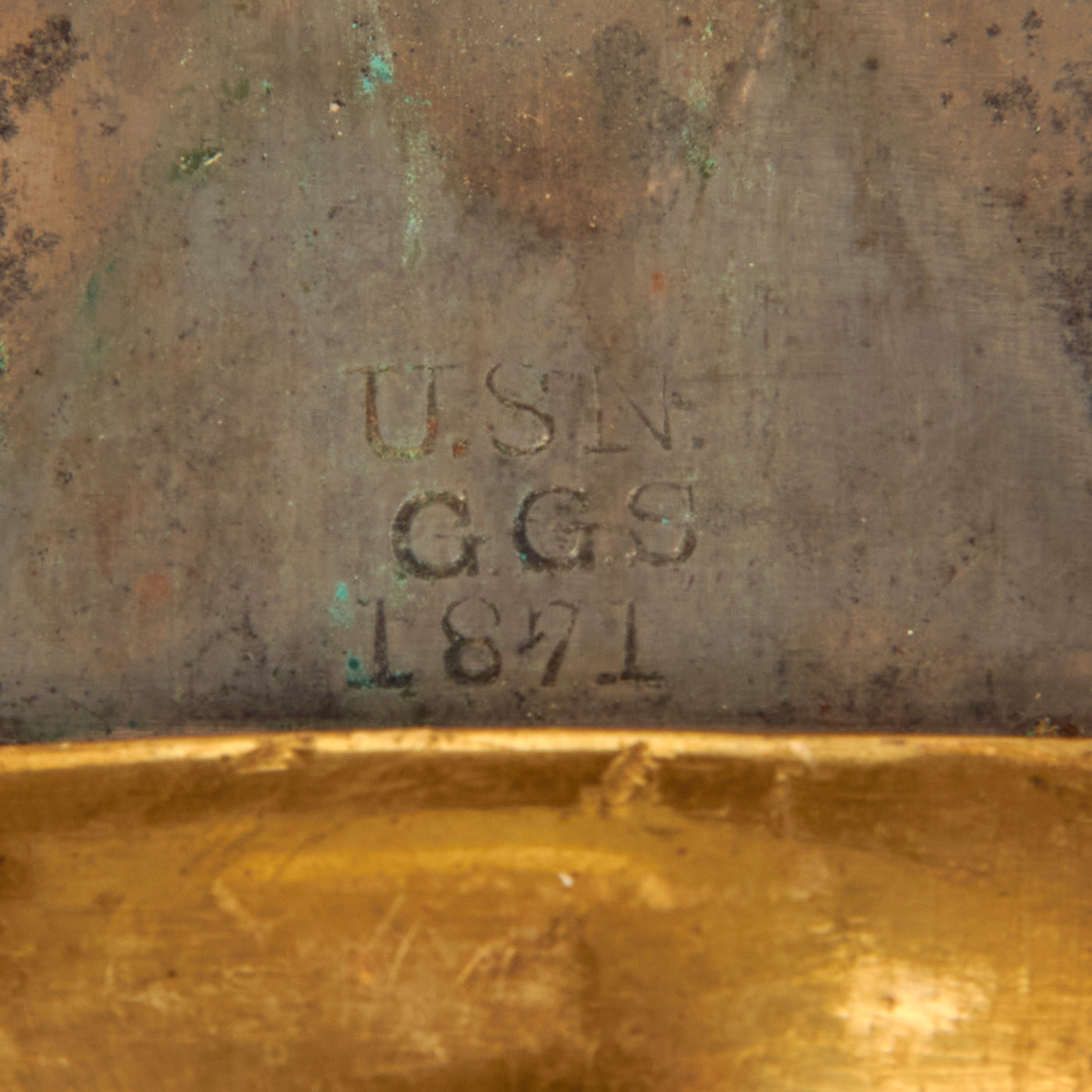 The pommel is cast with the U.S. Crossed Cannons overlaying an Anchor and still bears the U.S. Inspector's initials of G.G.S.. The blade shows use with some staining but is still in great shape. Bayonet comes complete with brass mounted black leather scabbard.