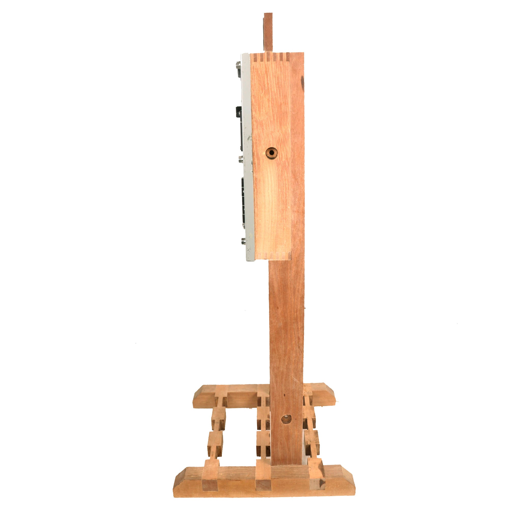 The panel has a myriad of buttons & a dial to set the maintenance of the system. The highlight is certainly the “Missile Away” button which is the launch button for a Nuclear missile. The panel is mounted with 8 large screws, the bottom middle of which is hanging out of its socket as shown. The base being made from a wooden battery rack of the submarine is a lovely addition to this already stunning piece.