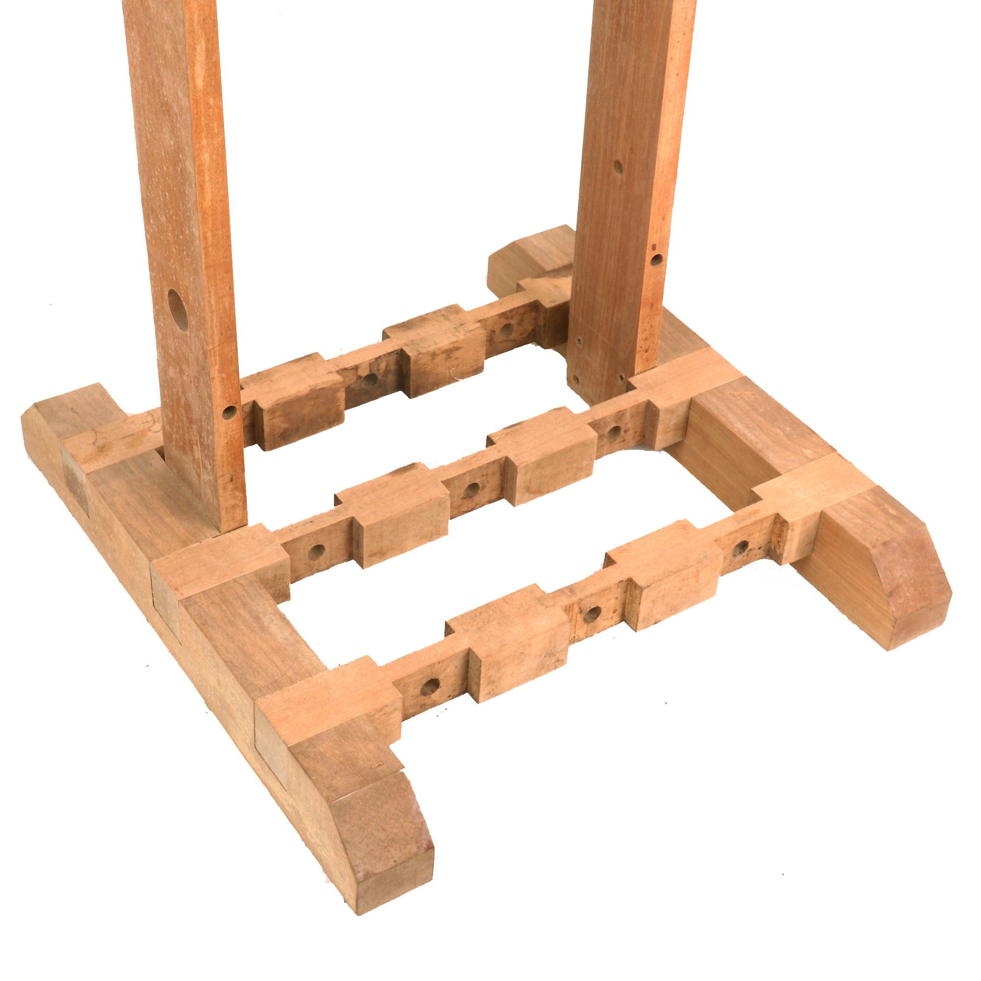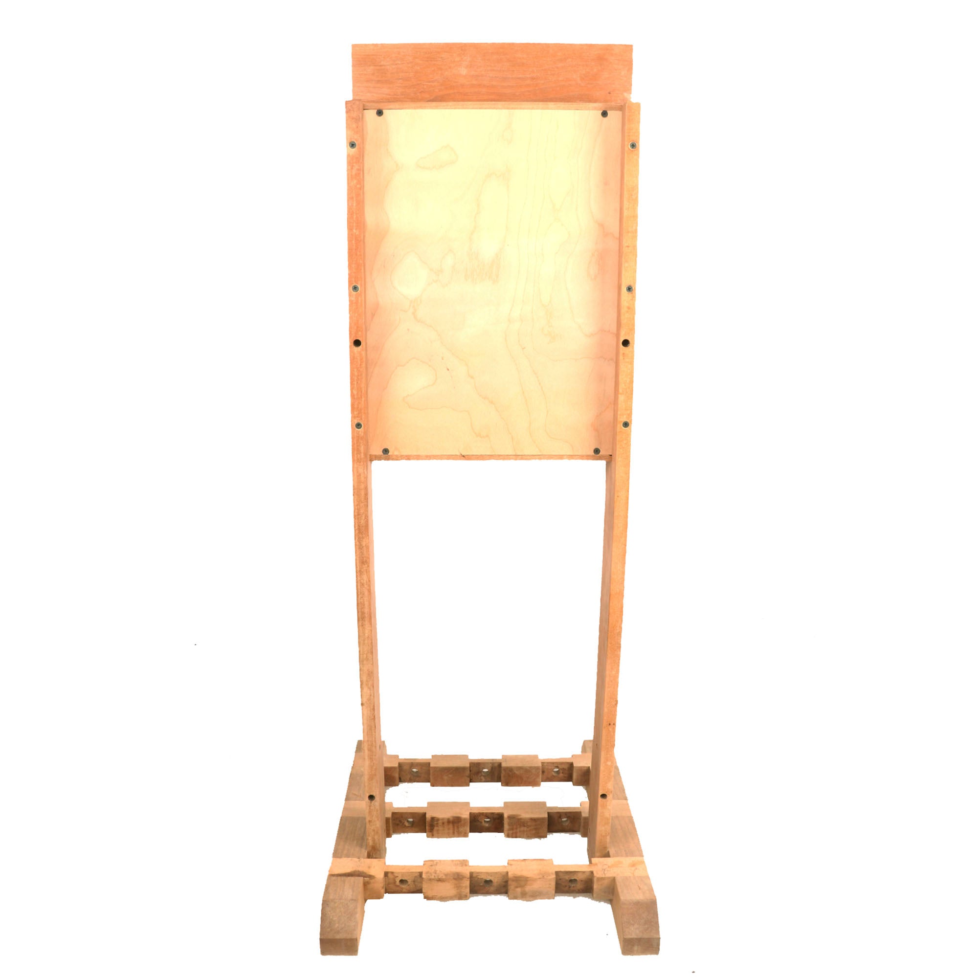 Note: the base will be detached from the stand, and is held on by seven square drive screws. It will be removed for shipping to avoid damaging the stand, and must be reassembled.