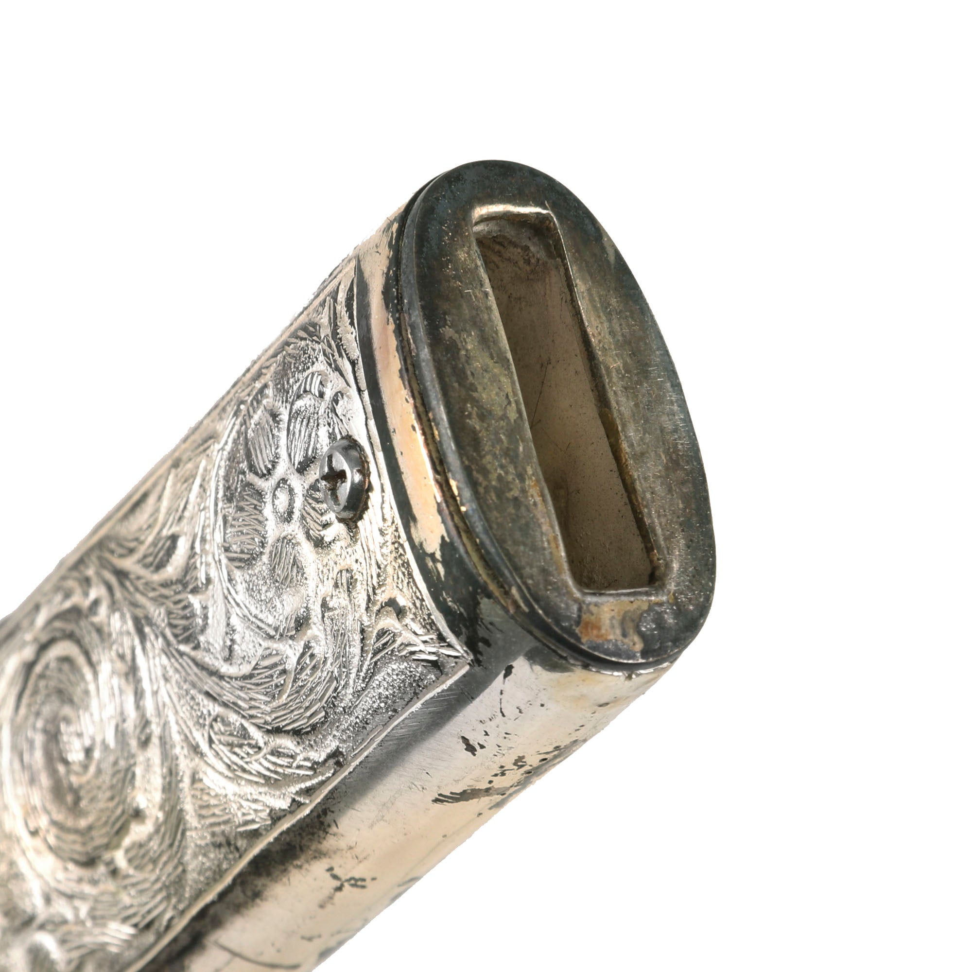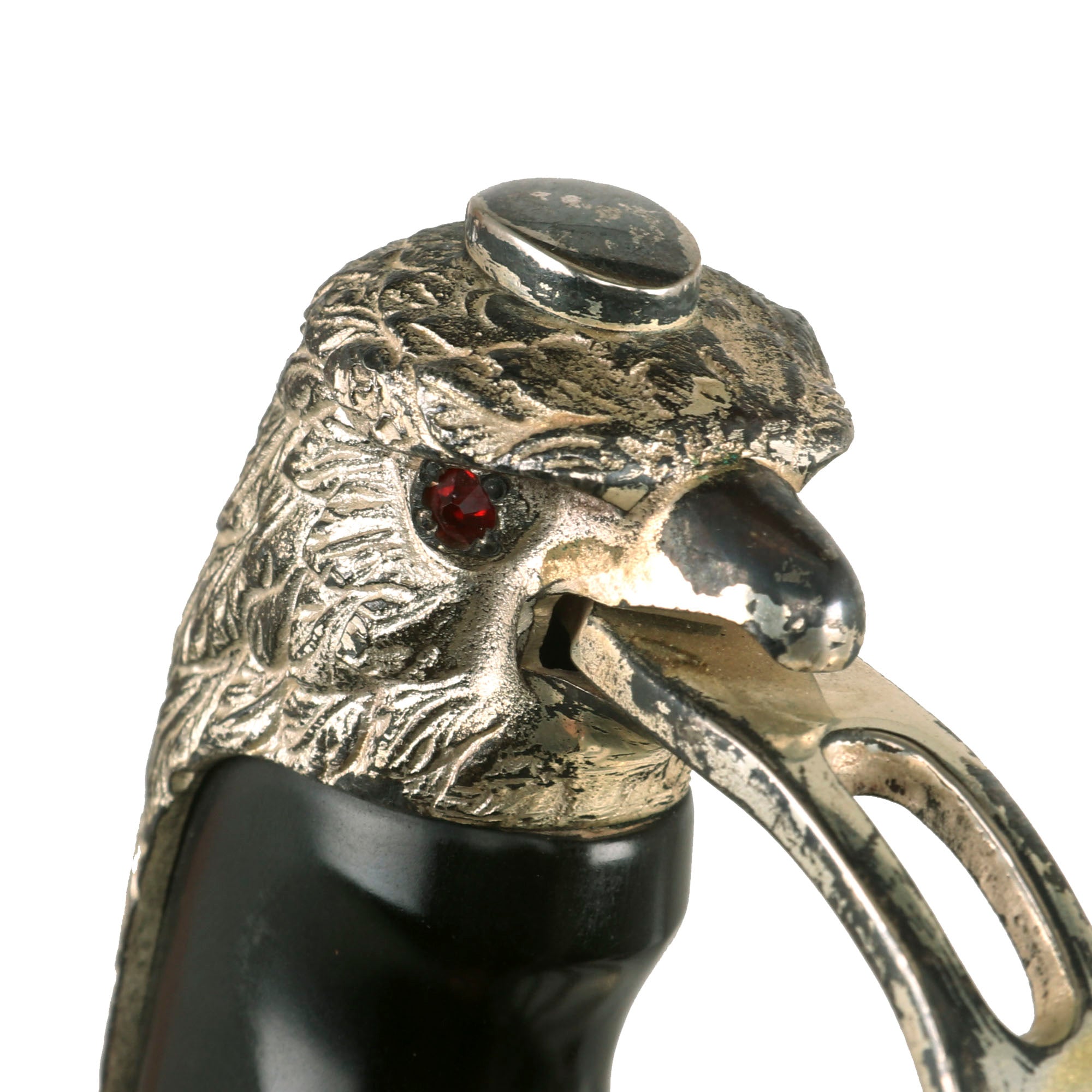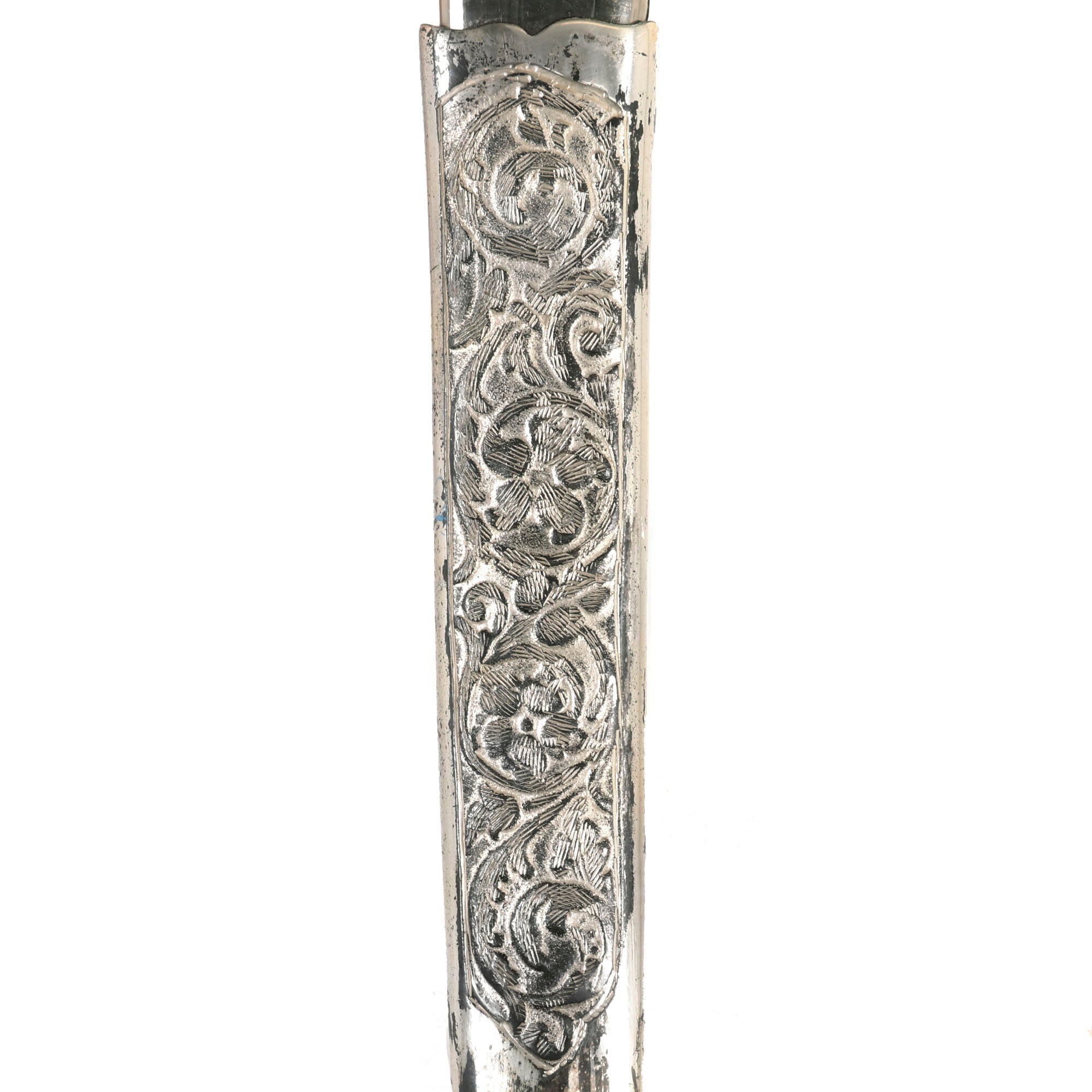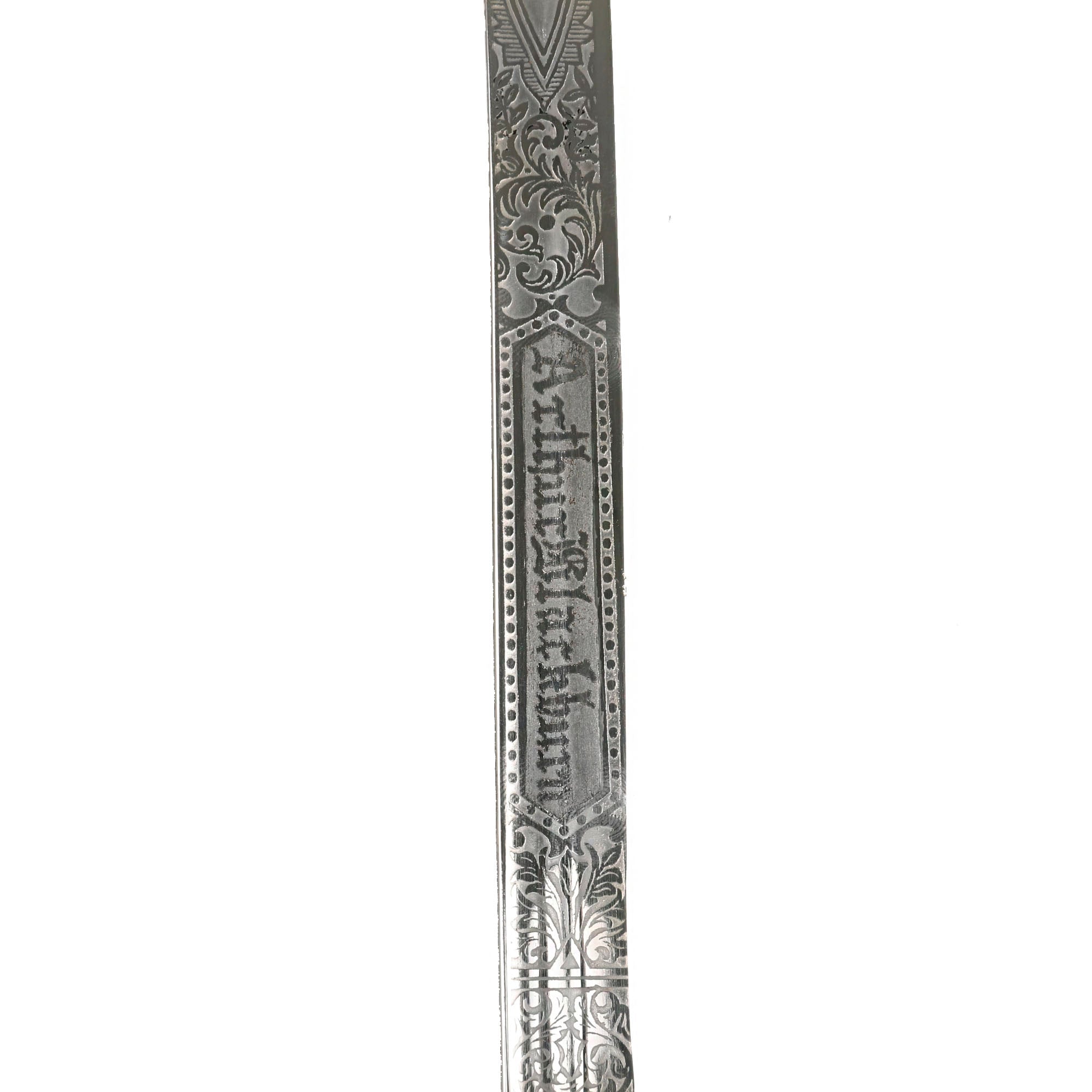 This is actually an incredibly ornate presentation sword with a lovely “ruby” eyed Eagle pommel. The sword is 36 inches in overall length, with a 29 1/2 inch blade. Condition is very good, with almost all of the nickel/silver plating intact, and comes complete with its matching very ornate scabbard Scabbard.