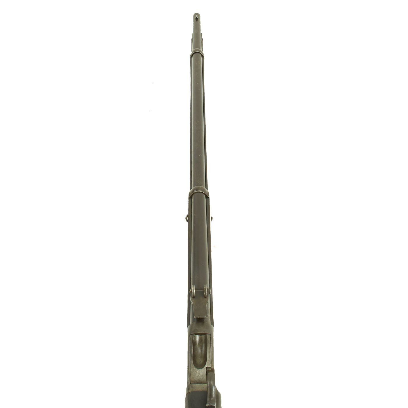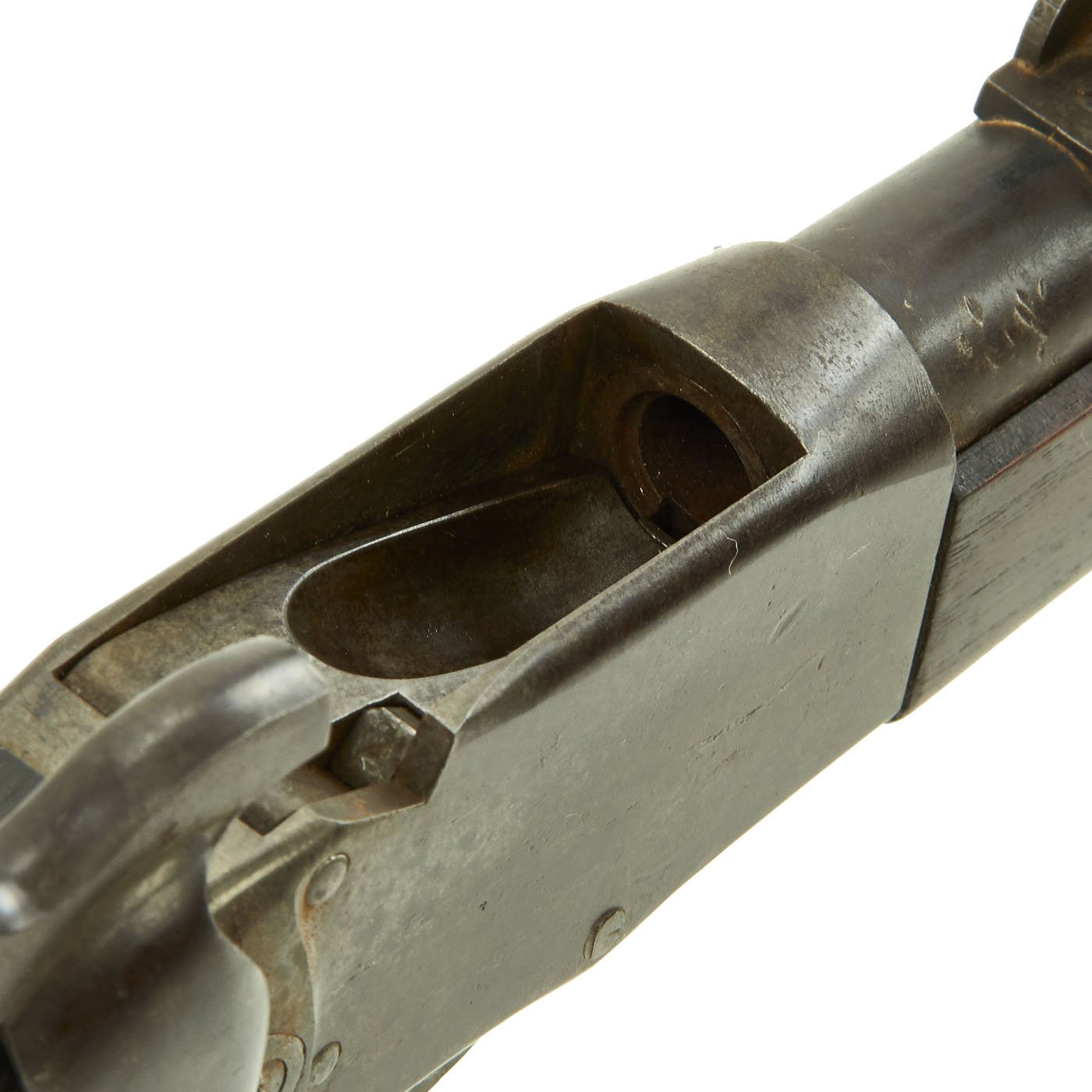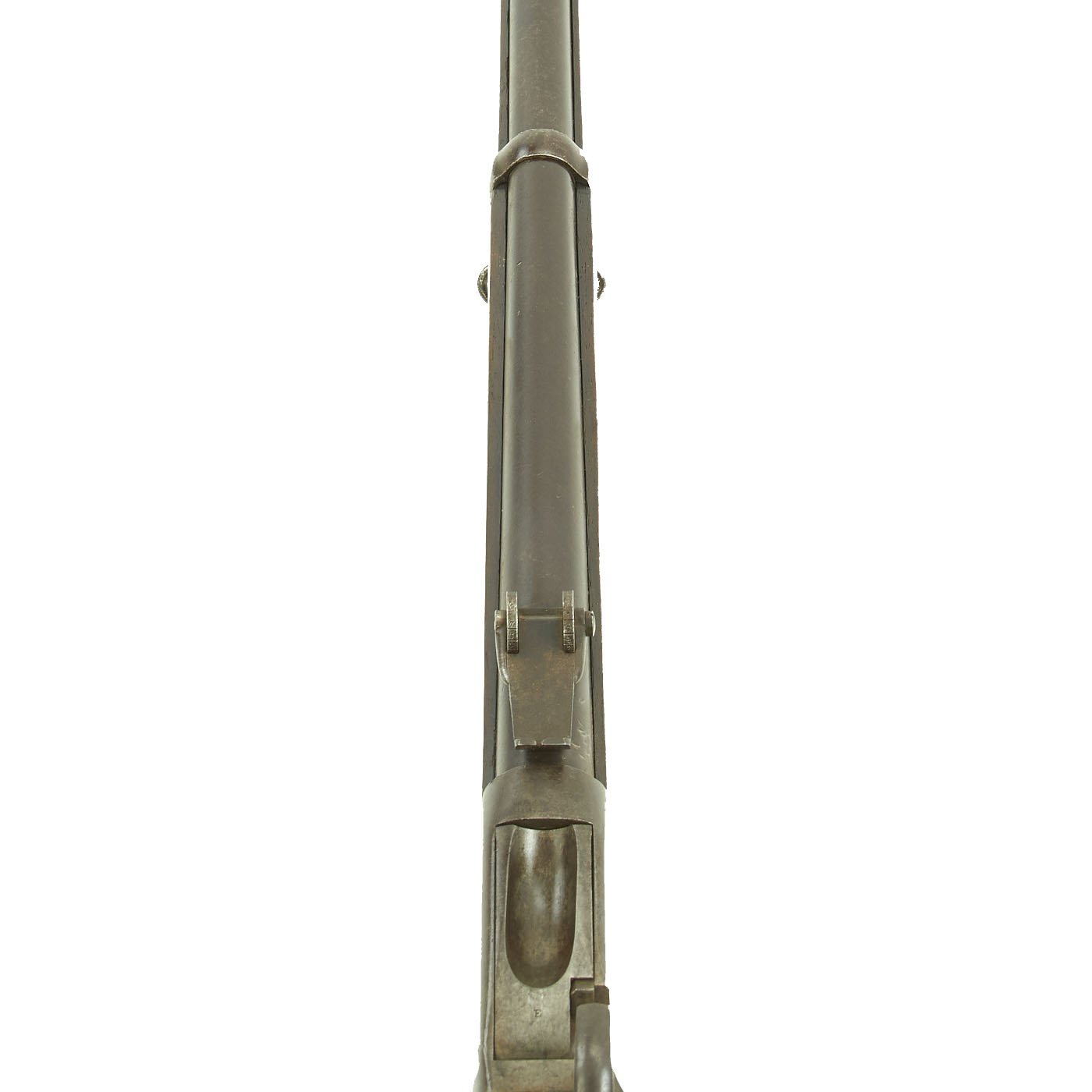 Providence was however able to acquire many foreign contracts, one of which was to supply Romania. These were chambered in .45 Romanian 11.43mm x 49mmR, which many believe to be a slightly necked out .43 Spanish Cartridge. These rifles look identical externally to most of the other types, however they have a unique rear single leaf pivot sight. The leaf reaches all the way back to the end of the receiver, and has a sight notch slightly off to the left. We recently received this fine example from a private collector.