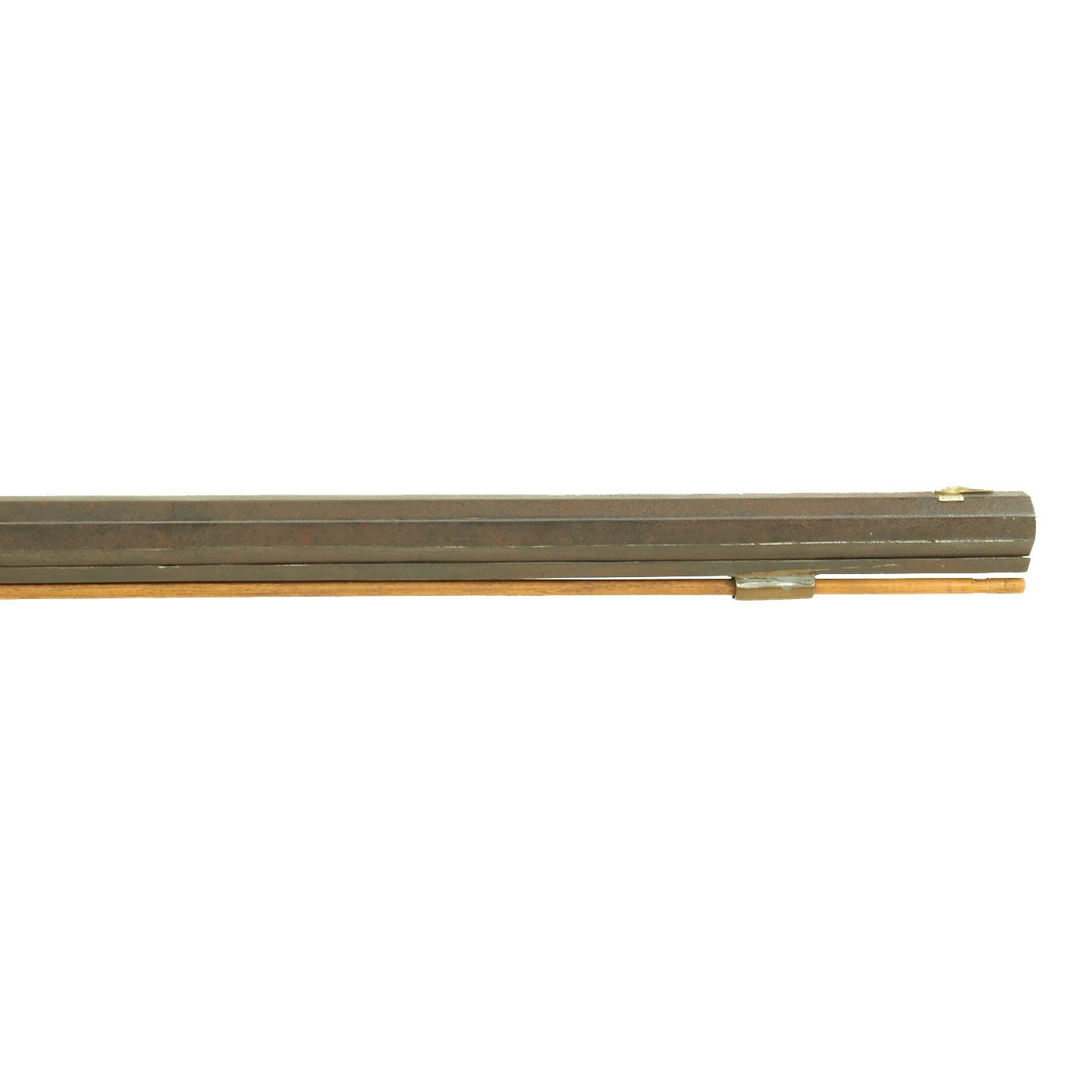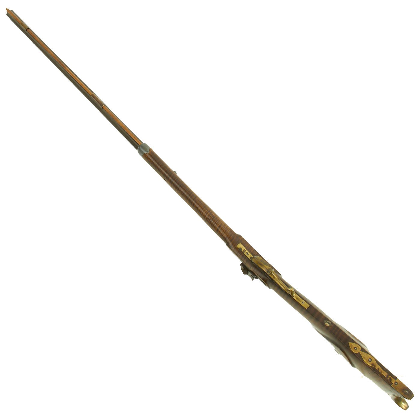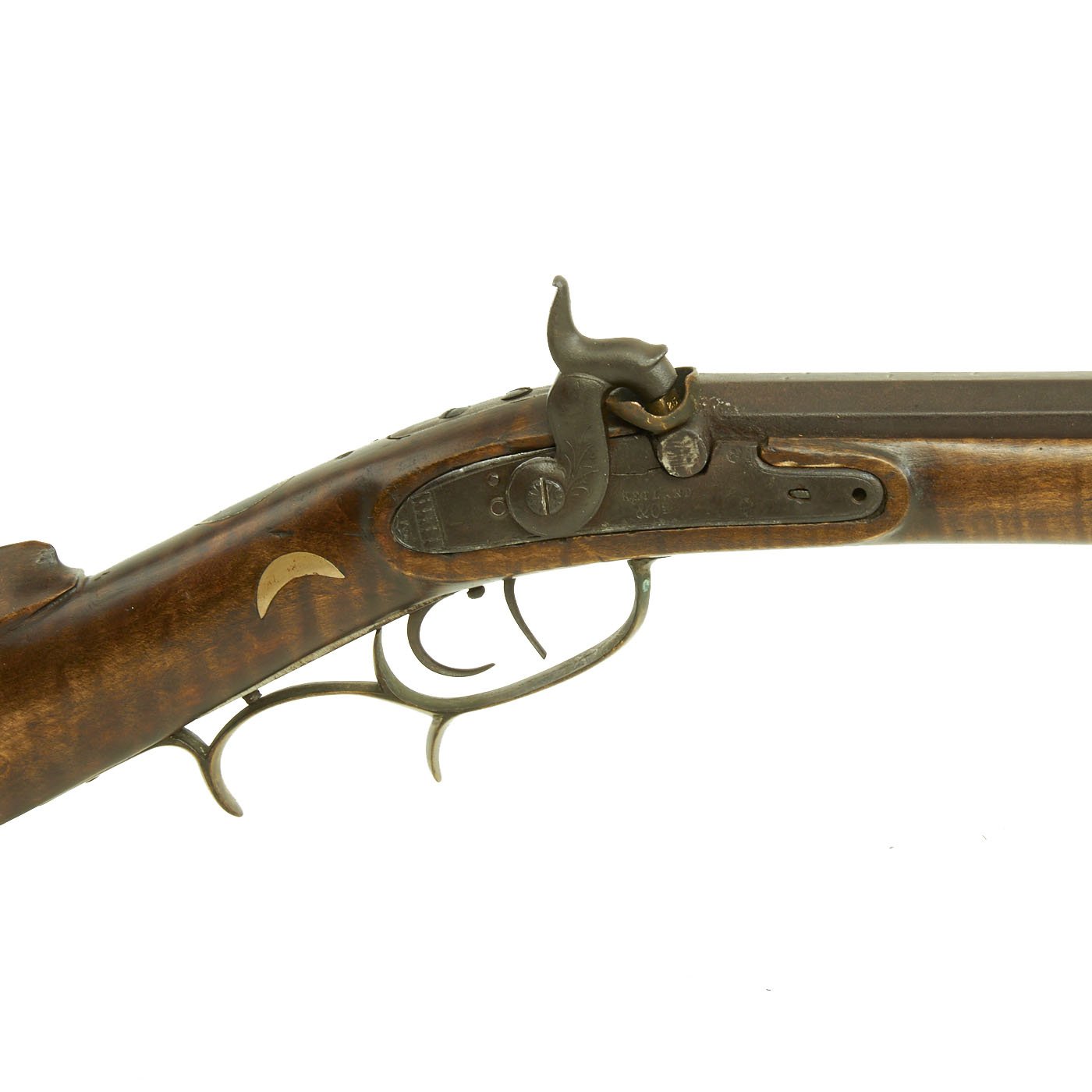 Original Item: Only one available. Here is an octagonal barreled "Kentucky" style rifle, which more correctly is known as a Pennsylvania Rifle. It looks to be in .39" caliber, a very common size for these rifles, and has a heavy octagonal barrel with seven groove rifling. The rifle was built in the United States using a percussion trade lock, which is marked KETLAND / & CO.. WILLIAM KETLAND is a recorded as working from 1740-1804 where after it became KETLAND & CO from 1804 until 1831. This lock looks older than the rest of the rifle, so it was probably transplanted from a previously made firearm and converted to percussion.