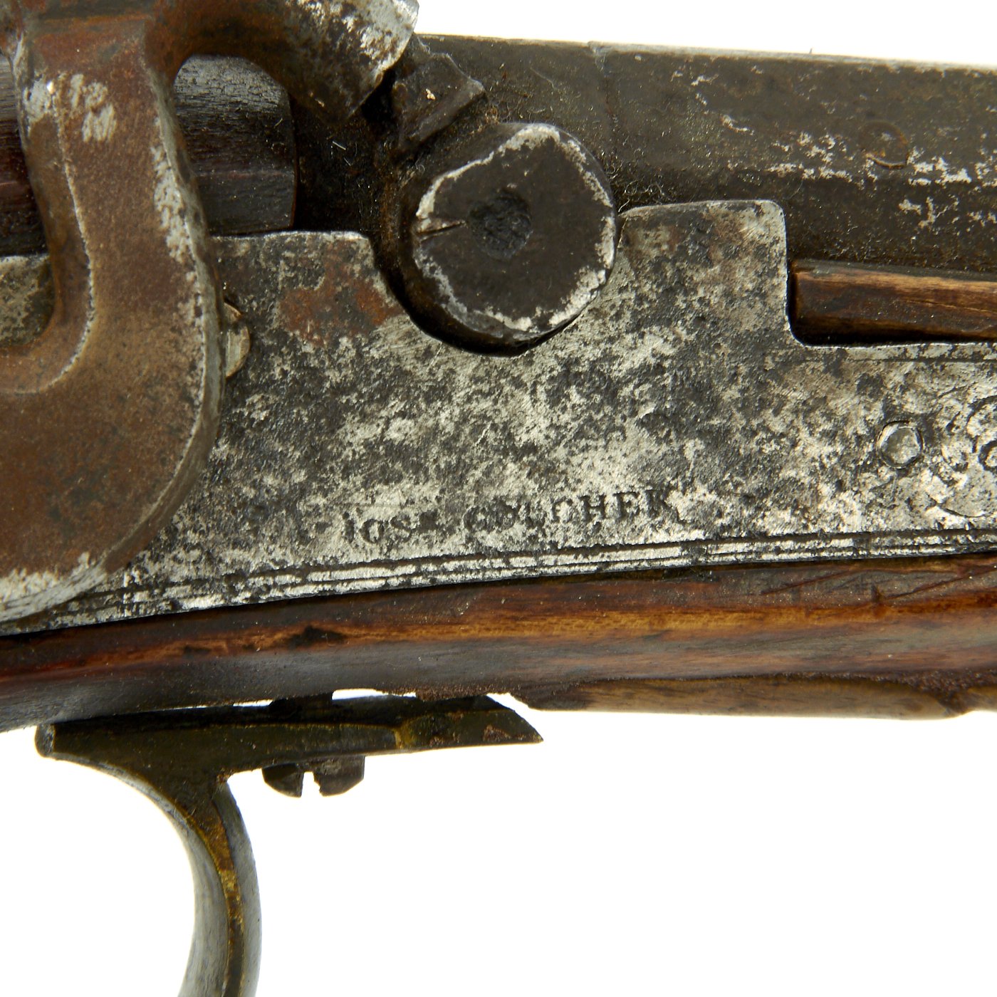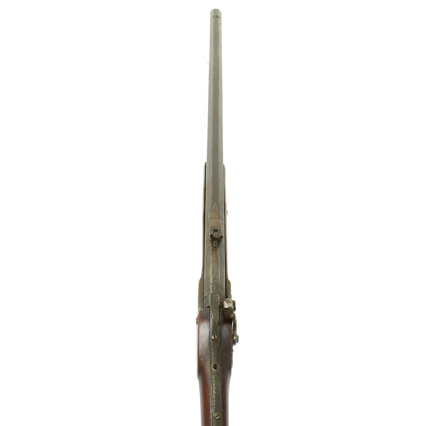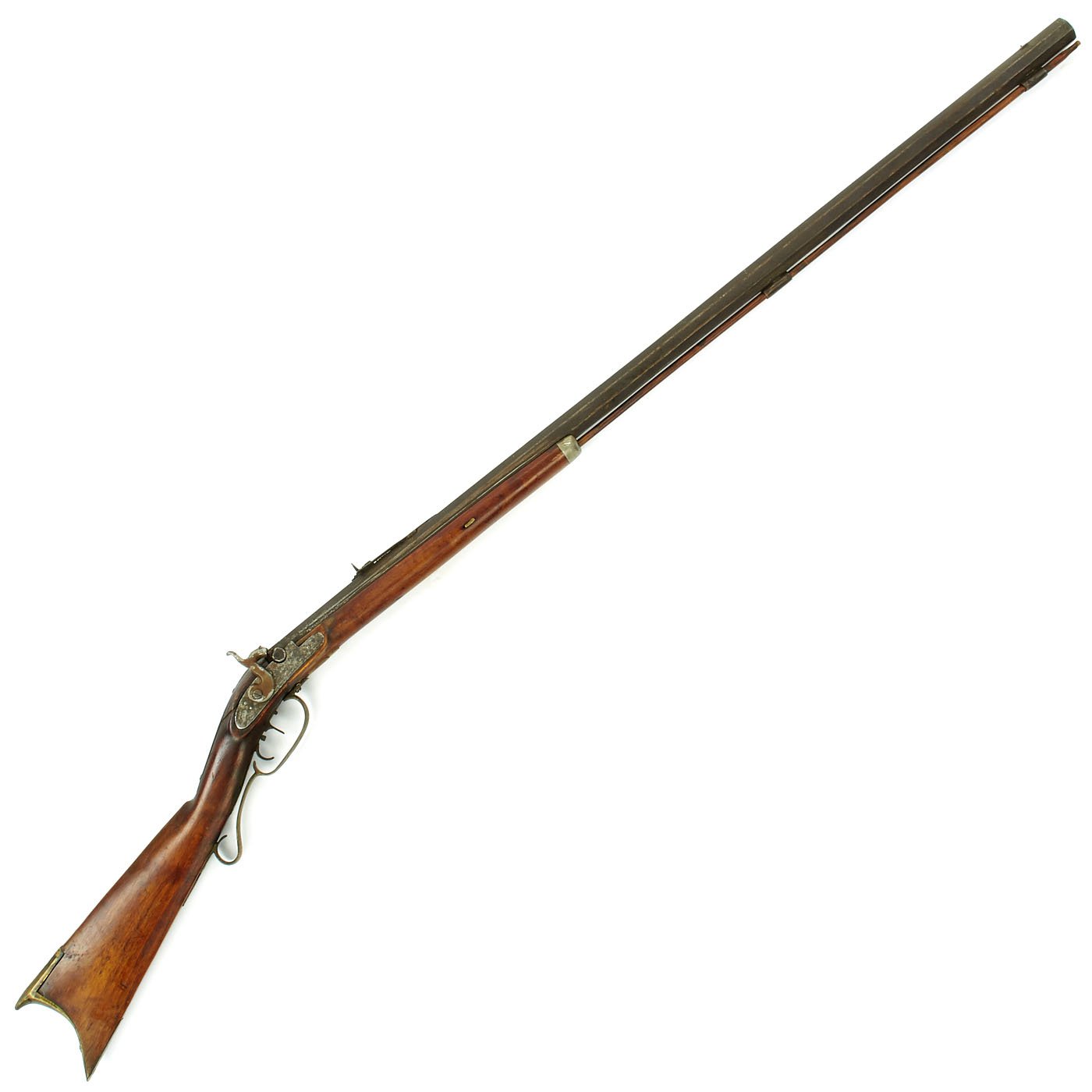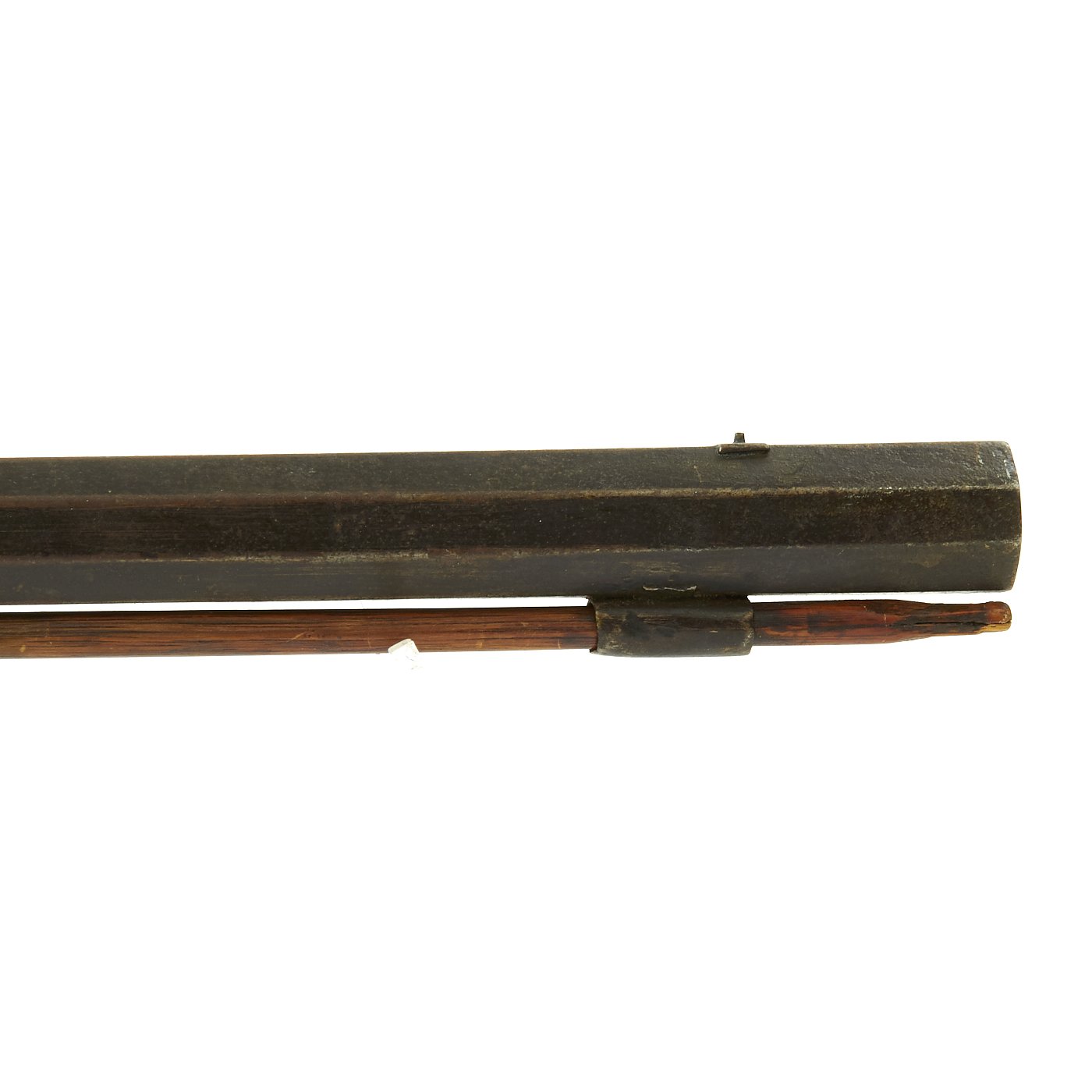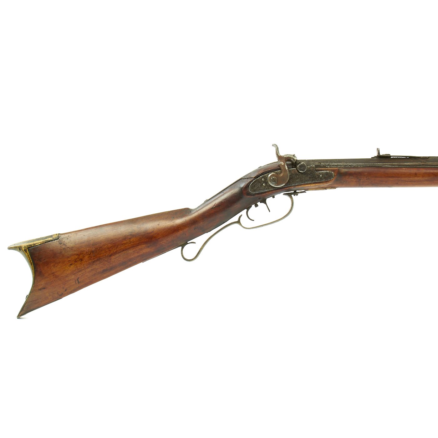 Original Item: Only one available. This just came out of the attic after a hundred years of storage together with a couple of hundred other antique arms. The rifle was assembled in the United States using a British Trade percussion lock made by JOSEPH GOLCHER of KING STREET, DARLASTON in STAFFORDSHIRE, ENGLAND, who worked from 1834 to 1865. We estimate that this octagonal barrel rifle was made about 1840.