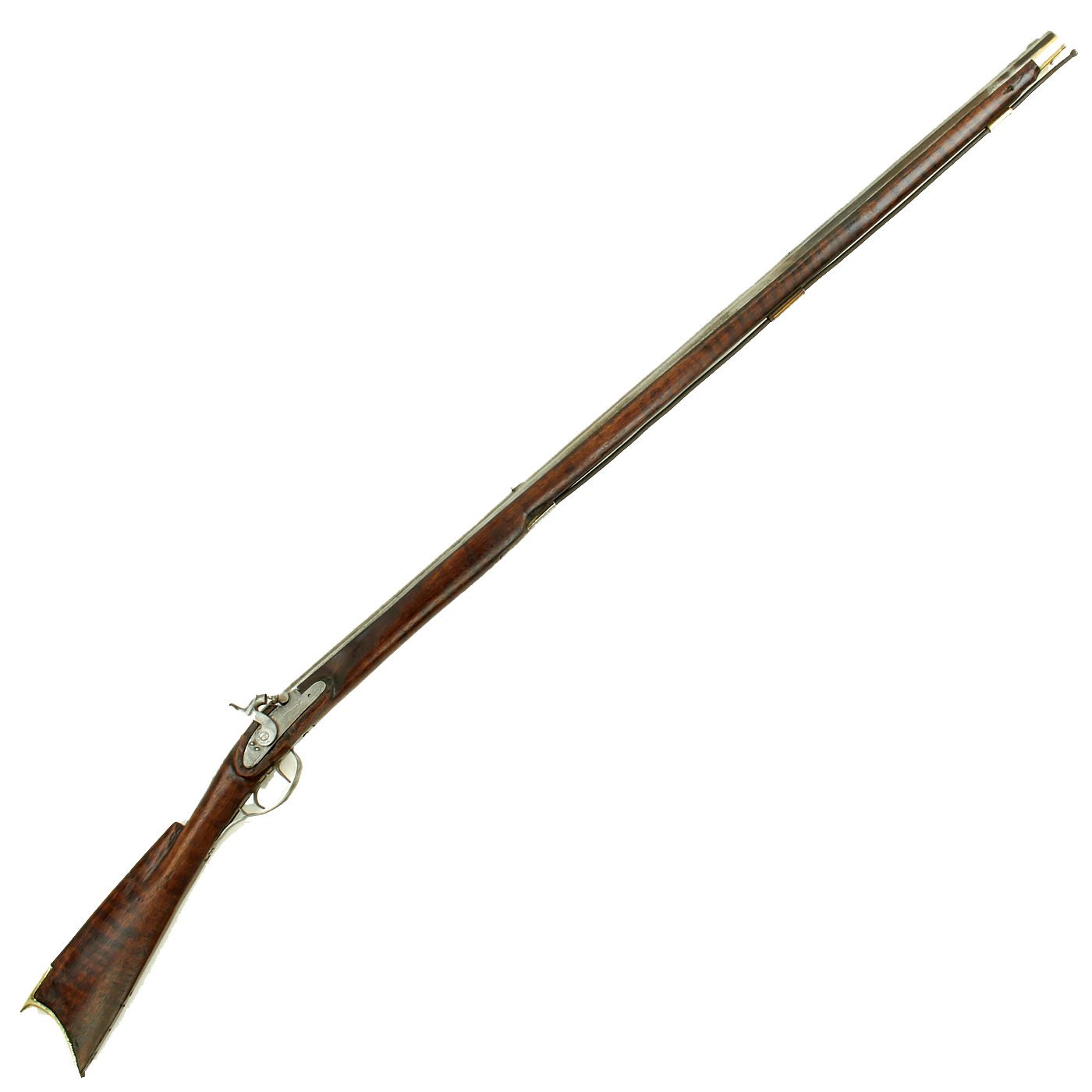 Original Item: Only one available. This came to us recently from an Old U.S. Collection that had been in storage for more than 100 years. Here is an octagonal barreled "Kentucky" style rifle, which more correctly is known as a Pennsylvania Rifle. It is in one of the standard calibers we usually see these in, .43", and has a heavy octagonal barrel. The rifle was built in the United States using a percussion lock made marked G. GOULCHER, who worked in Darlaston in Staffordshire from 1830 until 1872, with his son taking over in 1864.