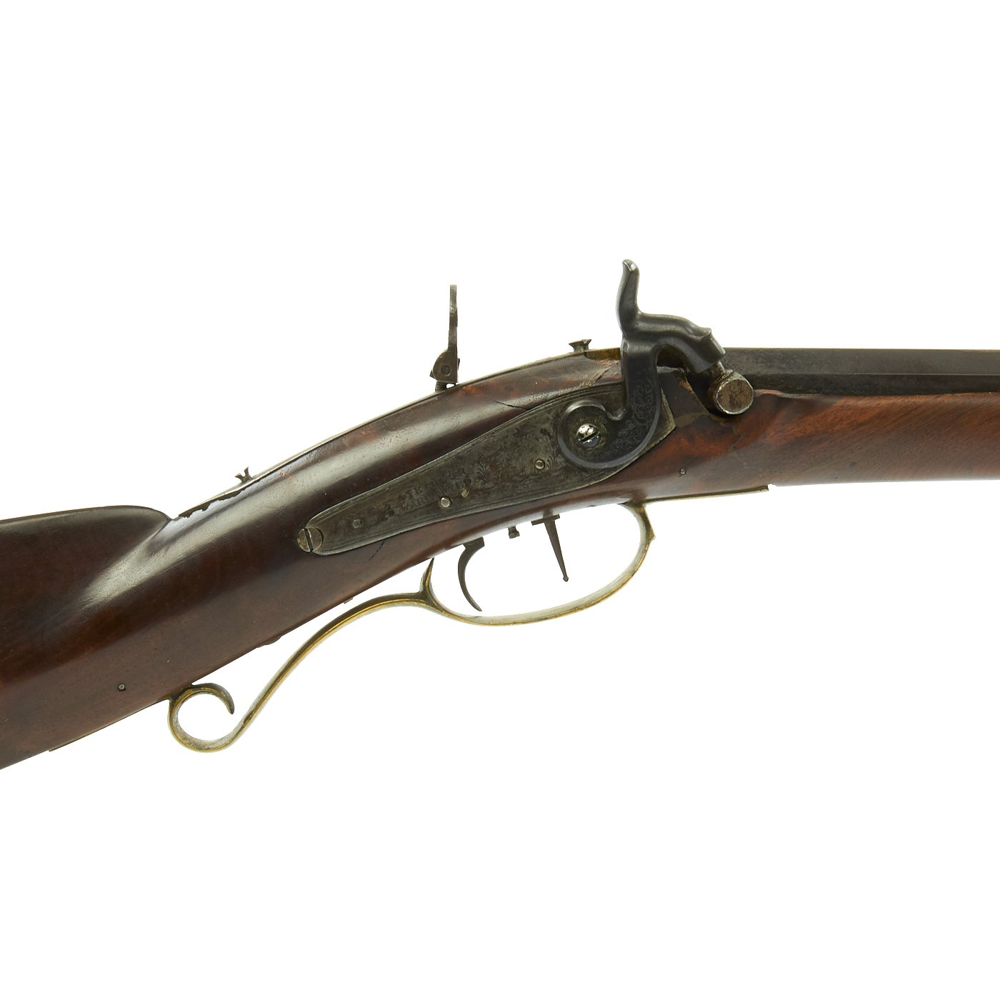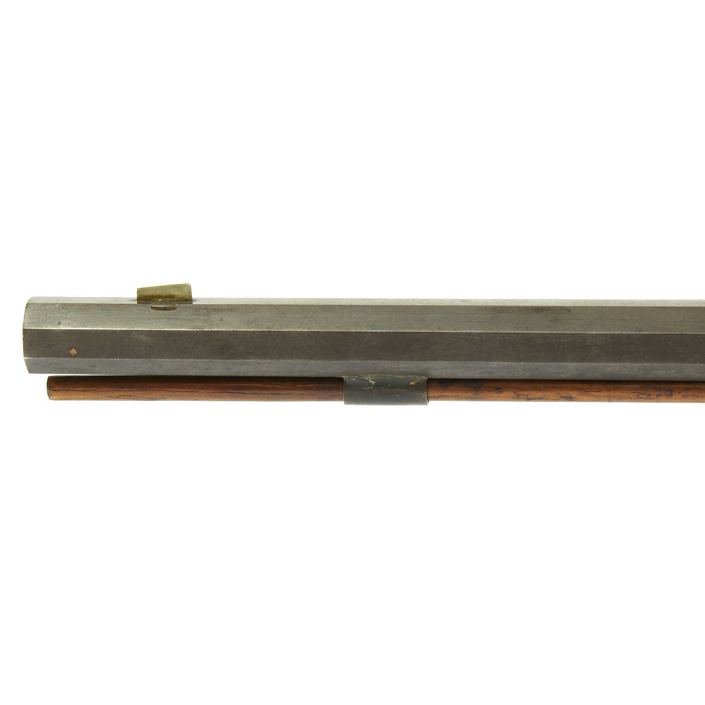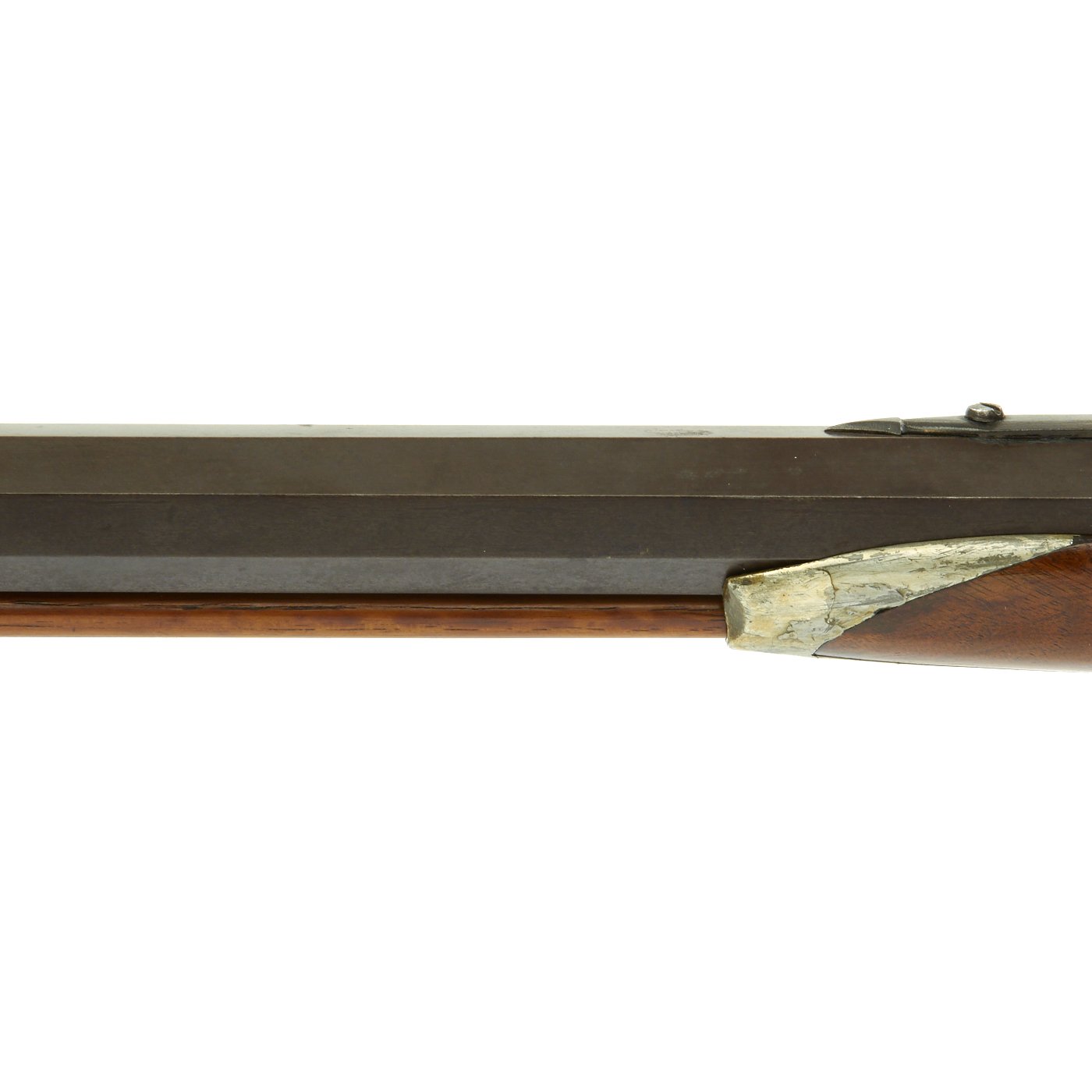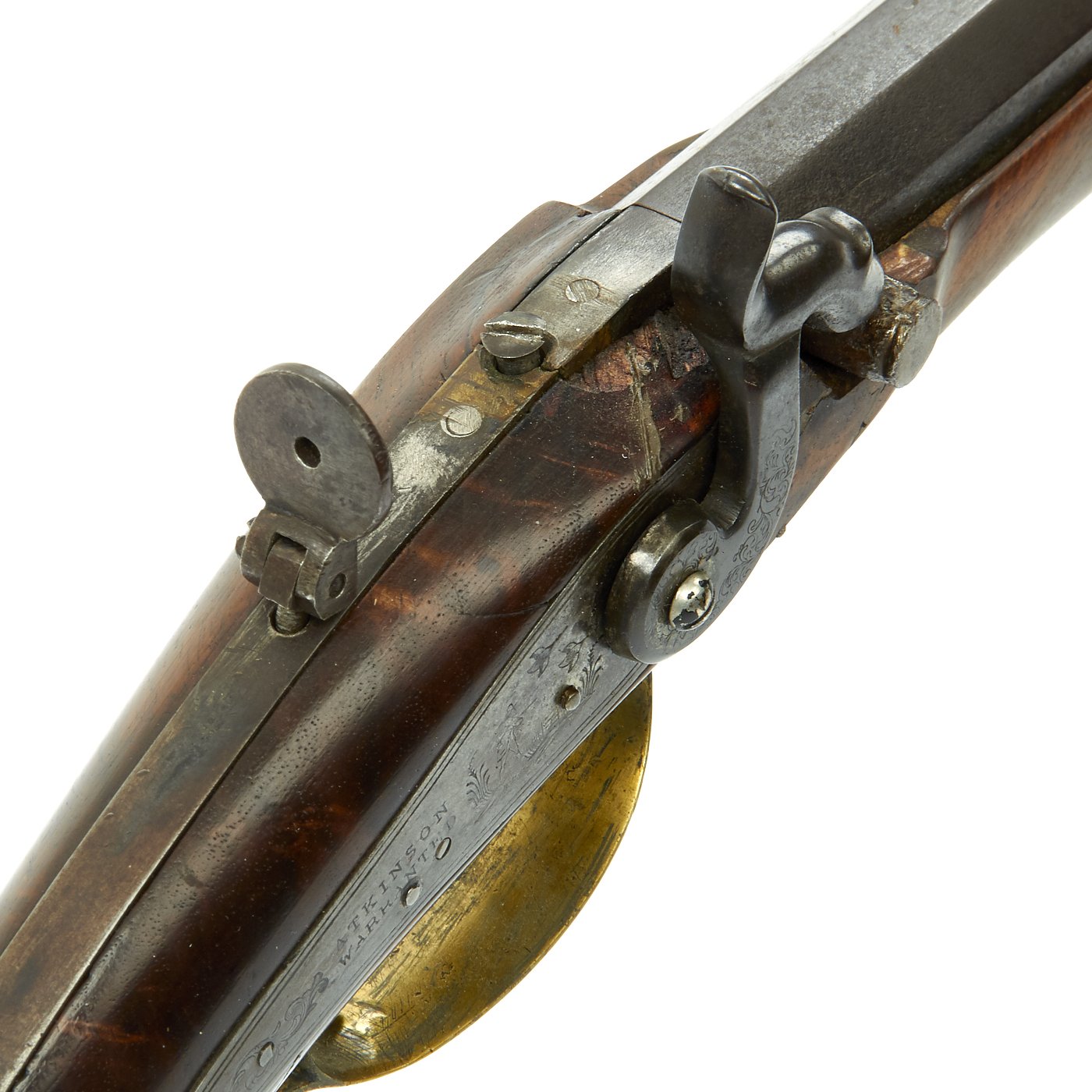 Original Item: Only One Available. This just came out of the attic after a hundred years of storage, together with a couple of hundred other guns. This is an octagonal barreled Rifled "Kentucky" style rifle, which more correctly is known as a Pennsylvania Rifle. This example is actually made using a BRITISH TRADE back-action percussion lock mechanism marked ATKINSON / WARRANTED on the lock plate. This lock was made by Joseph Atkinson of Lancaster, Lancashire, England who worked at 145 St. Leonard's Gate between 1840 and 1869. This Imported Trade Percussion lock was then acquired by American Gunsmith very possibly in Pennsylvania around which he hand made this fine Pa. Long Rifle.