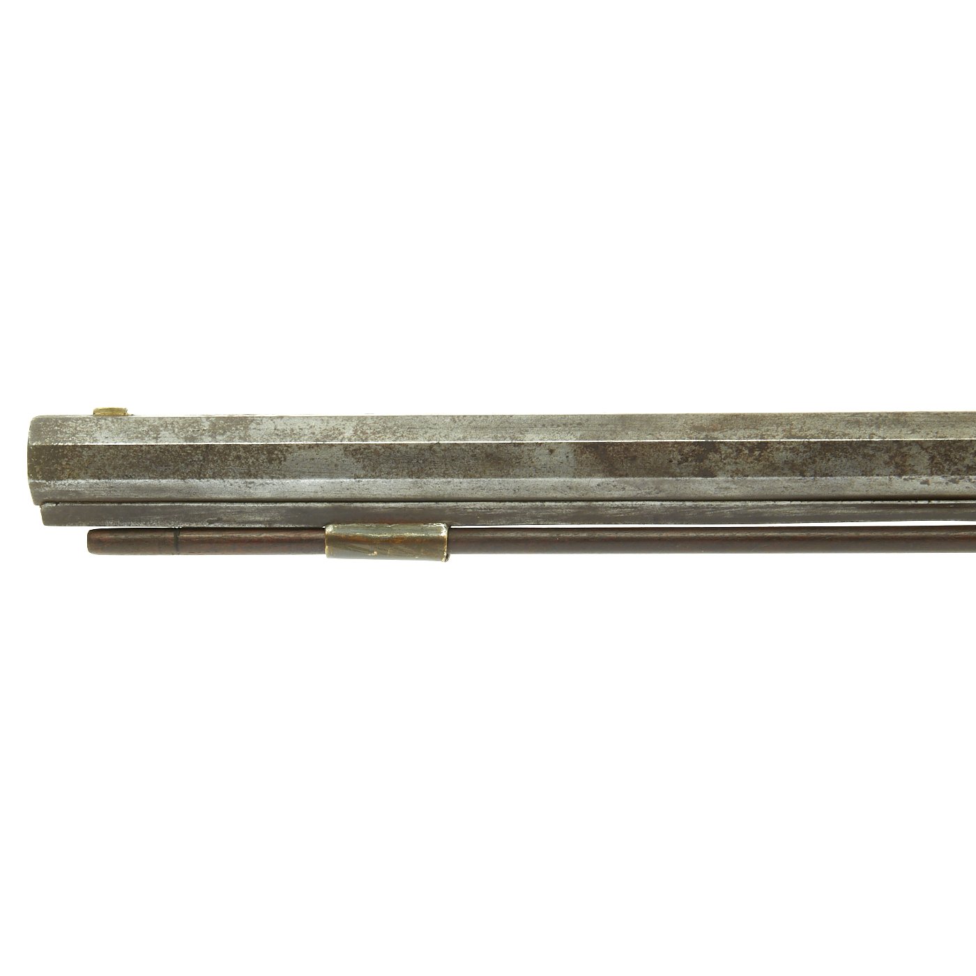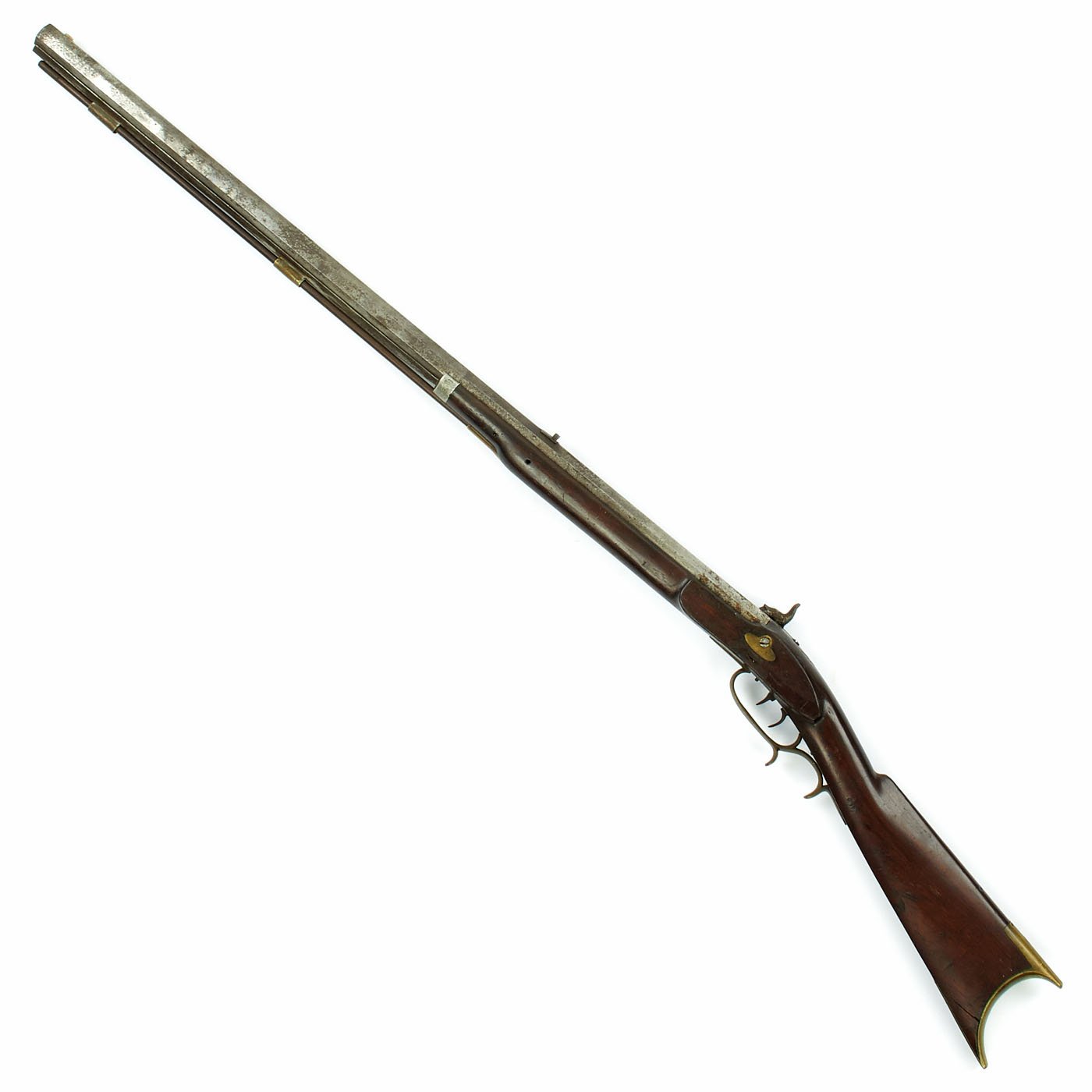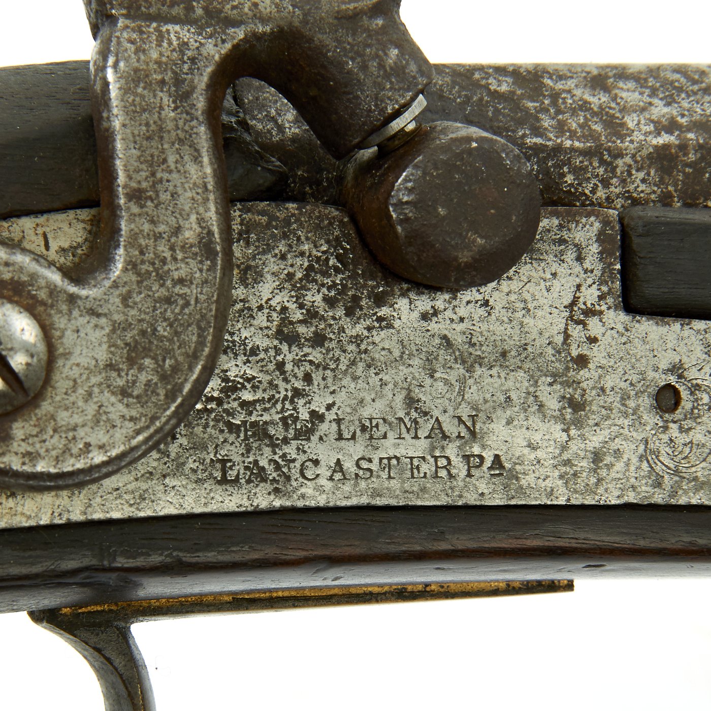Original Item: Only One Available. This just came out of the attic after a hundred years of storage, together with a couple of hundred other guns. Here is an octagonal barreled Rifled "Kentucky" style rifle, which more correctly is known as a Pennsylvania Rifle. It was made by H.E. LEMAN of LANCASTER, PA., as is marked on the lock plate. The Rifled .36 caliber octagonal barrel is 34" long and measures 50" in overall length. The barrel is named W K STRONG on its top flat, perhaps indicating the name of its original Owner. The stock is 1/2 stocked and the rifle is all brass mounted.