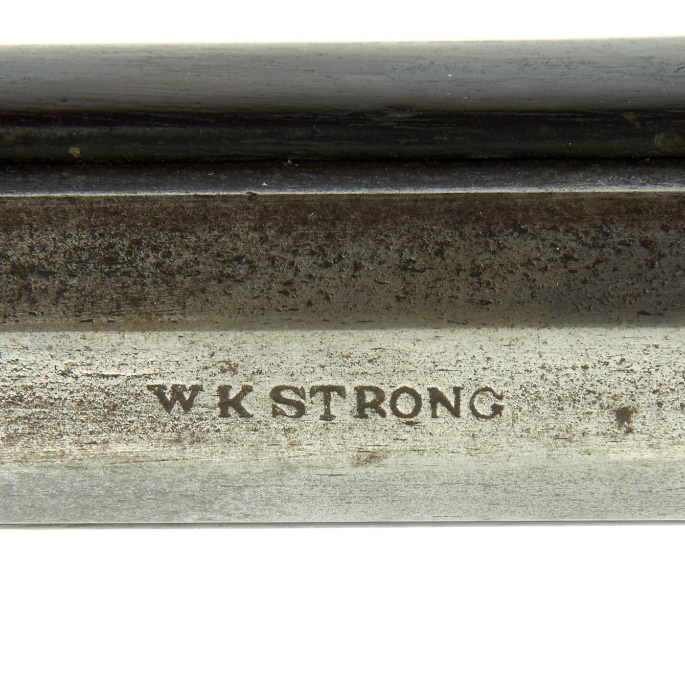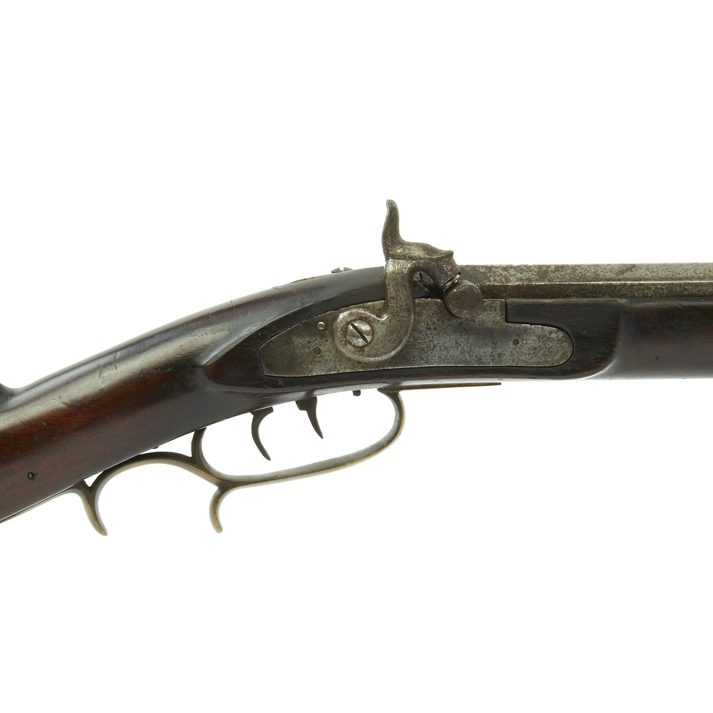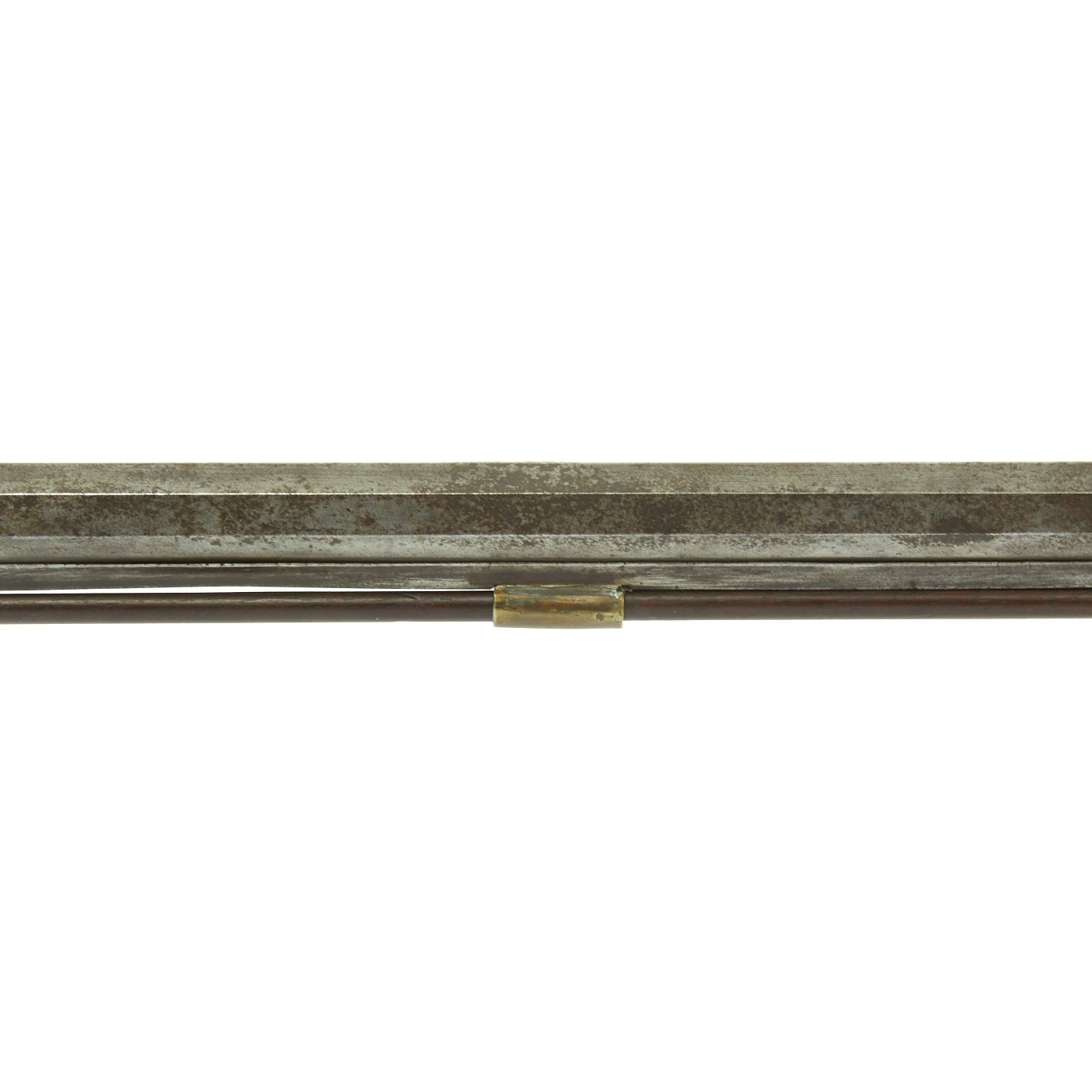 Original Item: Only One Available. This just came out of the attic after a hundred years of storage, together with a couple of hundred other guns. Here is an octagonal barreled Rifled "Kentucky" style rifle, which more correctly is known as a Pennsylvania Rifle. It was made by H.E. LEMAN of LANCASTER, PA., as is marked on the lock plate. The Rifled .36 caliber octagonal barrel is 34" long and measures 50" in overall length. The barrel is named W K STRONG on its top flat, perhaps indicating the name of its original Owner. The stock is 1/2 stocked and the rifle is all brass mounted.