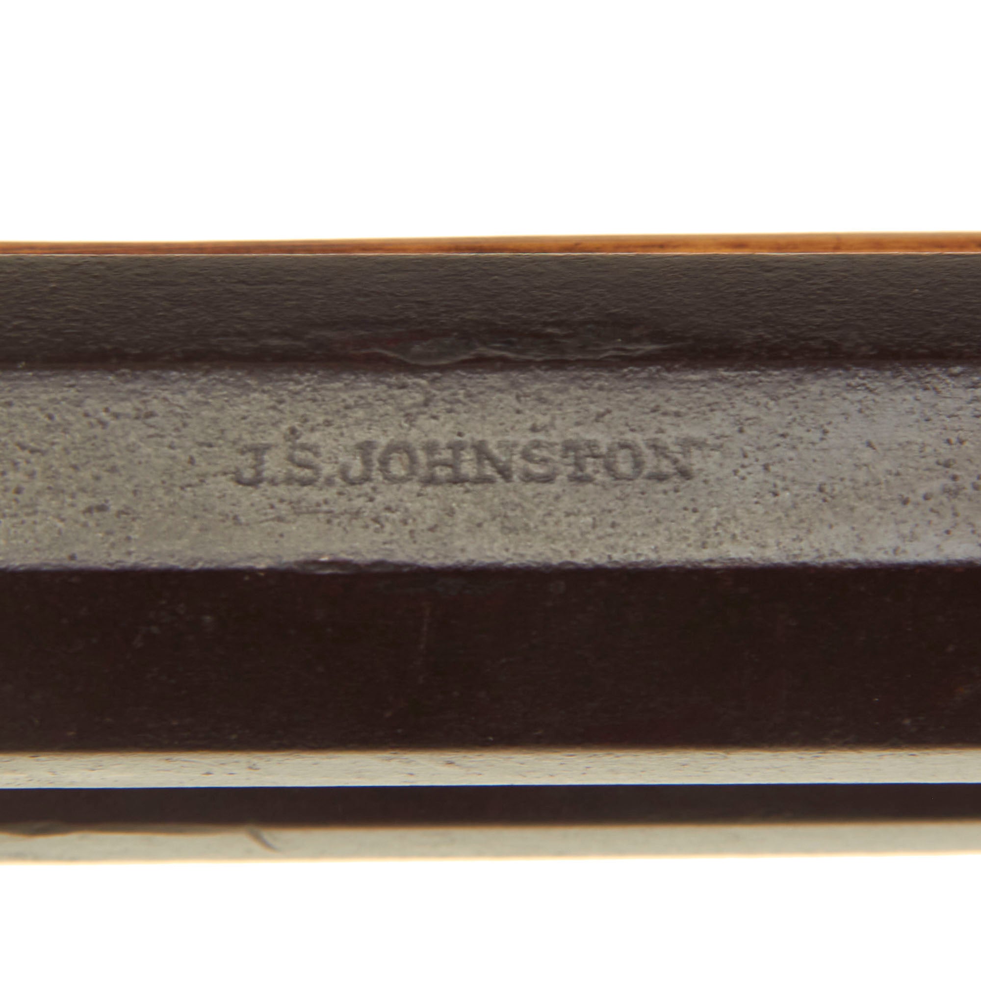 The tops of both barrels are marked J.S. JOHNSTON, who al.so signed guns as "J.S. Johnson". This is a known maker of Pennsylvania percussion rifles, and we have seen other swivel breech rifles by this maker. They are listed as working in "McConnelsville, Huntington Co., Pa", which we believe is actually McConnellstown in Huntingdon County, Pennsylvania. This maker is also listed as having had gunmaker David B. Buckwalter (born 1850) as an apprentice.