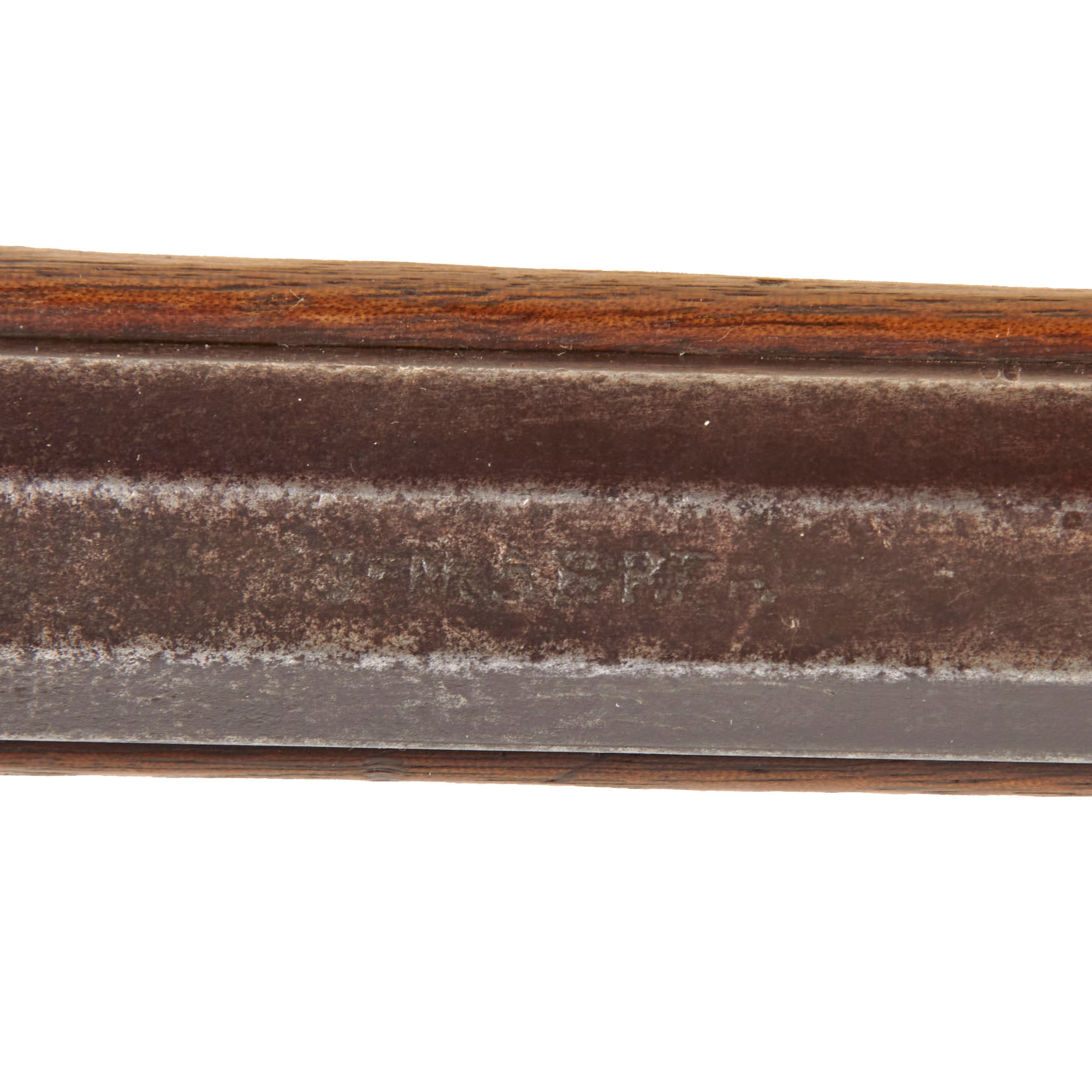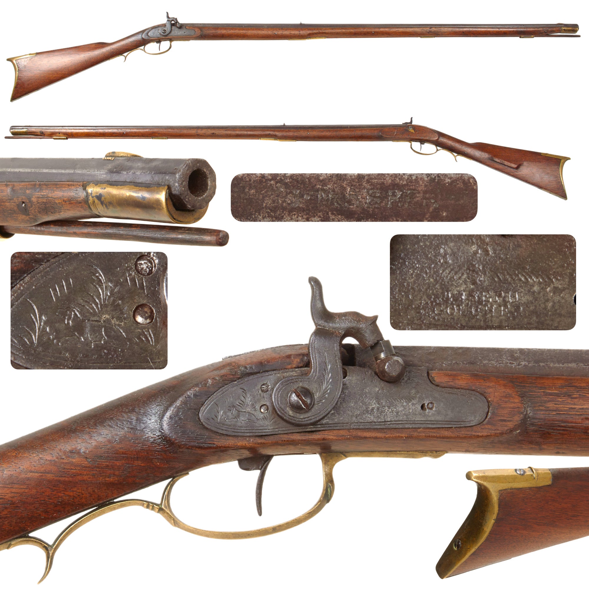 Original Item: Only One Available. Just purchased at a recent military auction! Here is an octagonal barreled very nice "Pennsylvania" style rifle, often referred to as a "Kentucky" Rifle. The design developed in Pennsylvania, and then spread down the Ohio River Valley to Kentucky, where it was very popular. It is in 0.39" caliber, one of the common sizes we see these in, and features a 40" octagonal barrel with 6 groove rifling, which has a VERY slow rate of twist. The rifle measures 55 1/2" in overall length, and the style and appointments are very typical of the rifles made in the Western Pennsylvania/Eastern Ohio River areas.
