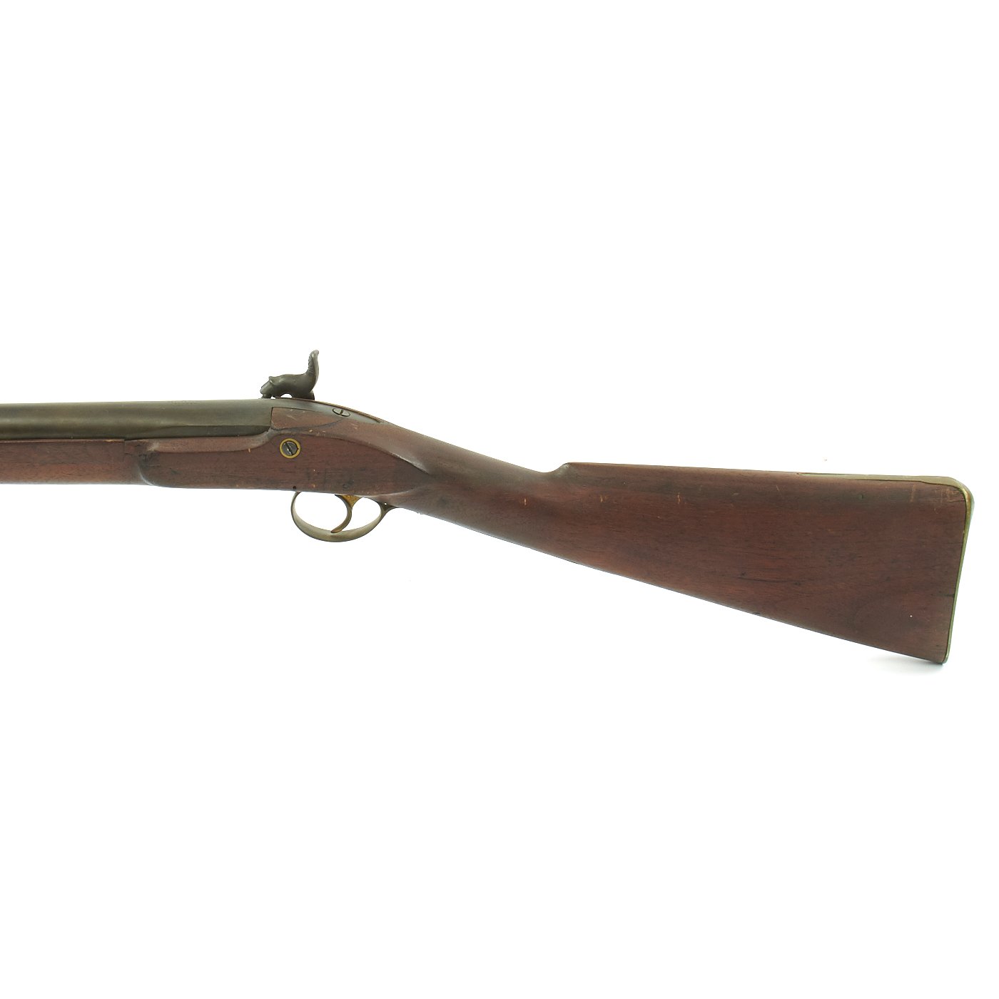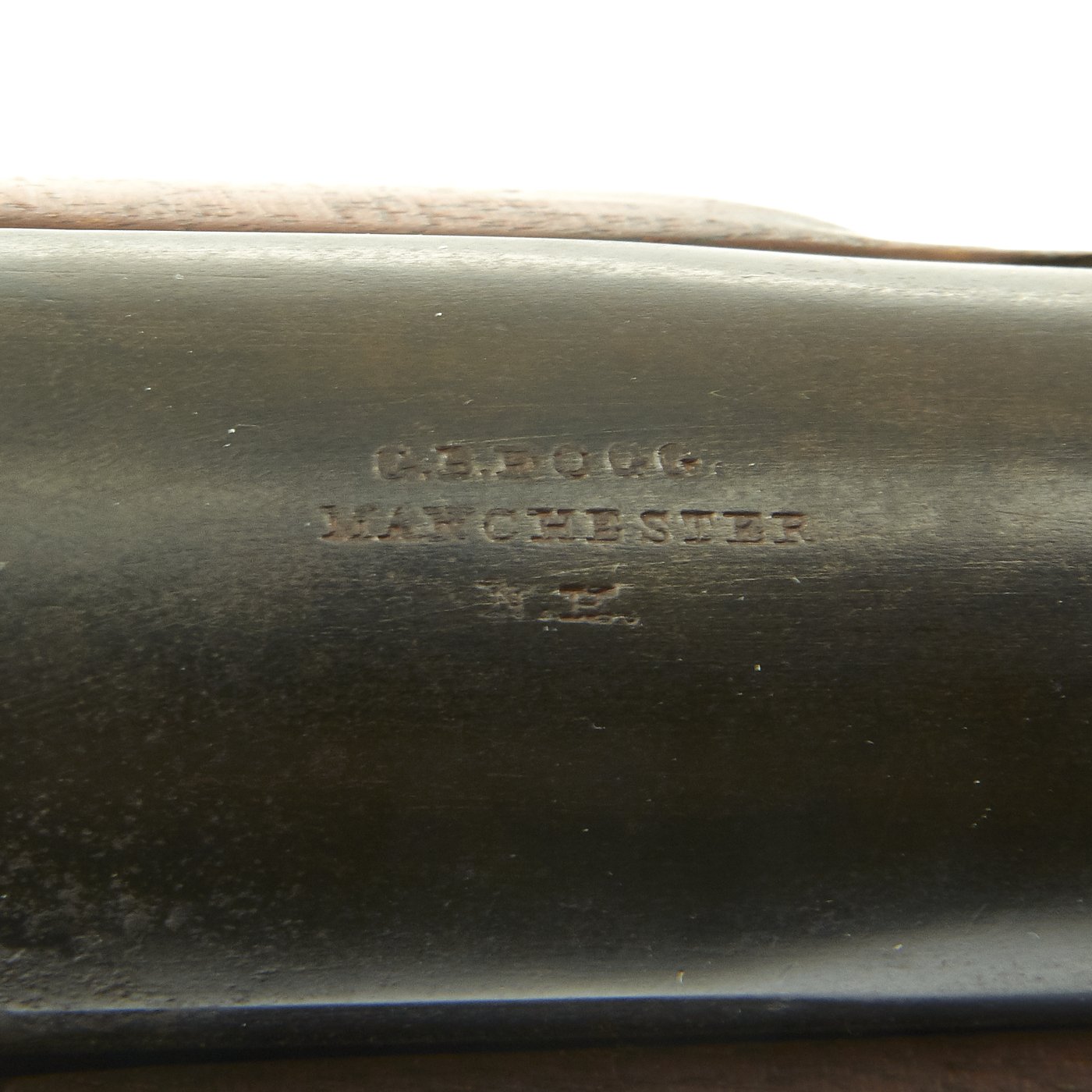 Original Item: Only One Available. I think there is a good chance this gun was hardly used although there is a small wood repair to the left side of the stock. I rather think this was put away early on and remained in storage for over 100 years. The lock is a percussion trade lock by JOSEPH GOLCHER of KING STREET, DARLASTON in STAFFORDSHIRE, ENGLAND, who worked from 1830 to 1865. It was mounted by a Country Gunsmith, very possibly the Gunsmith whose name appears on the barrel:-