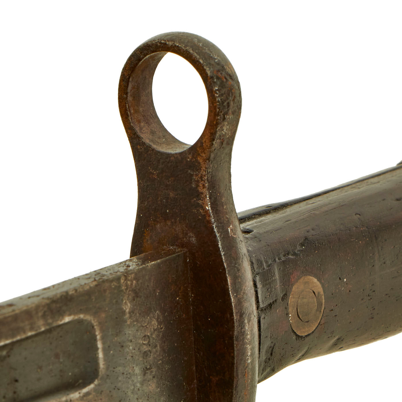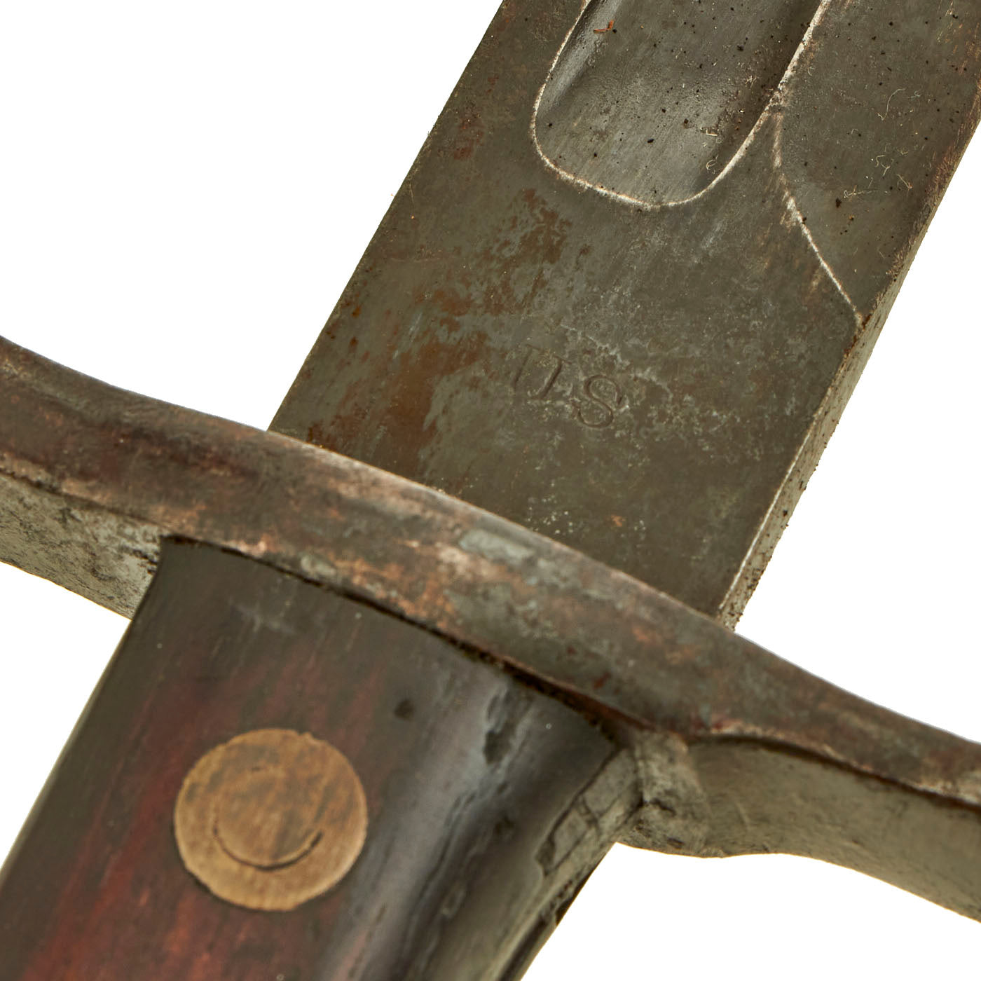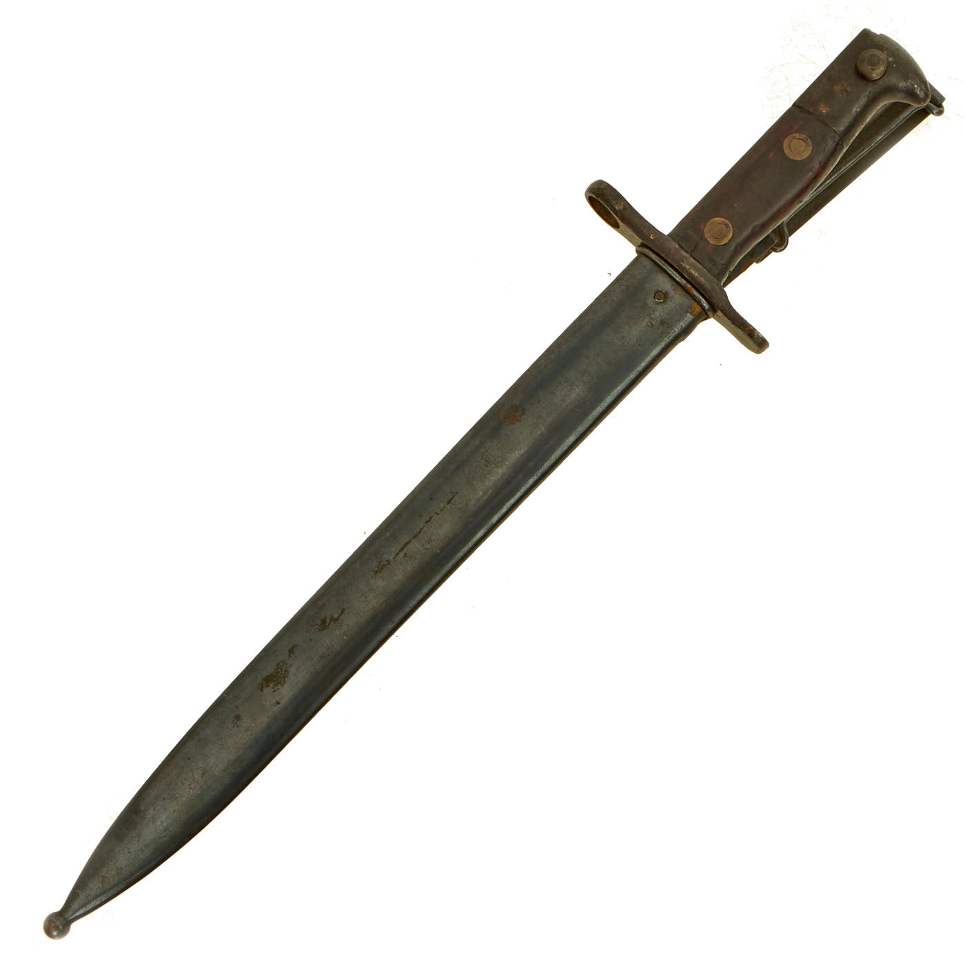 Original Item: Only One Available. These are something that we have only ever had very few of. It is a Pre WWI, Philippine-American War dated U.S. M1892 bayonet, made for the Springfield Model 1892–99 Krag-Jørgensen rifles, some of which were still in use during WWI. It is fitted with its original all steel scabbard with a swivel belt loop on the back. These are very rarely seen on today's market, especially with the scabbard included and fully intact.