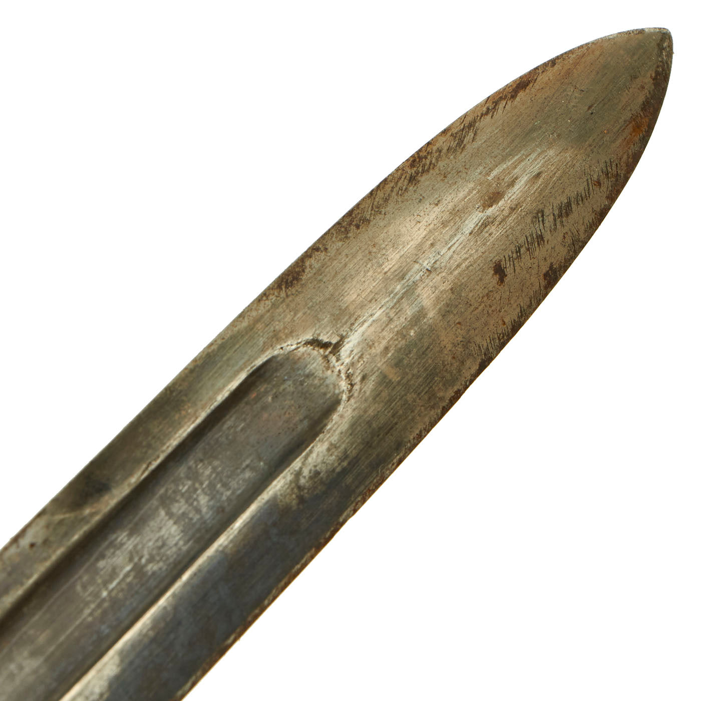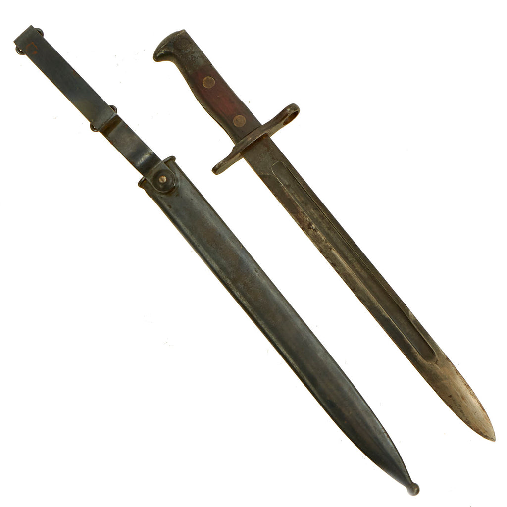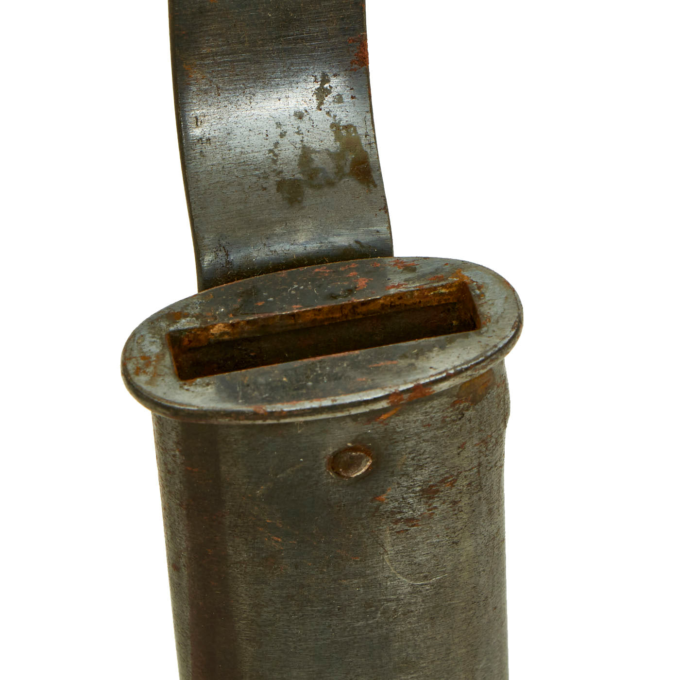 Original Item: Only One Available. These are something that we have only ever had very few of. It is a Pre WWI, Philippine-American War dated U.S. M1892 bayonet, made for the Springfield Model 1892–99 Krag-Jørgensen rifles, some of which were still in use during WWI. It is fitted with its original all steel scabbard with a swivel belt loop on the back. These are very rarely seen on today's market, especially with the scabbard included and fully intact.