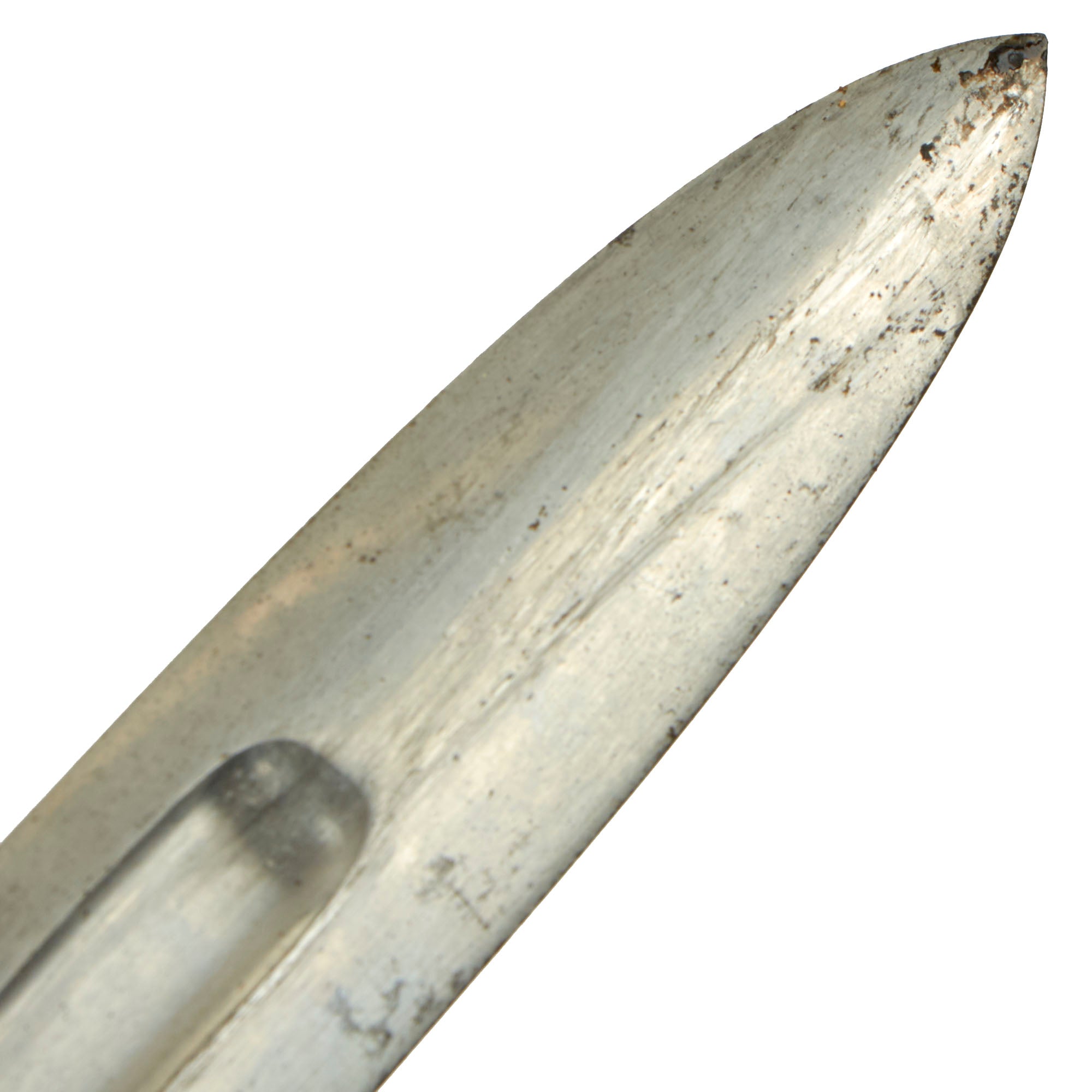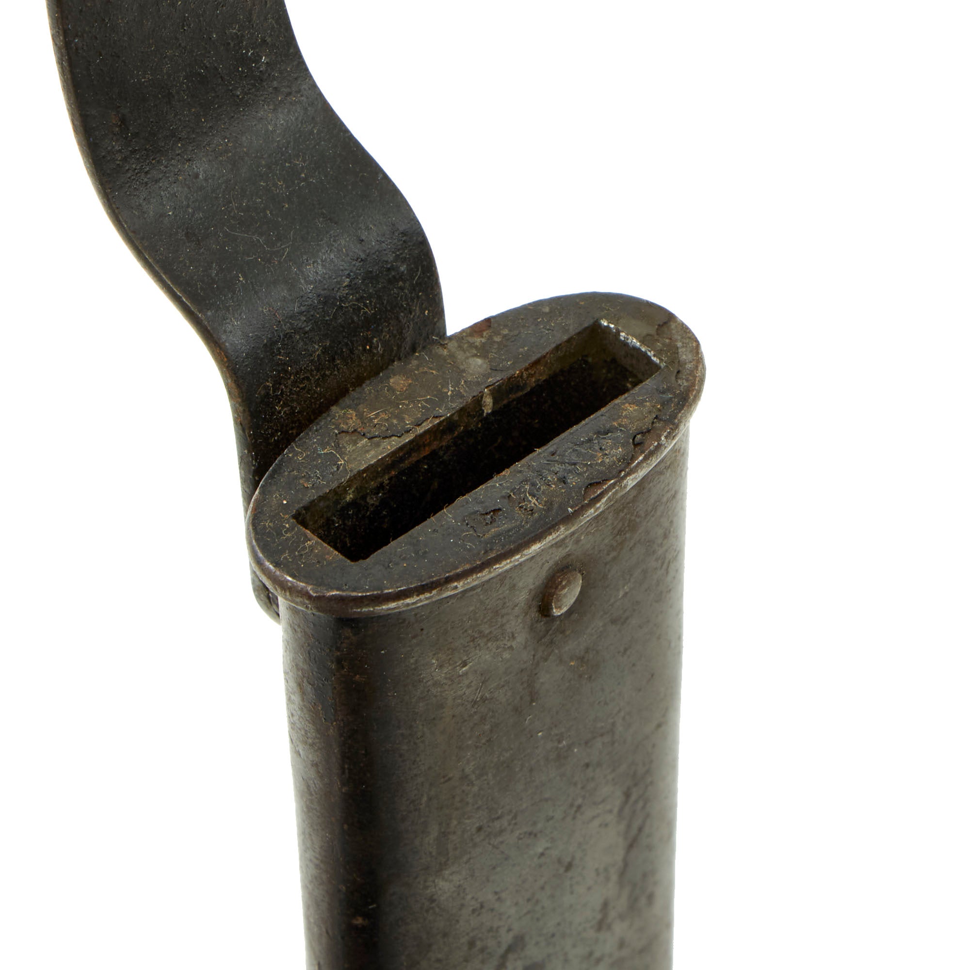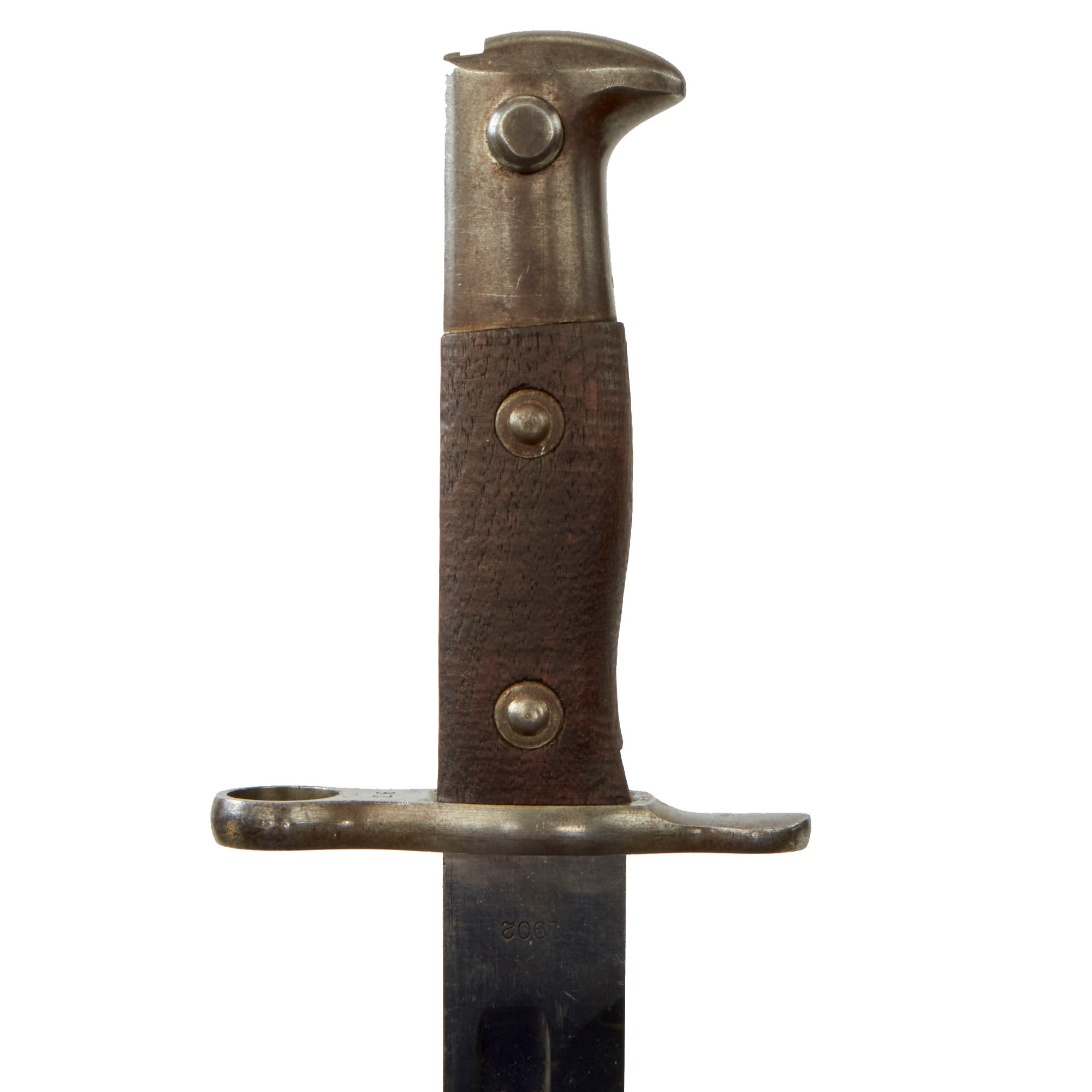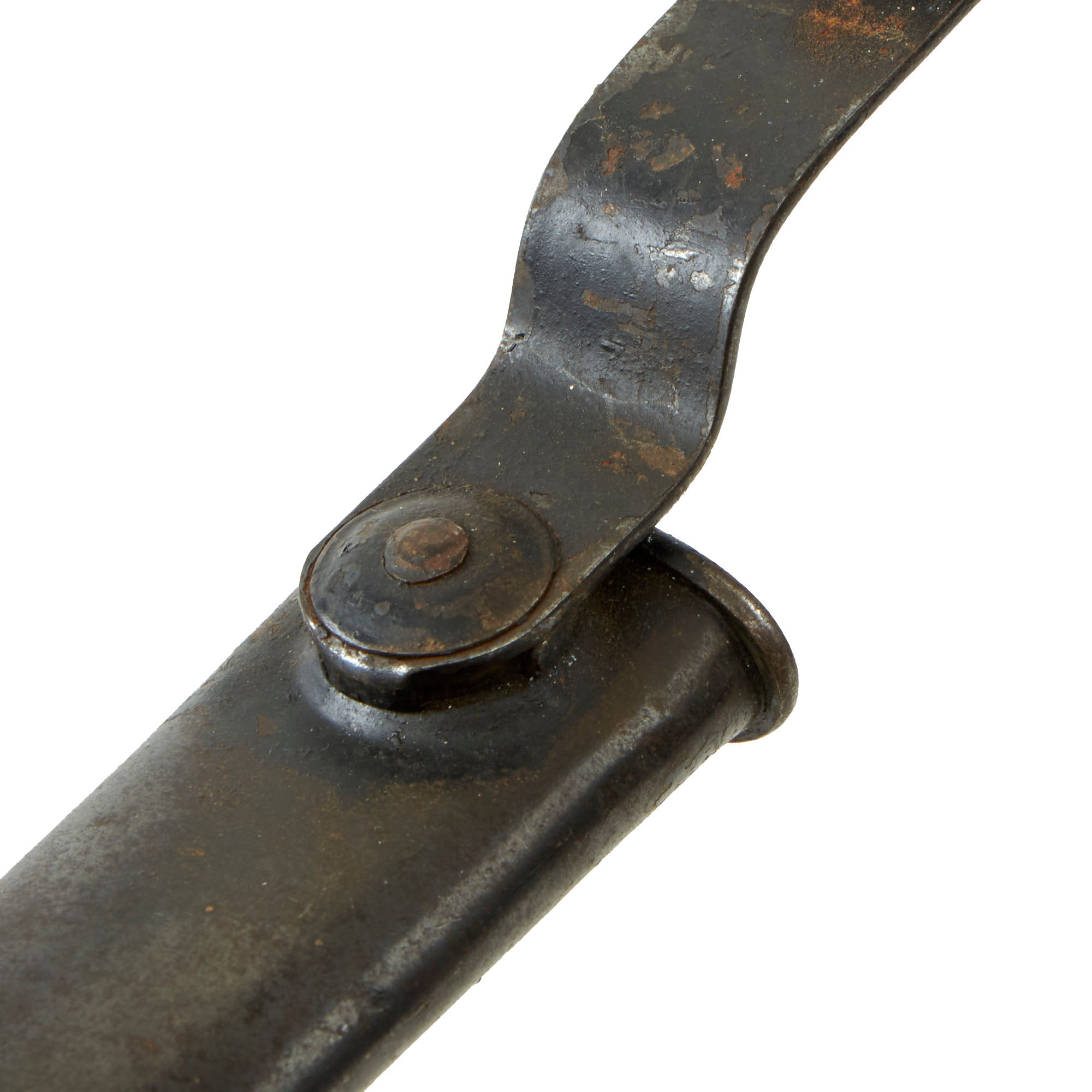 Original Item: Only One Available. These are something that we have only ever had very few of. It is a Pre WWI, Philippine-American War (1899-1902) dated U.S. M1892 bayonet, made for the Springfield Model 1892–99 Krag-Jørgensen rifles, some of which were still in use during WWI. It is fitted with its original all steel scabbard with a swivel belt loop on the back. These are very rarely seen on today's market, especially with the scabbard included and fully intact.