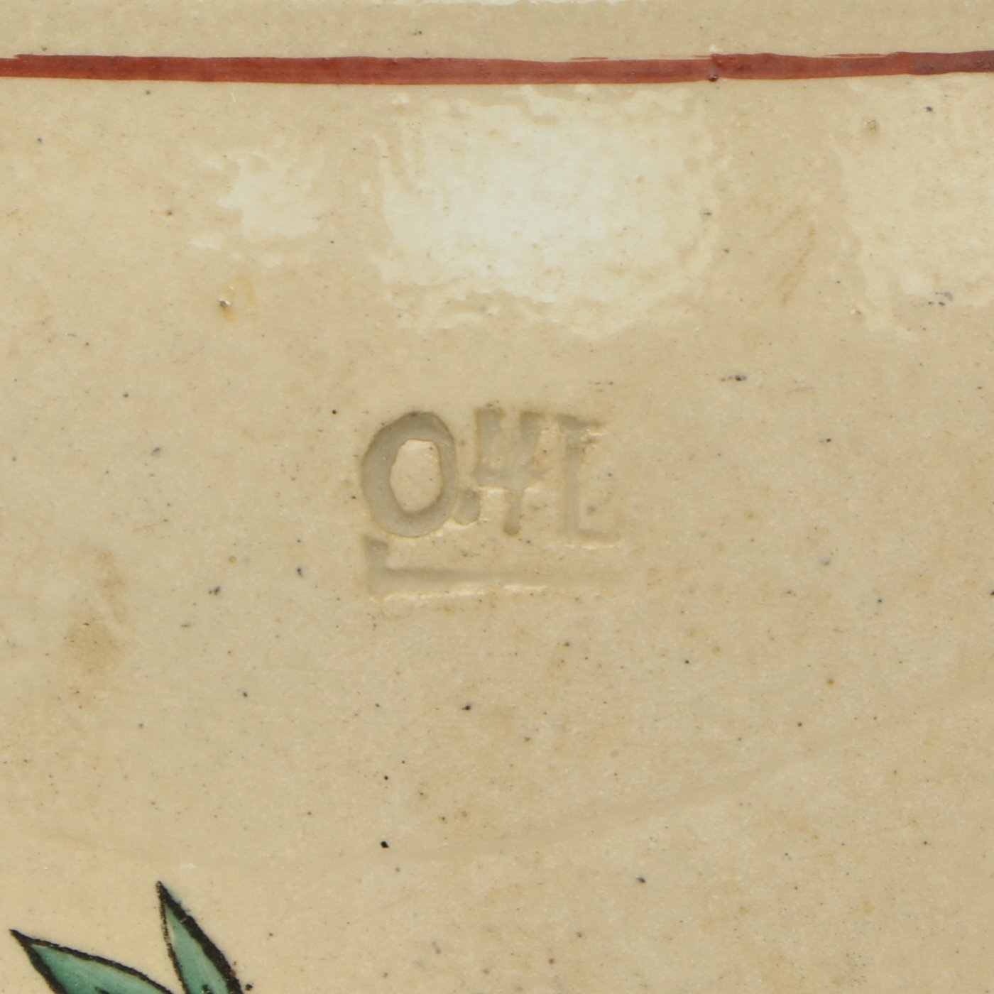 Condition of the stein is excellent, with light wear commensurate with the age. The painted on designs, which look to be glazed on, are very well retained. The stein is marked with 0.4L capacity, and is approximately 3 1/2"W x 4 3/4"H, not counting the handle.