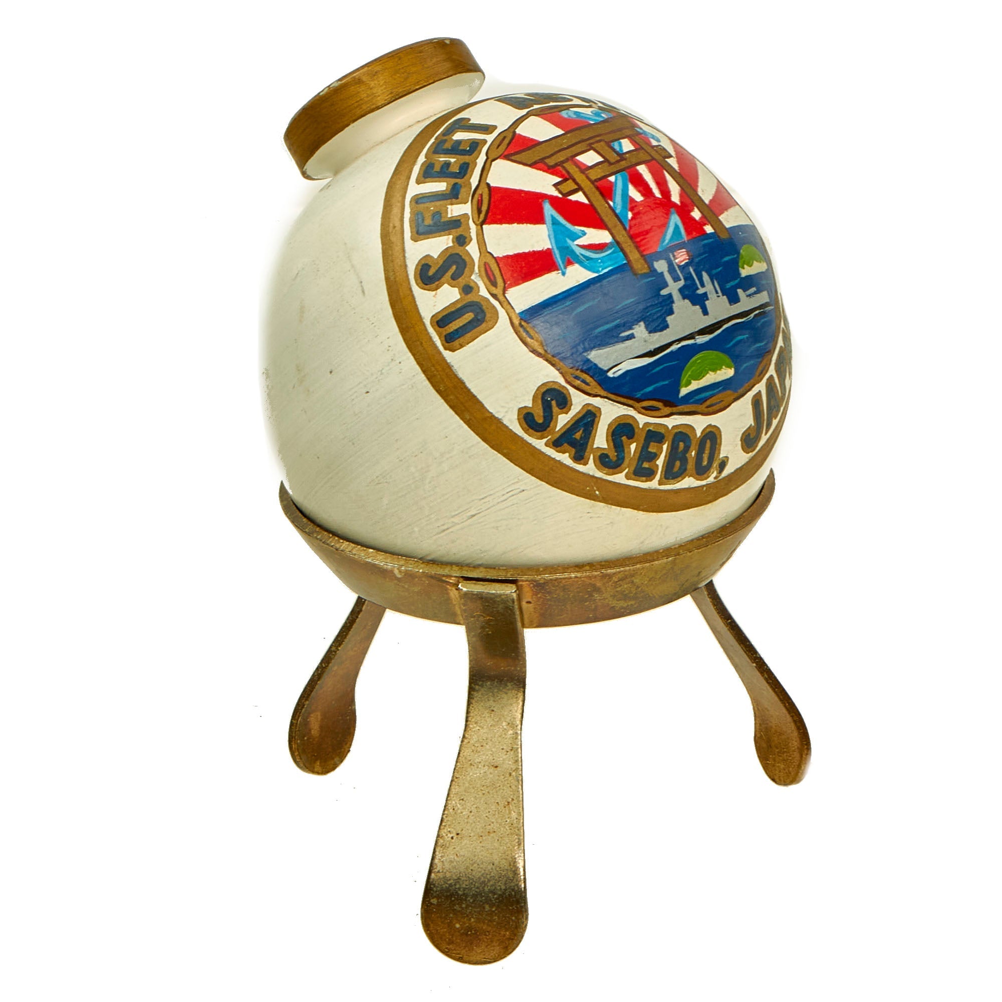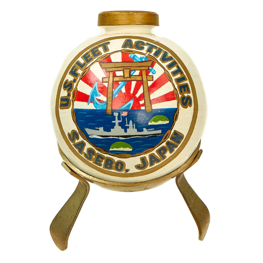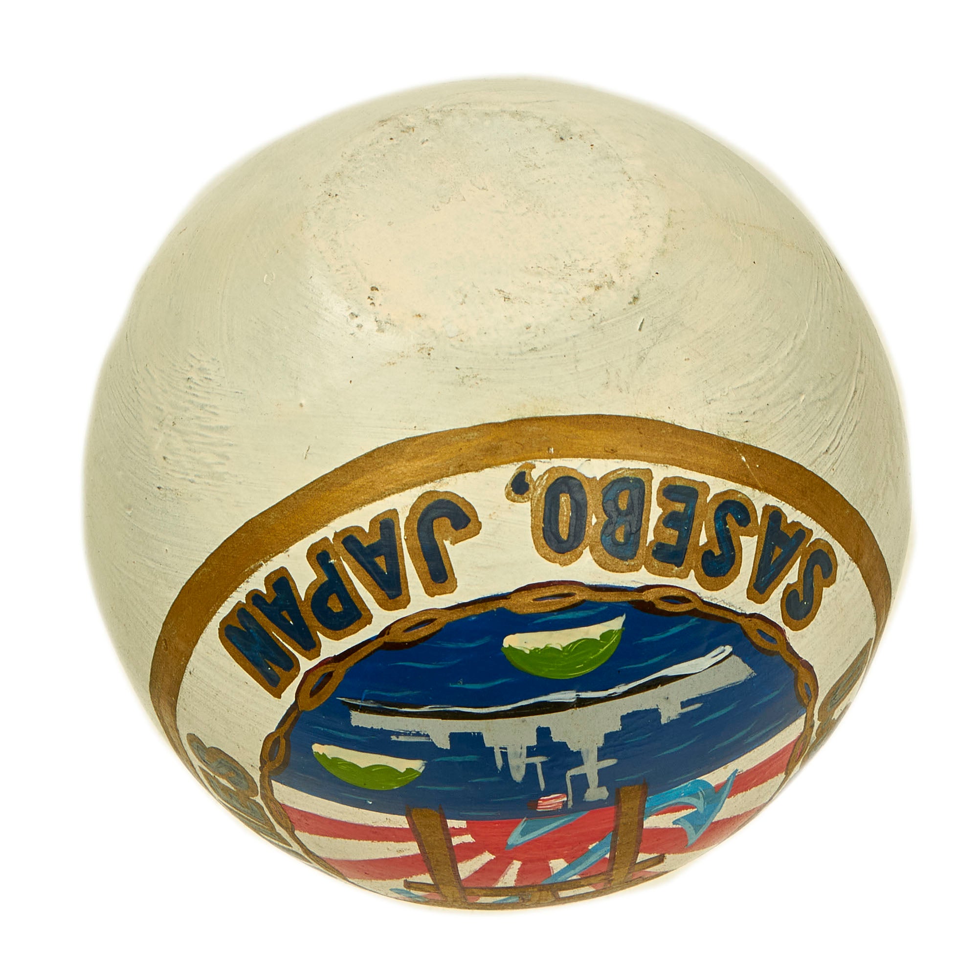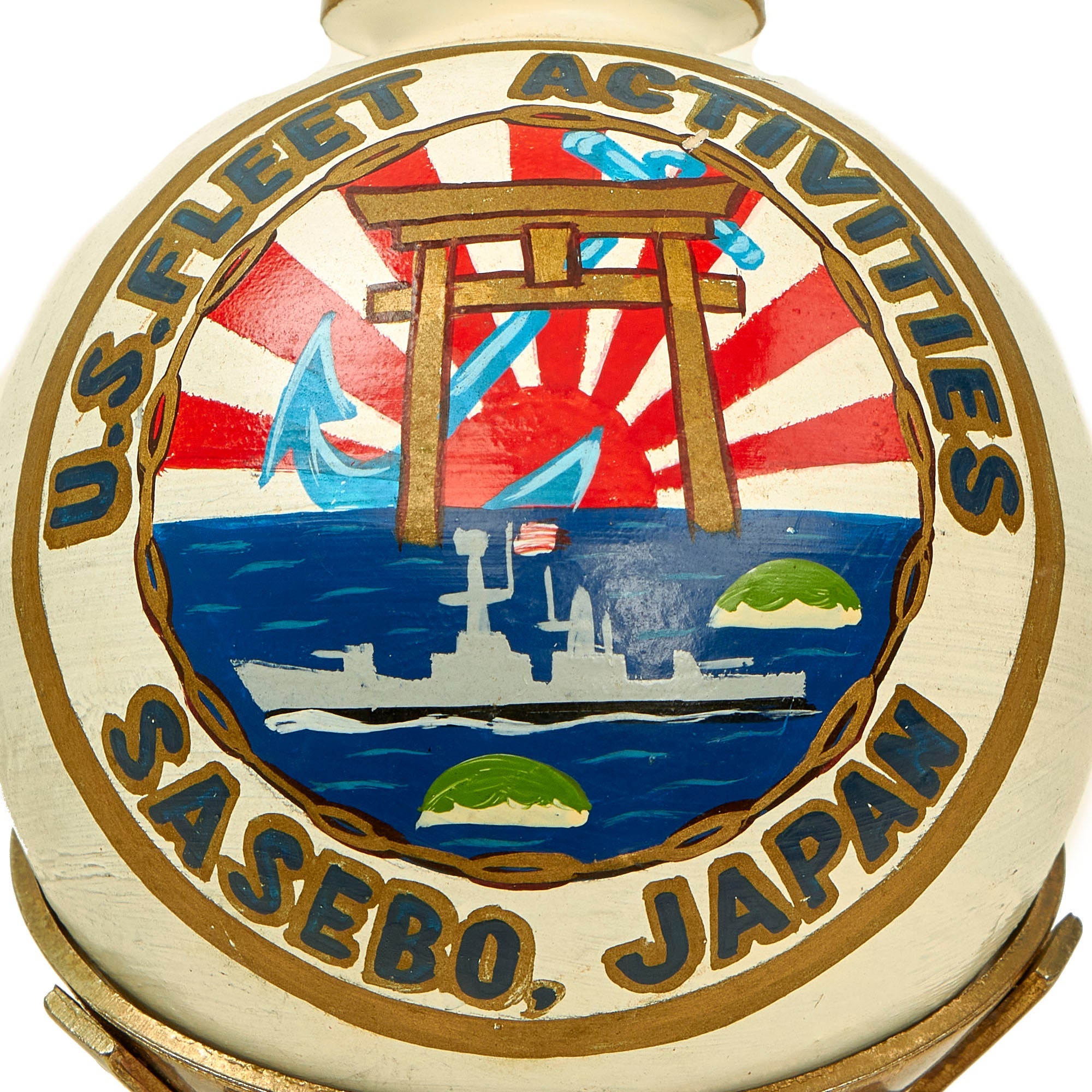 Original Item: Only One Available. This is a lovely example of a WWII Japanese Type 4 Ceramic Grenade, painted for use as a souvenir/memento from United States Fleet Activities Sasebo. U.S. Fleet Activities Sasebo is a United States Navy base, in Sasebo, Japan, on the island of Kyūshū. It provides facilities for the logistic support of forward-deployed units and visiting operating forces of the United States Pacific Fleet and designated tenant activities.