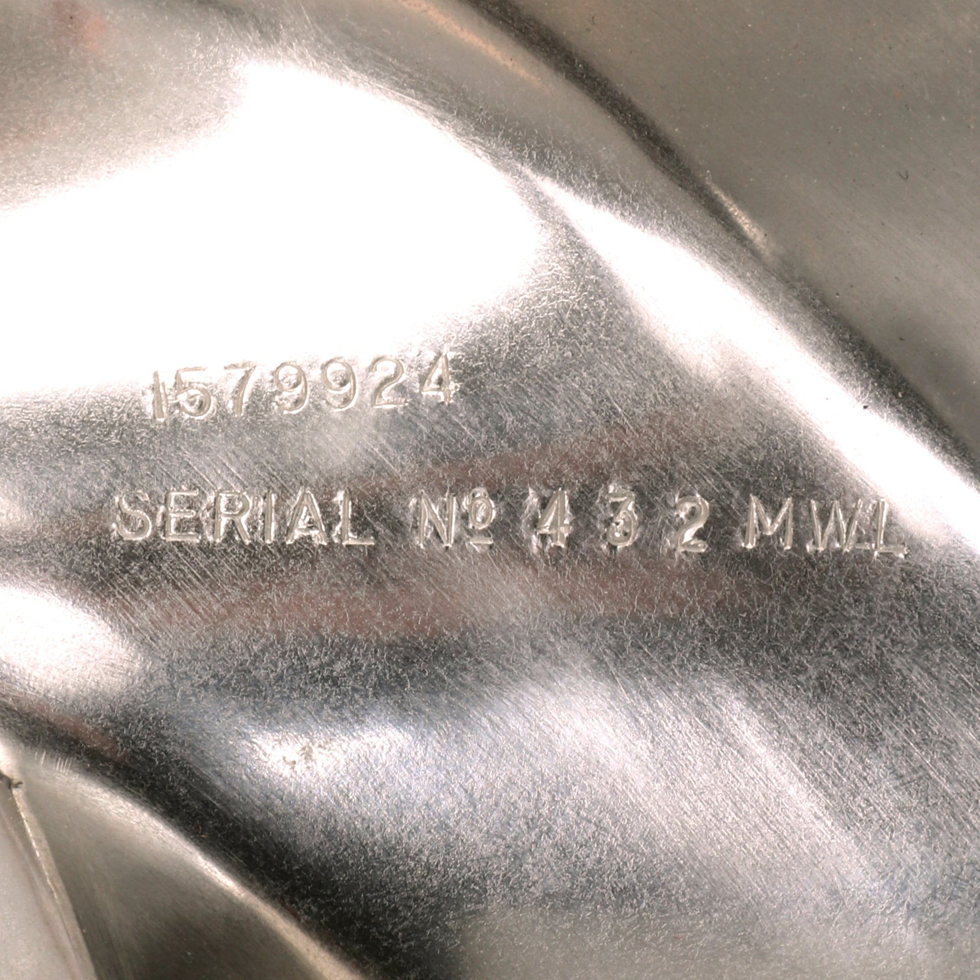 The propeller measures roughly 13 x 13 x 4” and is in great condition. It is made from non-magnetic metal which we assume is some type of aluminum alloy, and it retains the original markings: