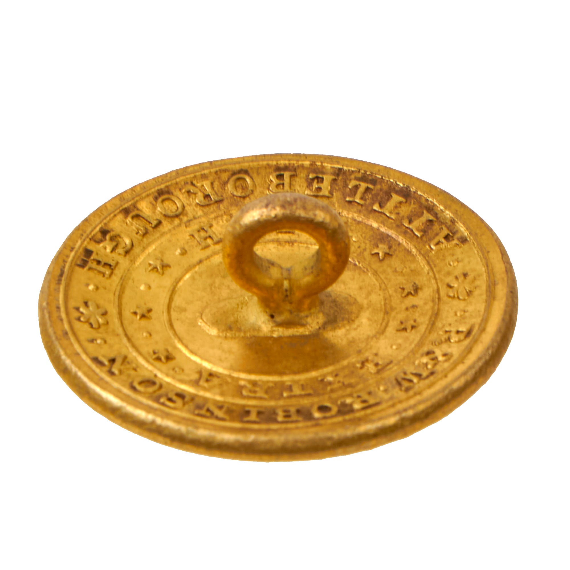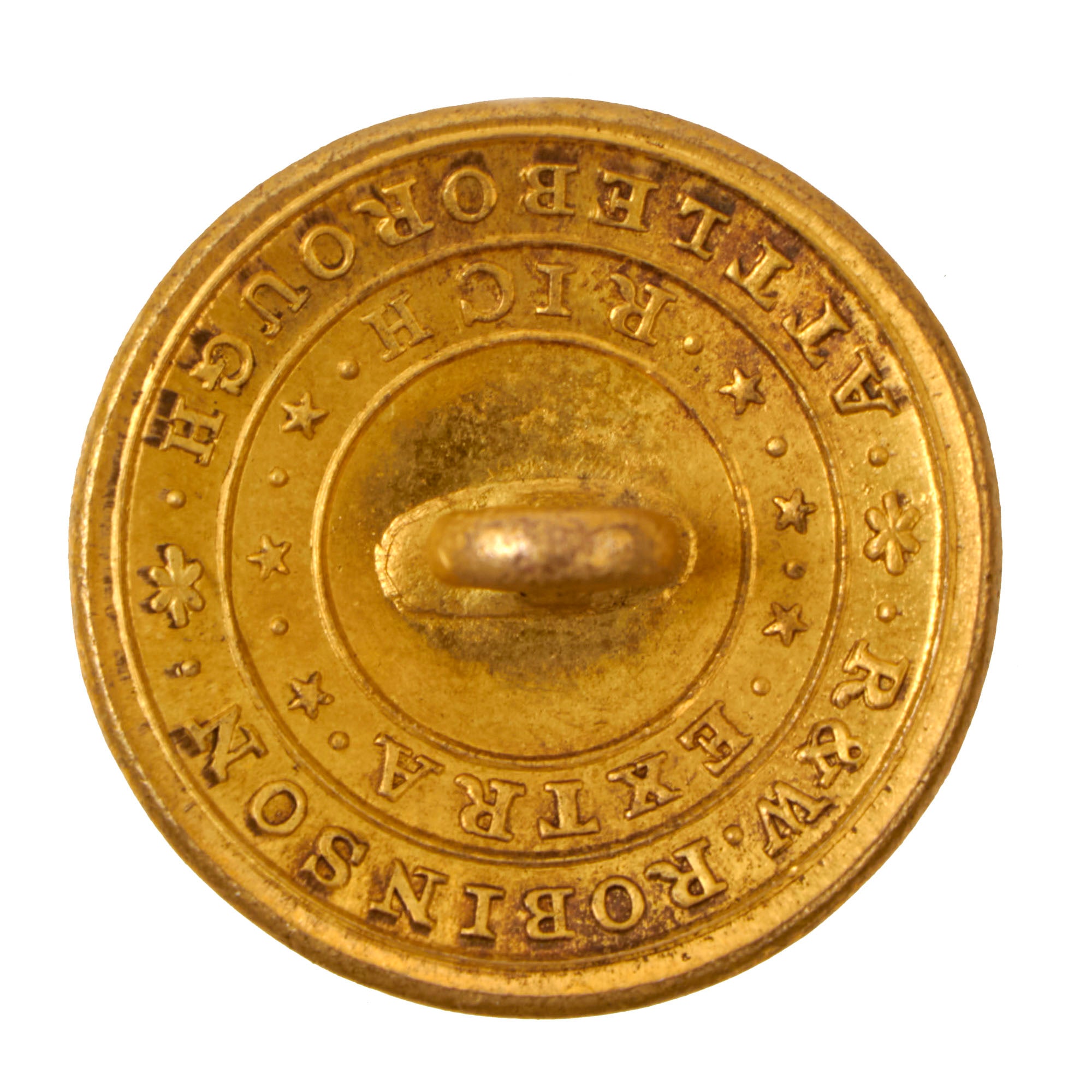The button is in great shape and was stamped a bit off of the center, so the letters of PROVIDENCE are partially off of the button. The back of the button is well-stamped with R.&W. ROBINSON / EXTRA / RICH / ATTLEBOROUGH.
