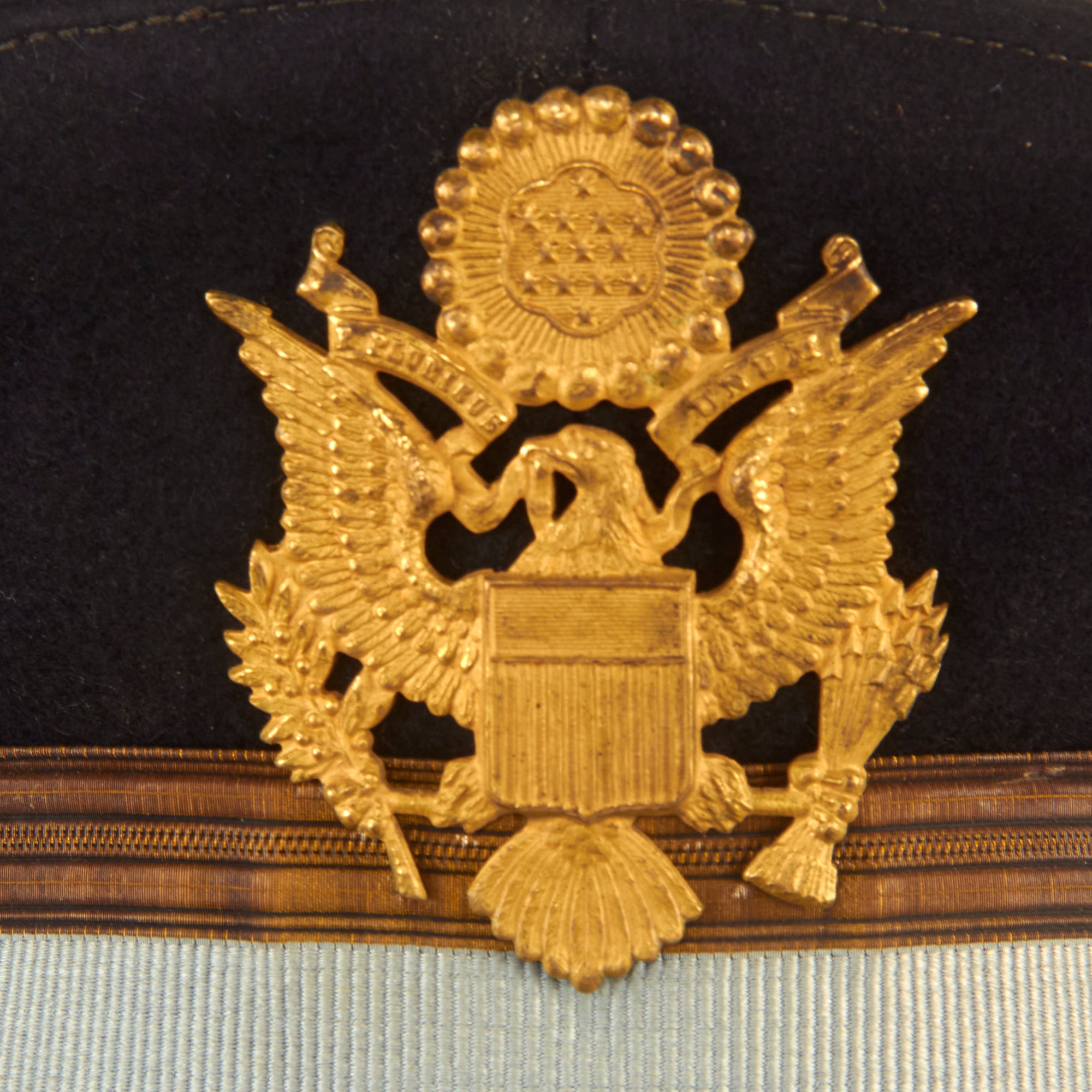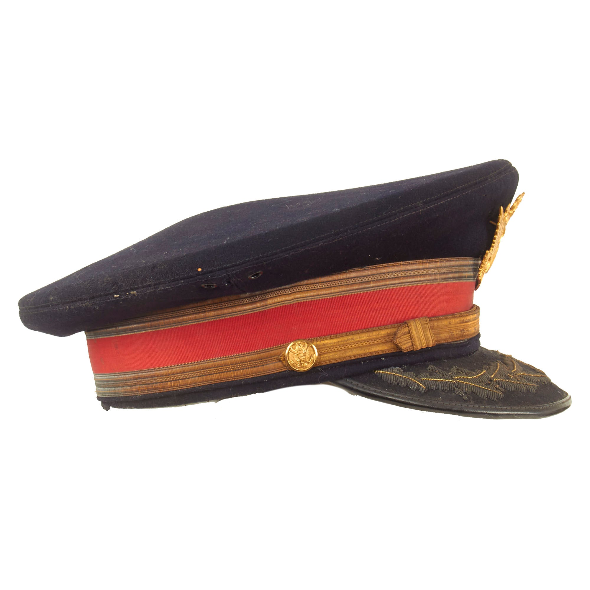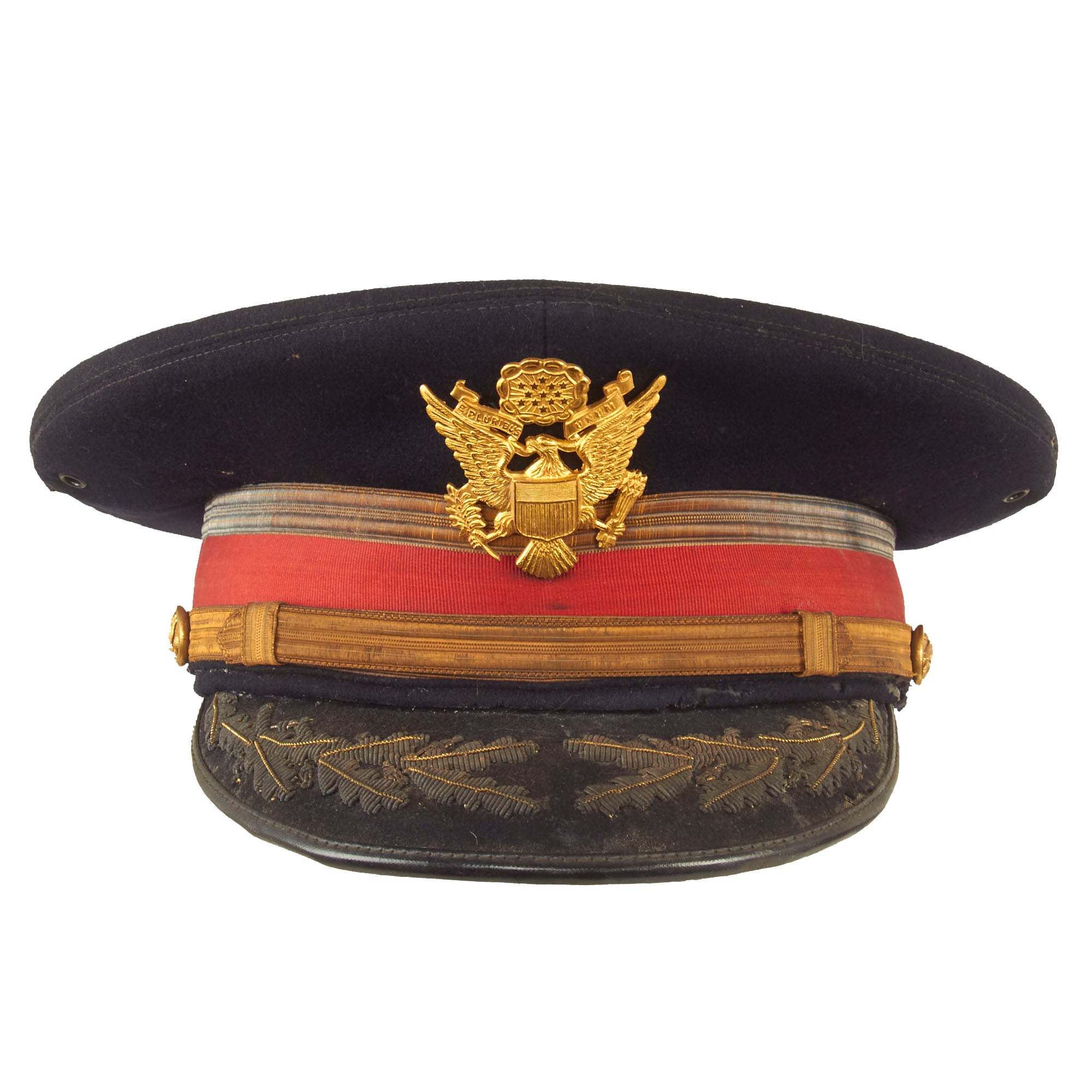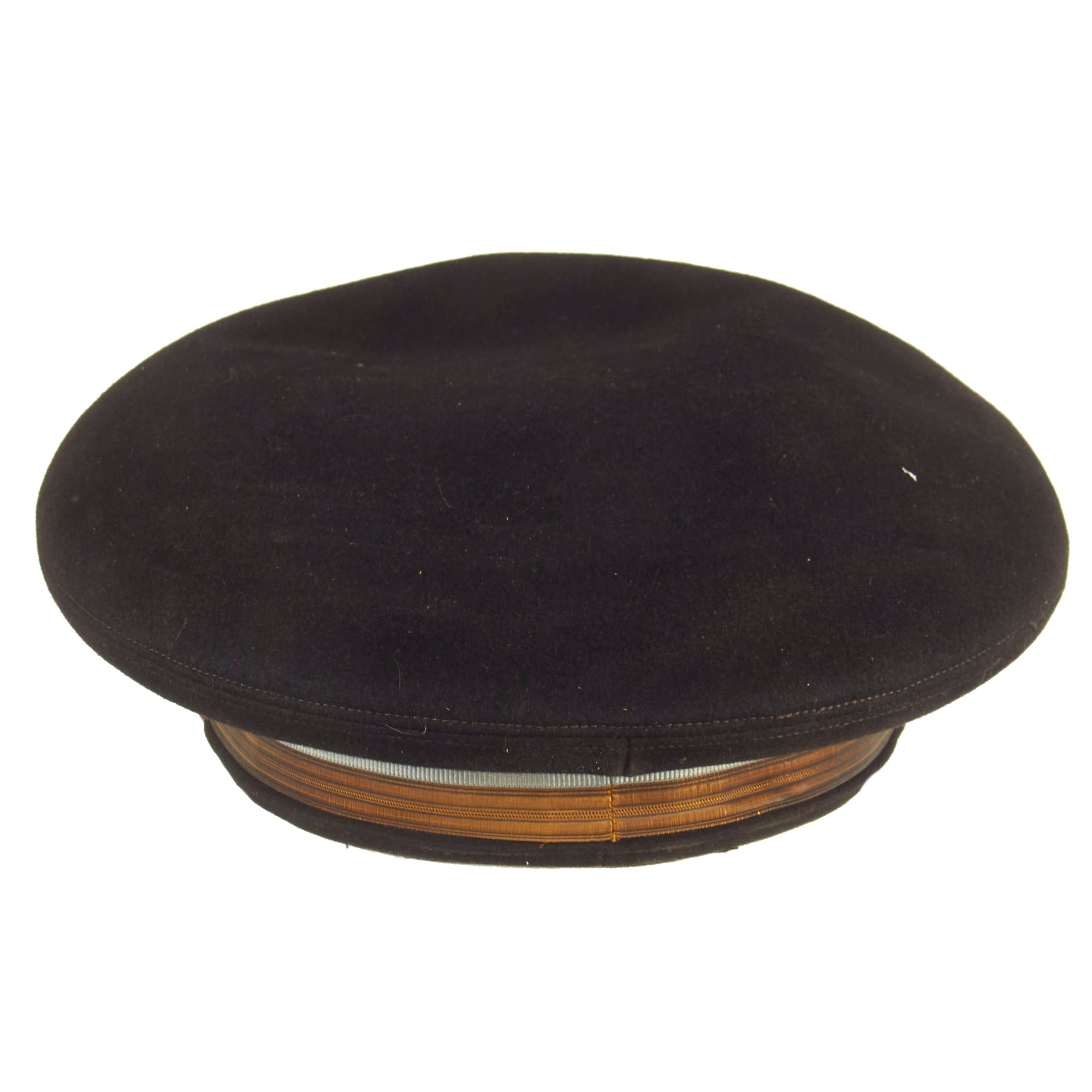 Both visors are in great display condition but are not without signs of faithful service wear. The caps are complete down to the manufacturer labels on the tops of the crown. There is slight detach and thread loss on the leather sweatbands but are otherwise present.