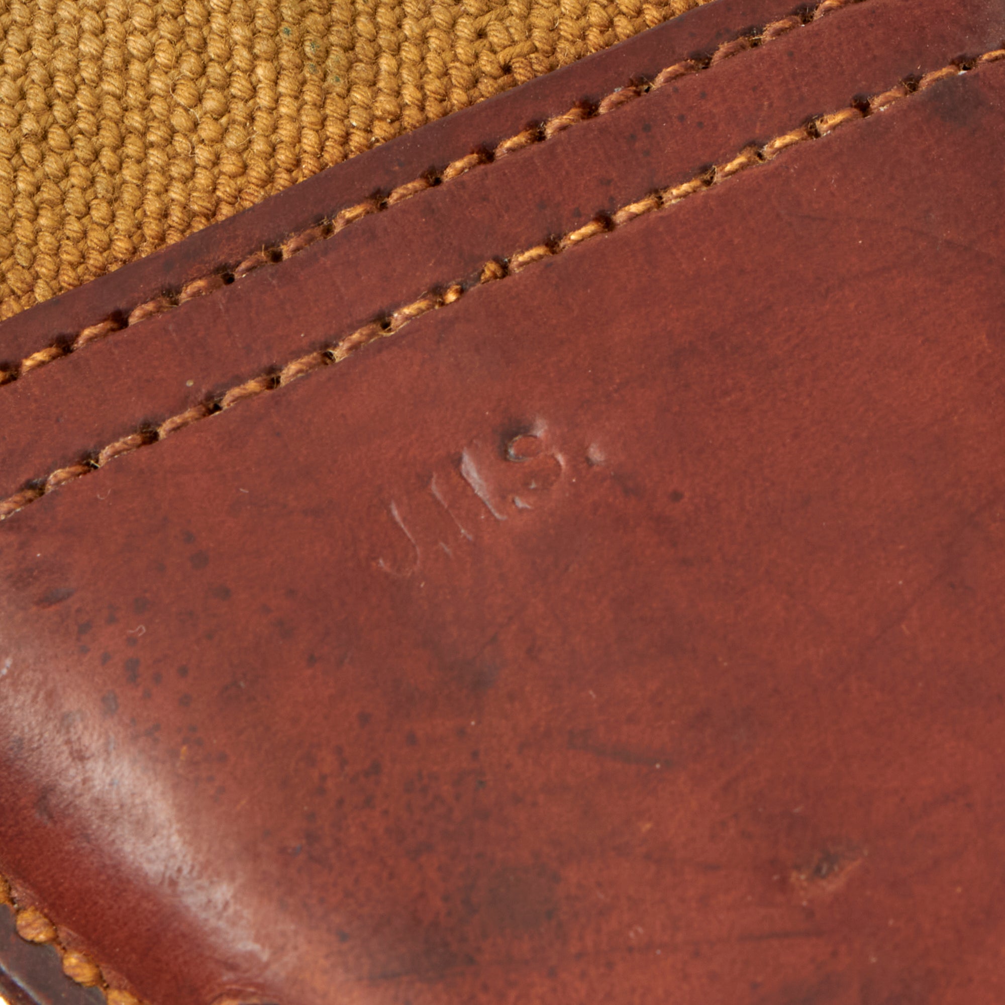 The scabbard does show age and staining, and the canvas and leather are now quite dark in color. However it is still overall in solid used condition, with a great aged look.