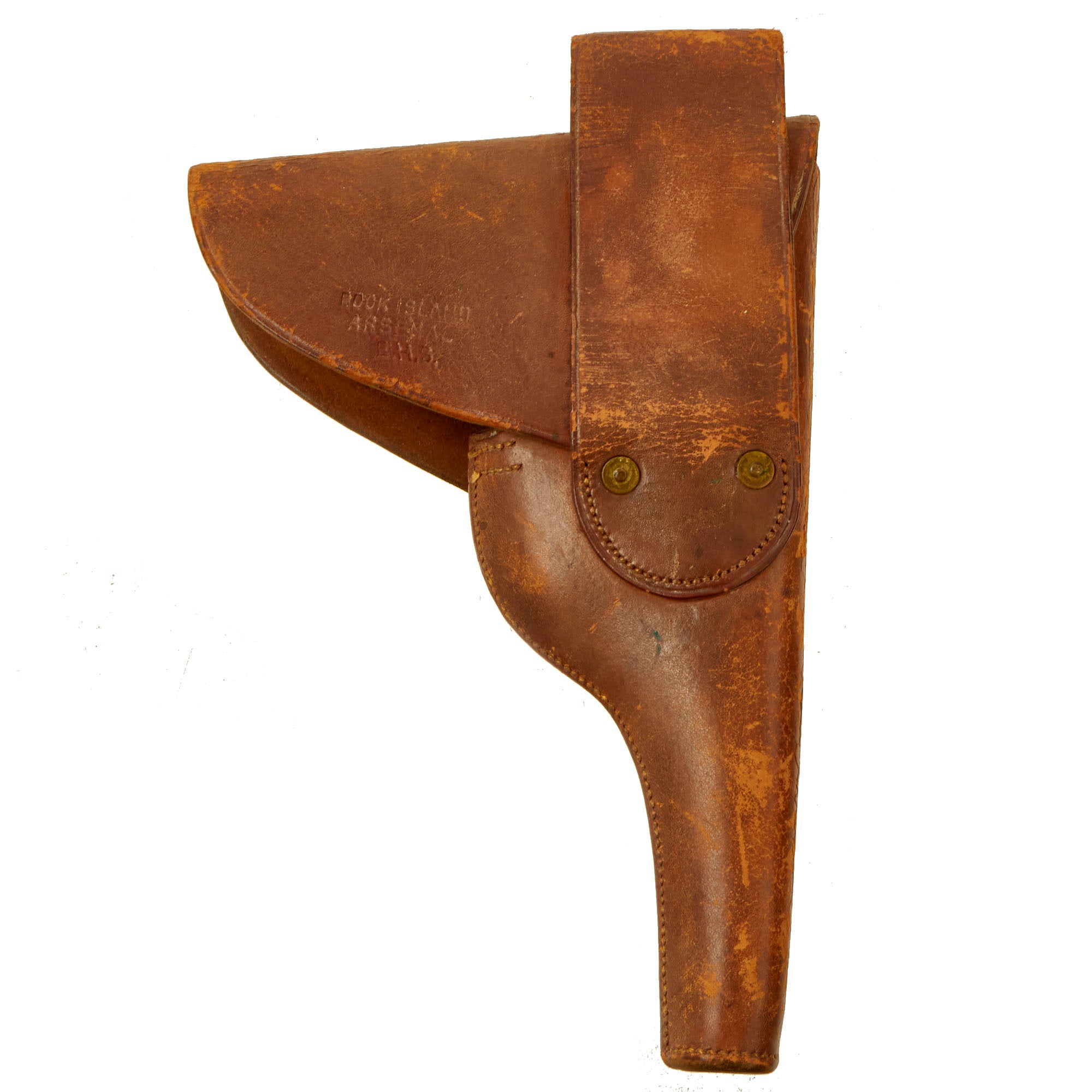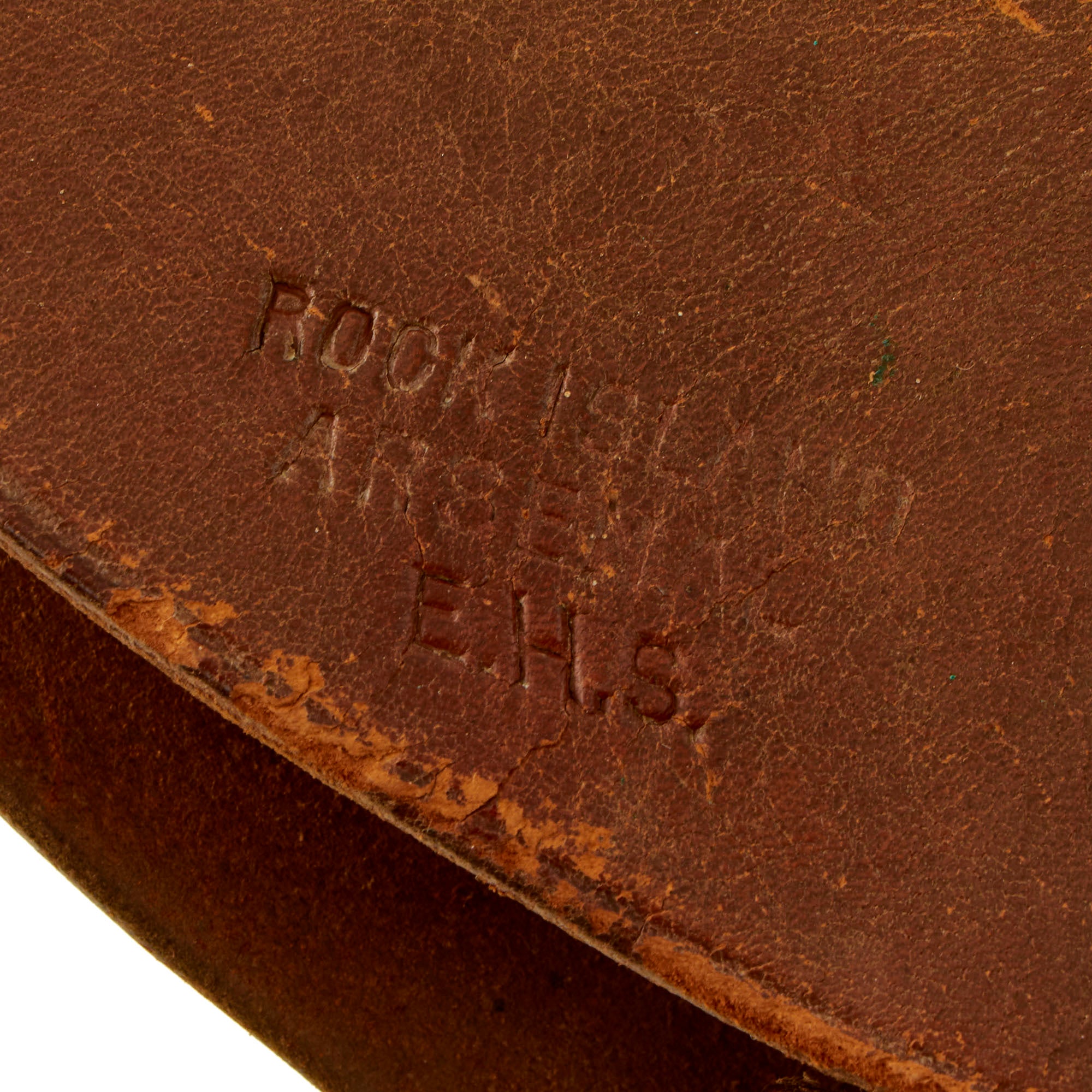 The holster is in wonderful condition and besides the cracking in the leather finish, this does not appear to have ever been used. The reverse side to the left is stamped with ROCK ISLAND ARSENAL above the inspector’s initials of E.H.S. Established as both an arsenal and a center for the manufacture of leather accouterments and field gear, today RIA still provides manufacturing, logistics, and base support services for the Armed Forces.