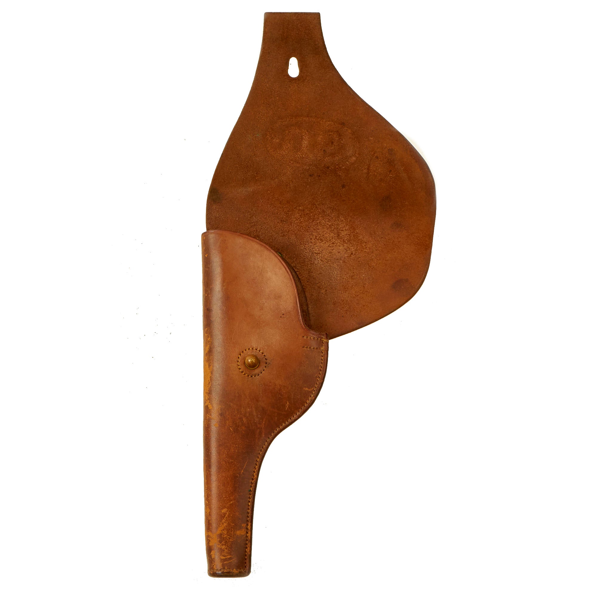 Original Item: Only One Available. Now this is an item that has all but been forgotten to history, a holster for an American Luger! In 1901, Deutsche Waffen und Munitionsfabriken sent two Lugers to the United States, who were also interested in a semi-automatic pistol. After doing well in testing, a total of 1,000 pistols and 200,000 rounds were purchased for use by the Military Academy at West Point, and several other forts. The Luger was unpopular, with most troops preferring their .38 Long Colt revolvers, resulting in the Luger being recalled in 1905.