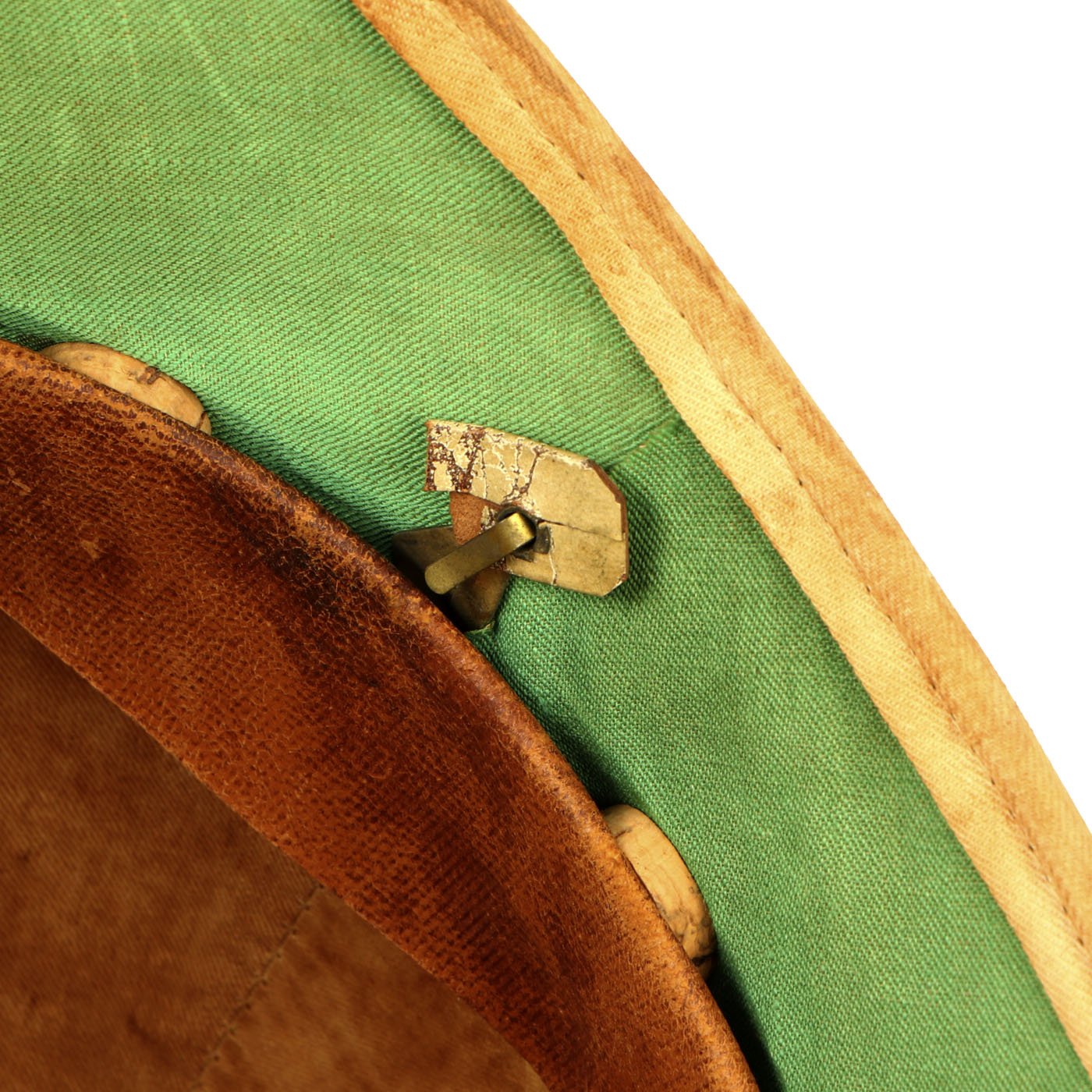The interior is lined with green fabric under the brim, with khaki fabric inside the crown. The leather sweatband is still fully intact, and has a size 7 label on it.