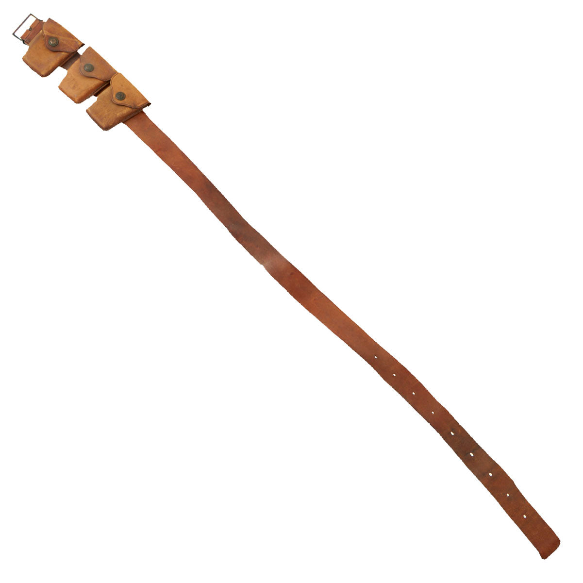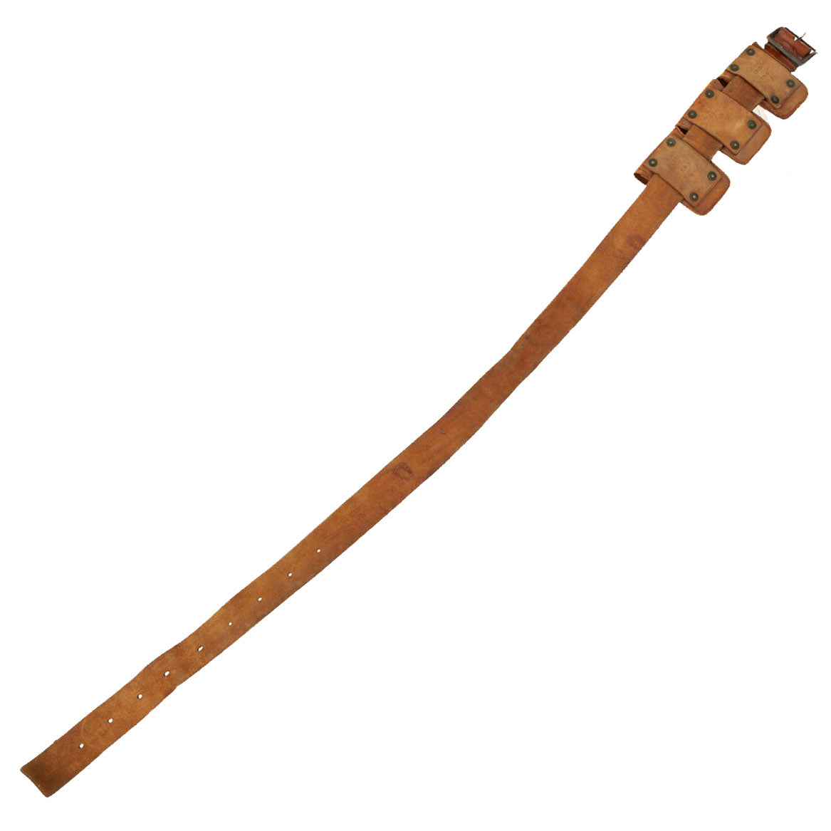 - Original russet brown leather M1904 garrison belt is offered in very good condition, original manufacturer markings are present but very hard to read. It measures approximately 46 inches in overall length. The leather is supple and clean.