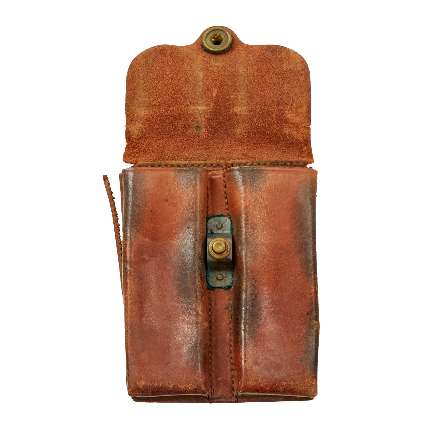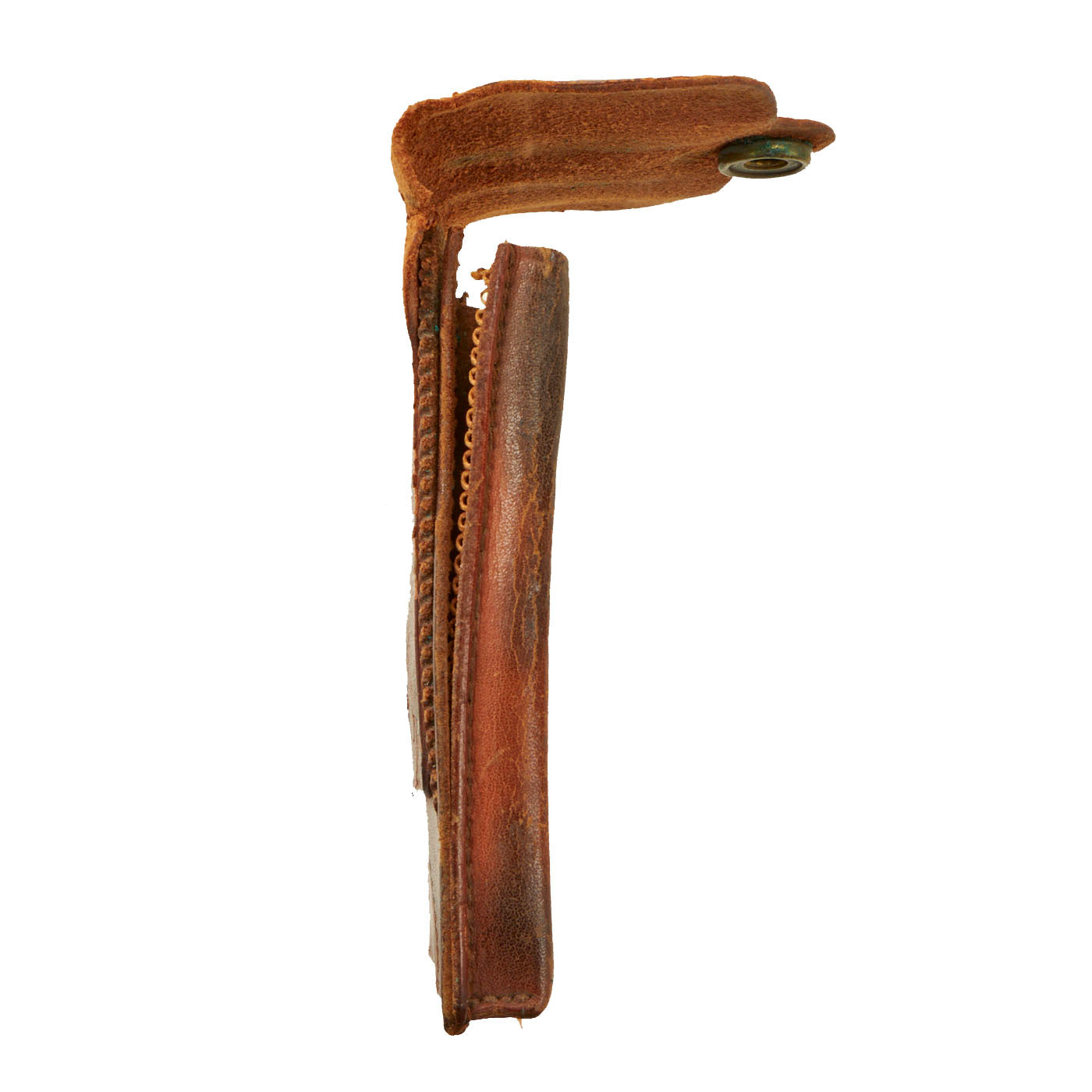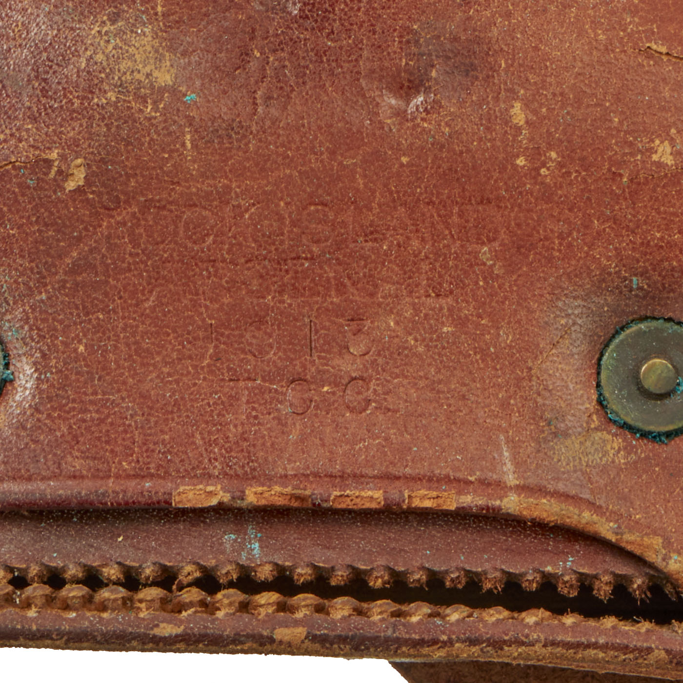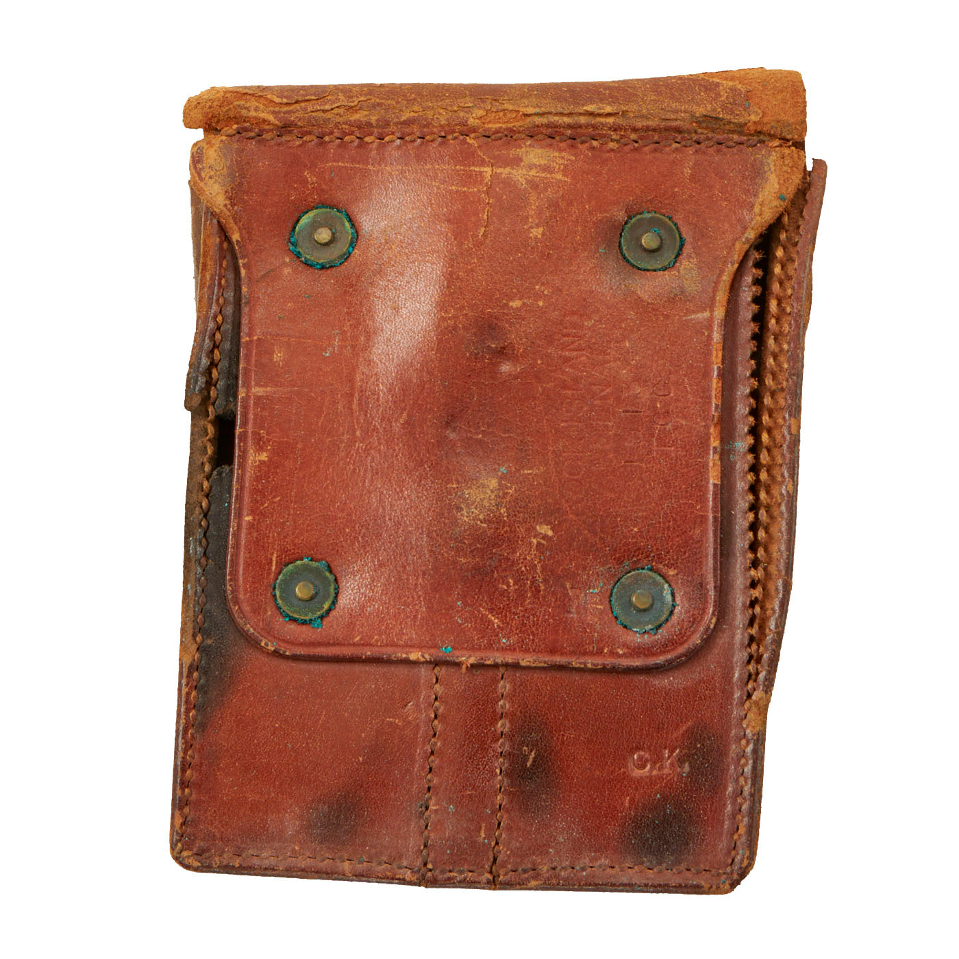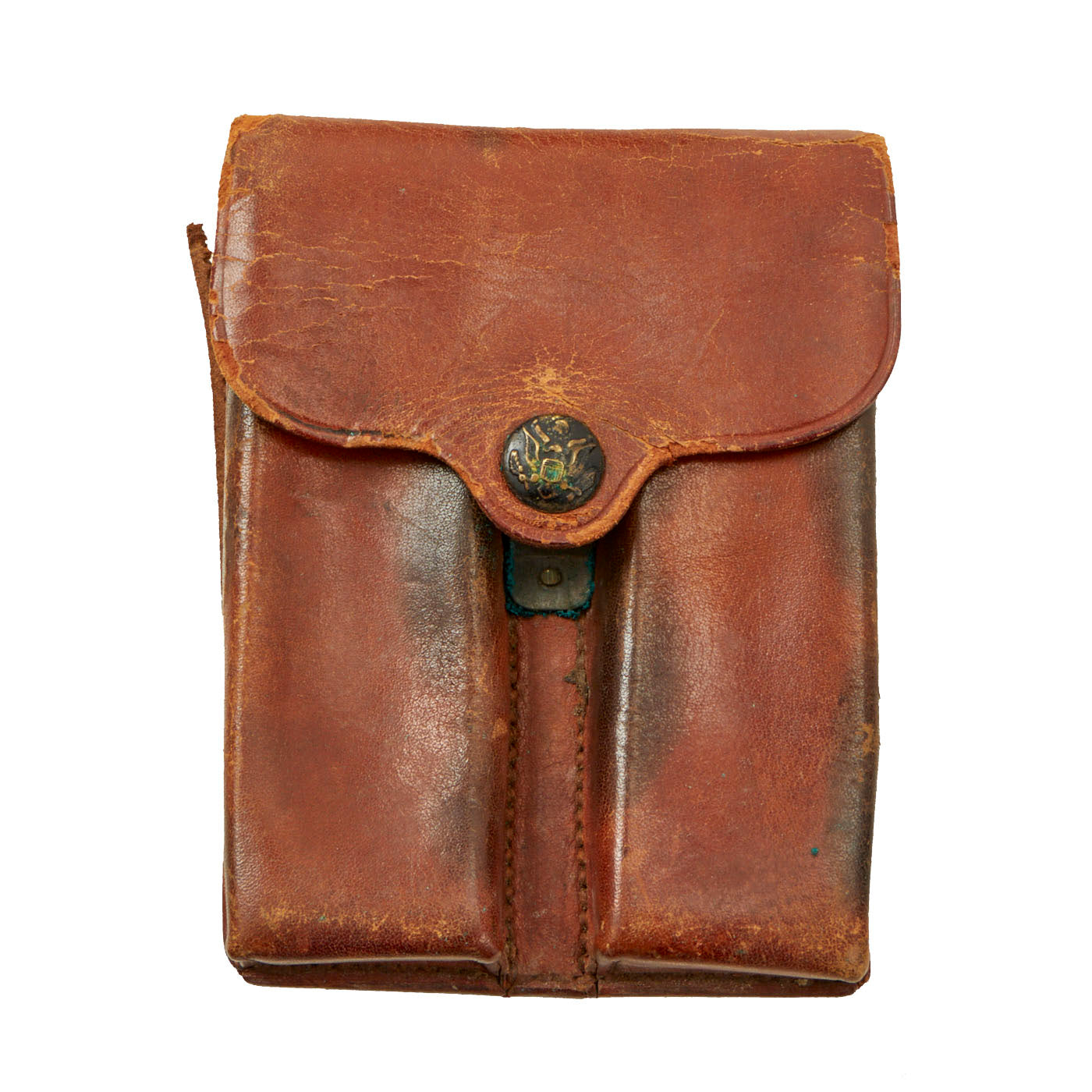 - Original russet brown leather Rock Island Arsenal 1913 dated rimless eagle snap 1911 .45 cal twin magazine pouch offered in good aesthetic condition but has popped seams in some locations and the belt pocket is fragile.