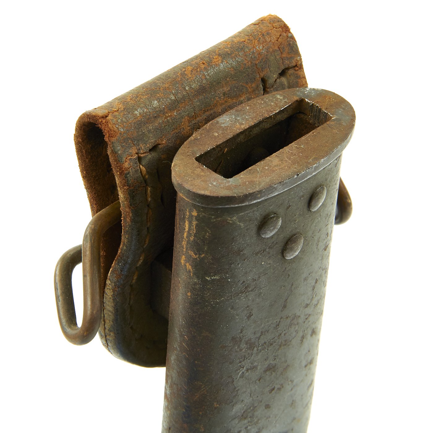 A good example of the 16” WWI M1905 Springfield rifle bayonet by SA, complete with a rare scabbard! Ready to display or fit on your Springfield 1903 Rifle.