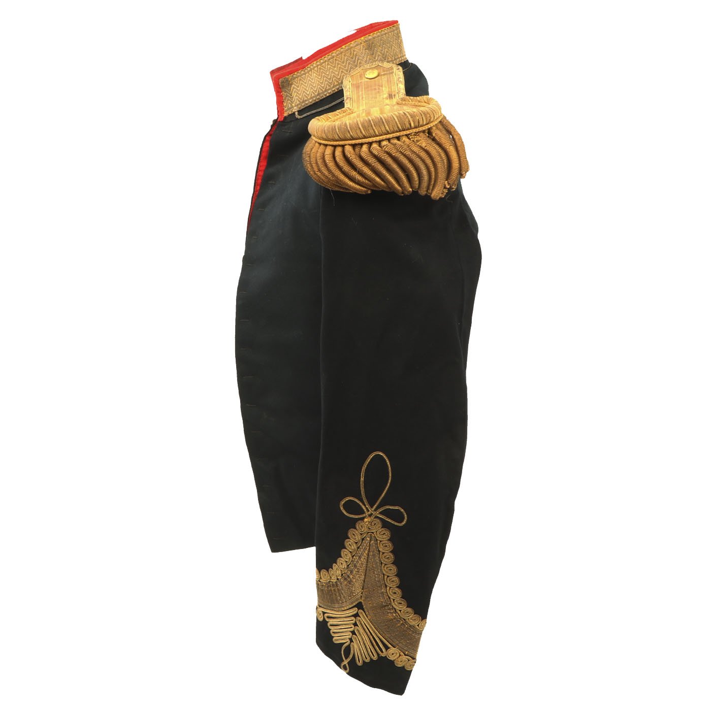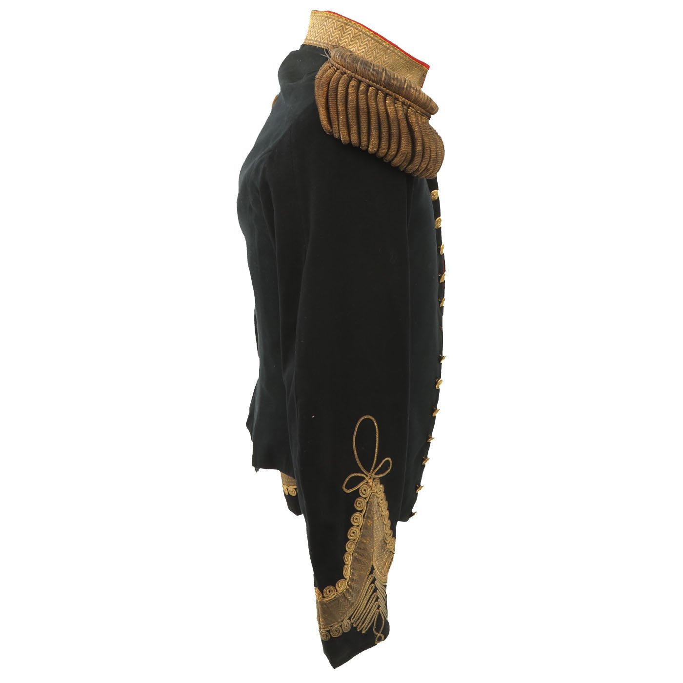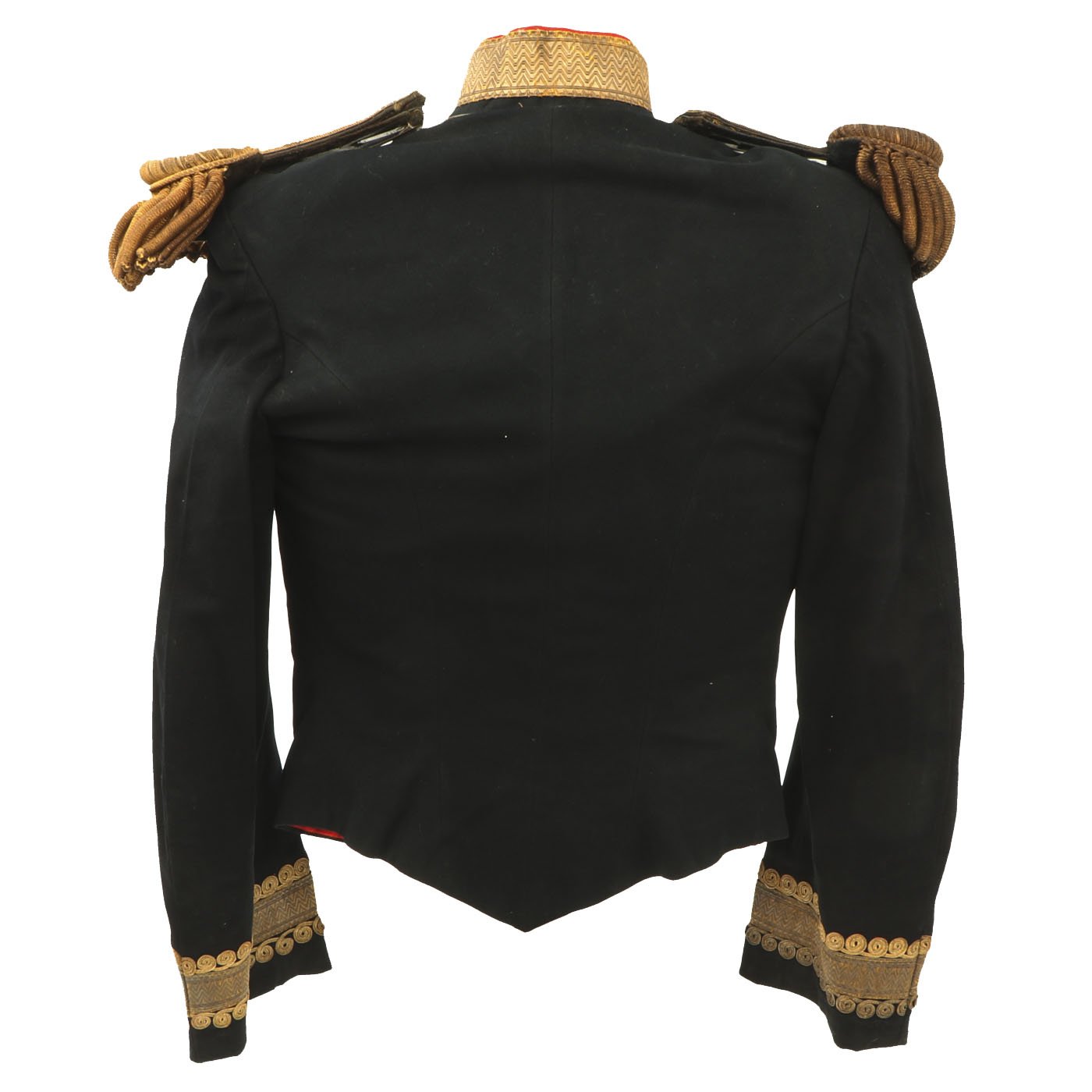 Original Item: Only One Available. This is a wonder United States Marine Corps USMC Officer Meet Dress jacket named to Lieutenant G Bishop Jr. and Dated 1904. It is constructed with an outer shell of fine blue wool and an inner satin lining. There is an original tailor label to the interior pocket. Overall condition is very good.