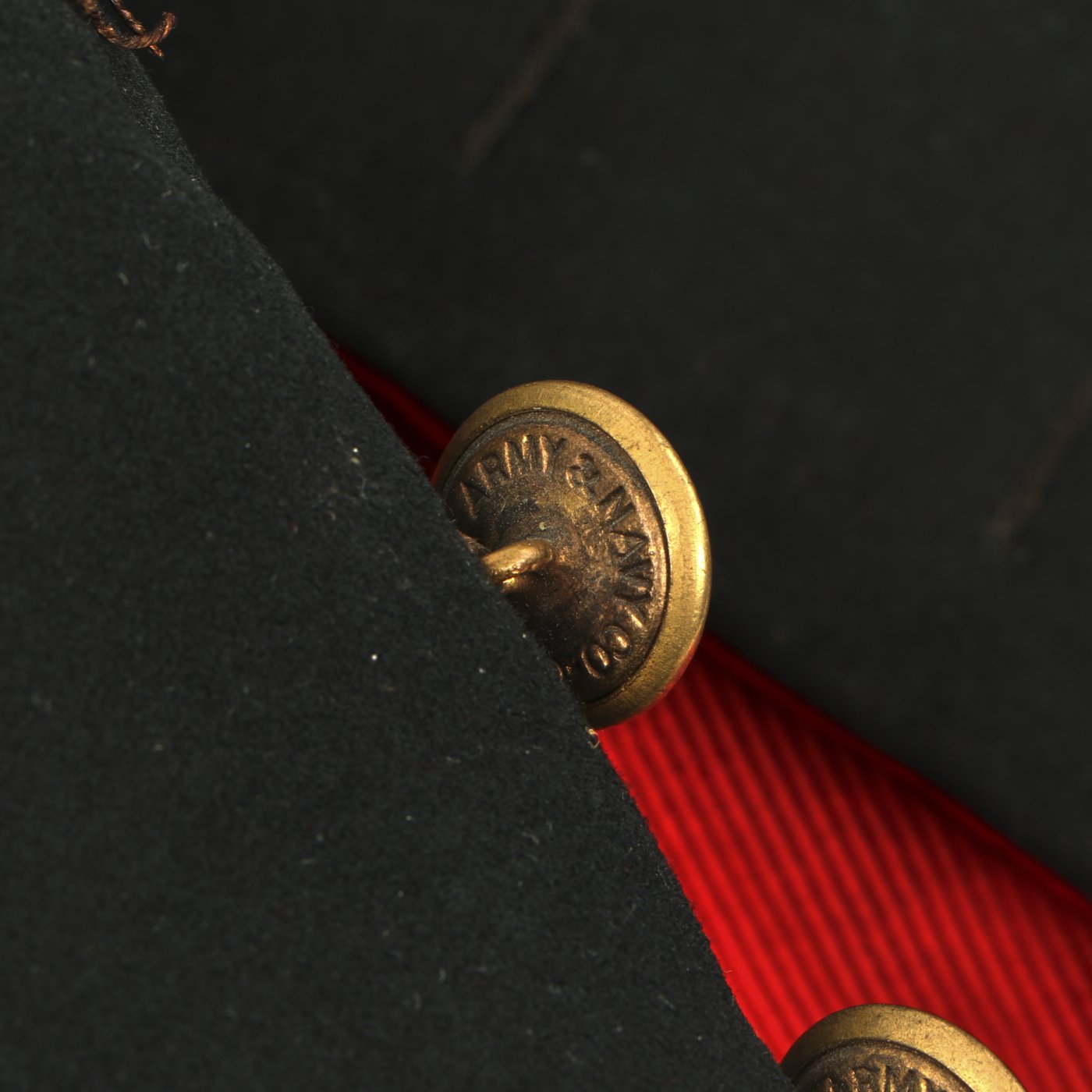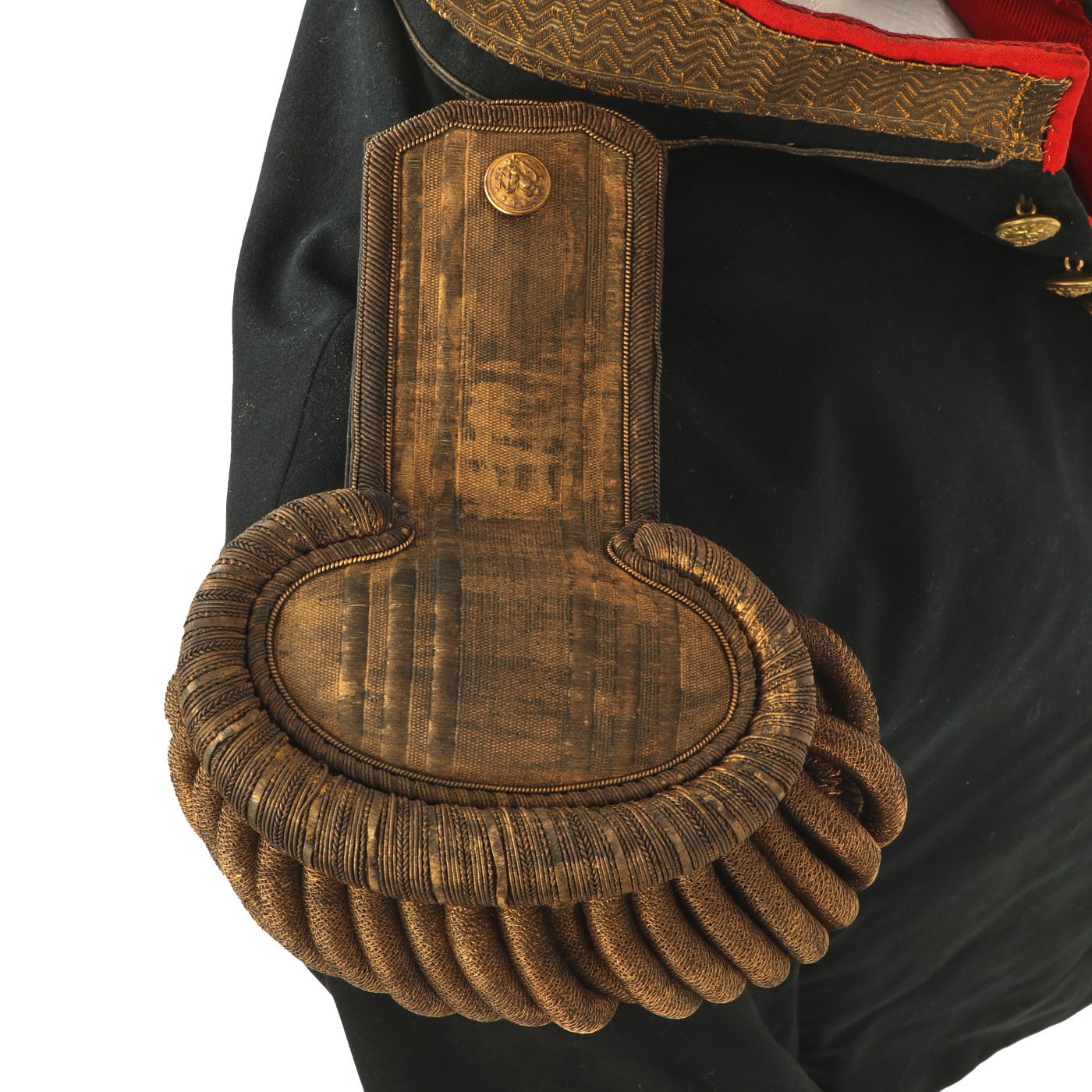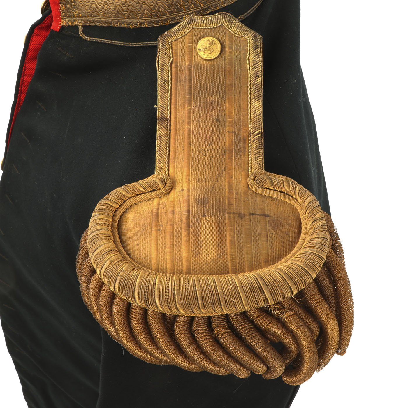Original Item: Only One Available. This is a wonder United States Marine Corps USMC Officer Meet Dress jacket named to Lieutenant G Bishop Jr. and Dated 1904. It is constructed with an outer shell of fine blue wool and an inner satin lining. There is an original tailor label to the interior pocket. Overall condition is very good.