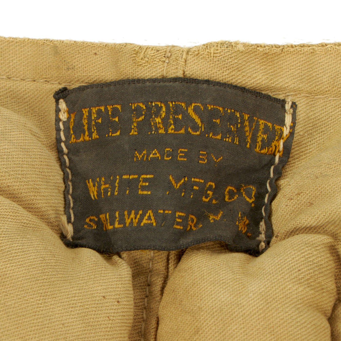 - Original Item: Only One Available. Civilian manufactured 1930s kapok filled life preserver vest by White Manufacturing Company. This style vest was popular with the US Navy and Coast Guard as the buoyant kapok was an expensive commodity, however, so were eventually replaced in the 40s by less expensive inflatable vests. This example is offered in excellent condition.