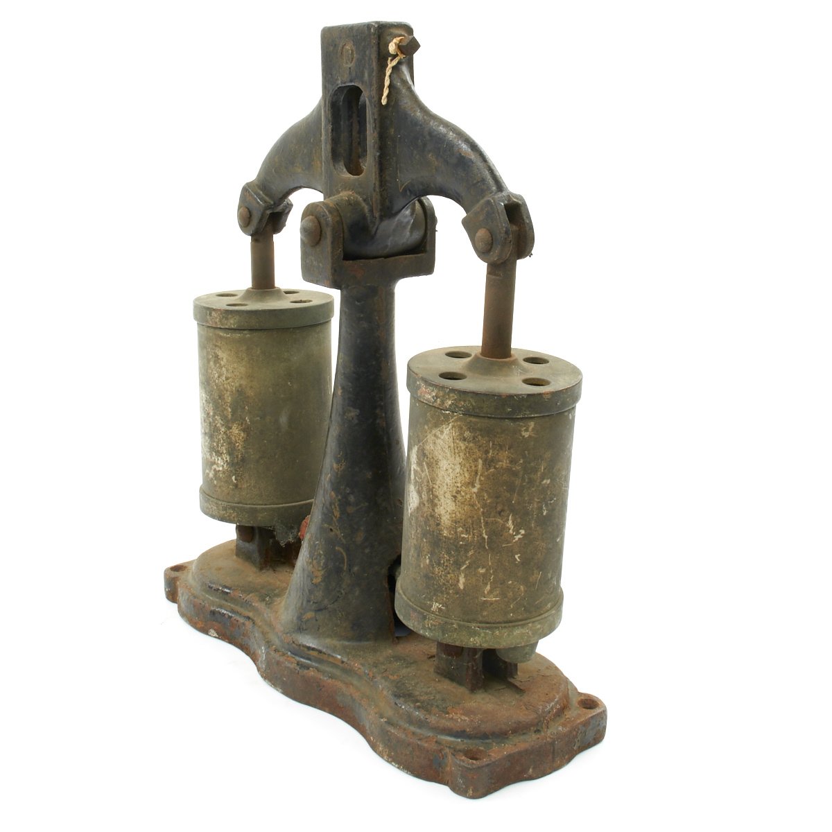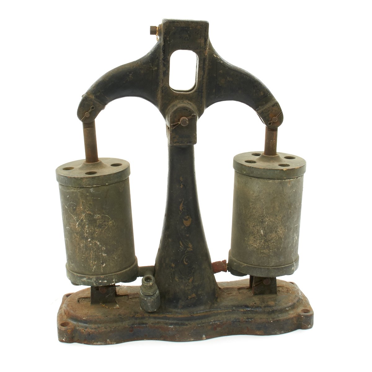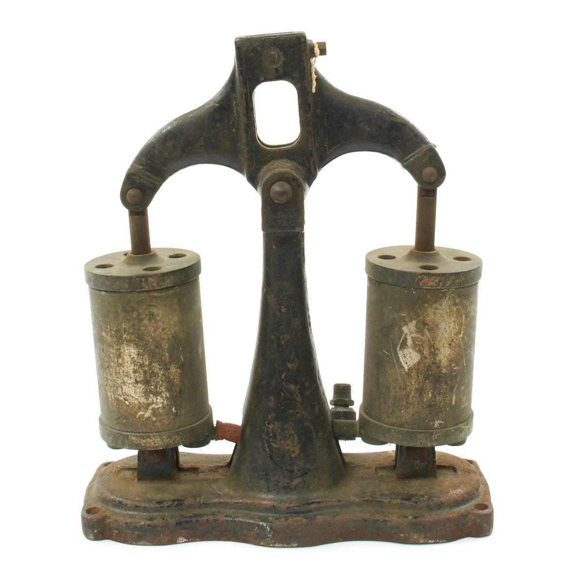 Original Items. One Set Only. Under water exploration has long been one of man's greatest dreams and around the 1920's the SNEAD IRONWORKS COMPANY of Jersey City decided to enter this New World. Pearl divers have been around for many hundreds of years but sustained underwater diving whilst actually breathing was almost a pipe dream. Hard Hat diving was so complicated and hazardous but SNEAD came out with a simpler way using what is best described as a "Diving Bell" method. The apparatus was first offered in their 1933 Catalog, and a set consisted of an Iron helmet, a hand operated bellows for pumping air down to the diver and a pair of heavy tie on iron under shoes to help combat the body's natural bouyancy.